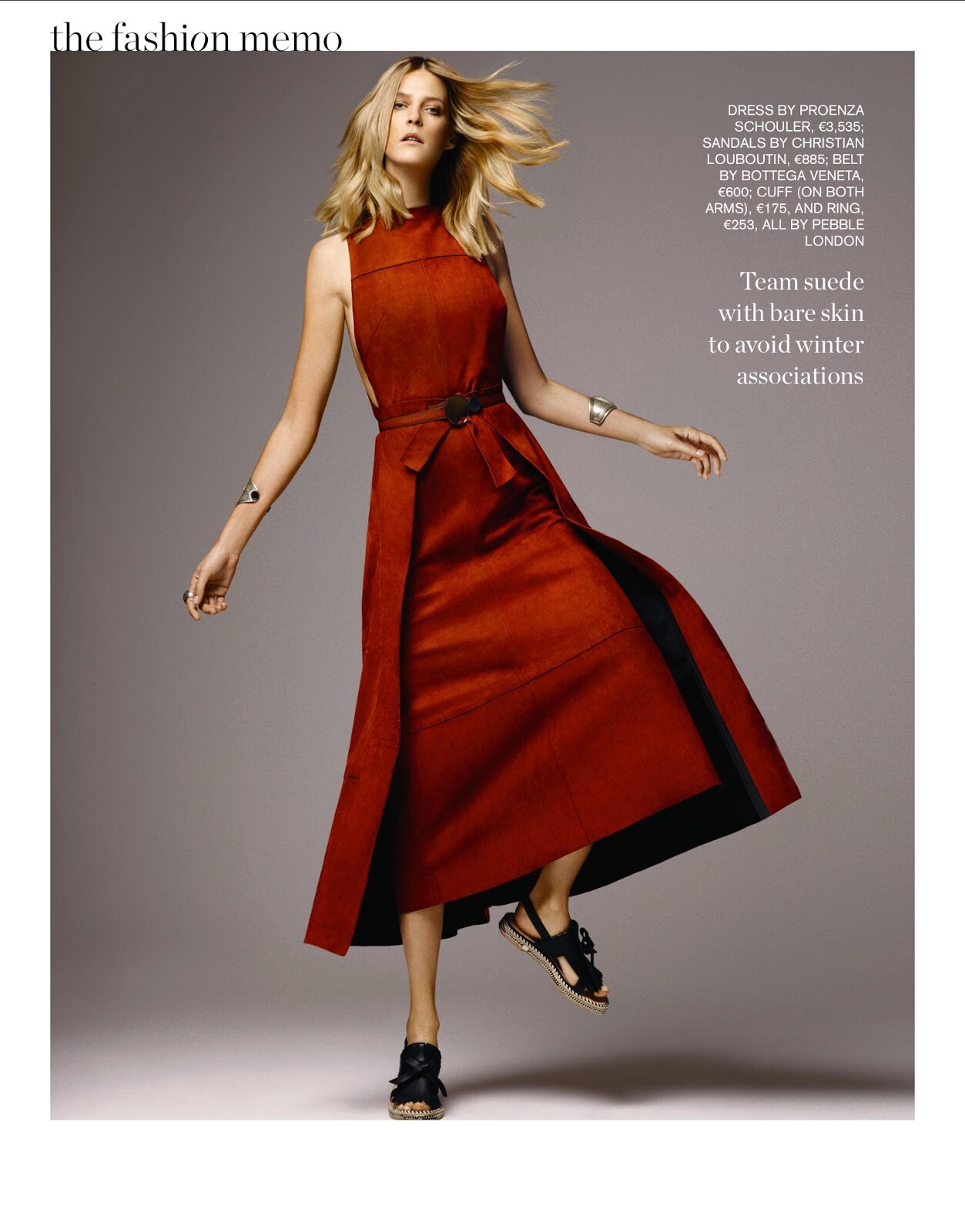 "The Fashion Memo - The New Neutral: Desert Tones" Model: Carmen Kass Photographer: Raf Stahelin Stylist: Maya Zepinic Hair: Karin Bigler