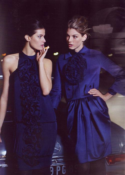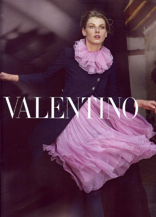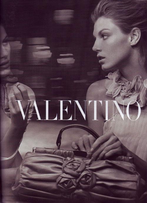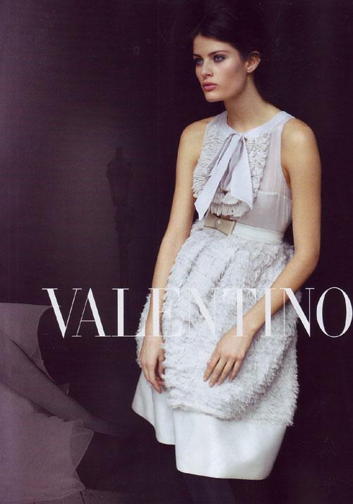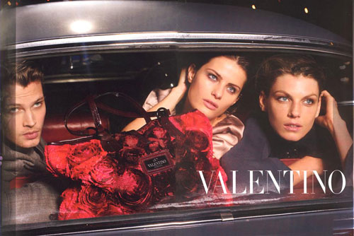 July American Vogue drops the 8 page Valentino FW08 campaign lensed by Peter Lindbergh. Shot with American supermodel Angela Lindvall and Brazilian bombshell Isabeli Fontana, the surprise casting choice is rising superstar Taylor Fuchs, a relative babe in the woods compared to the near iconic duo.