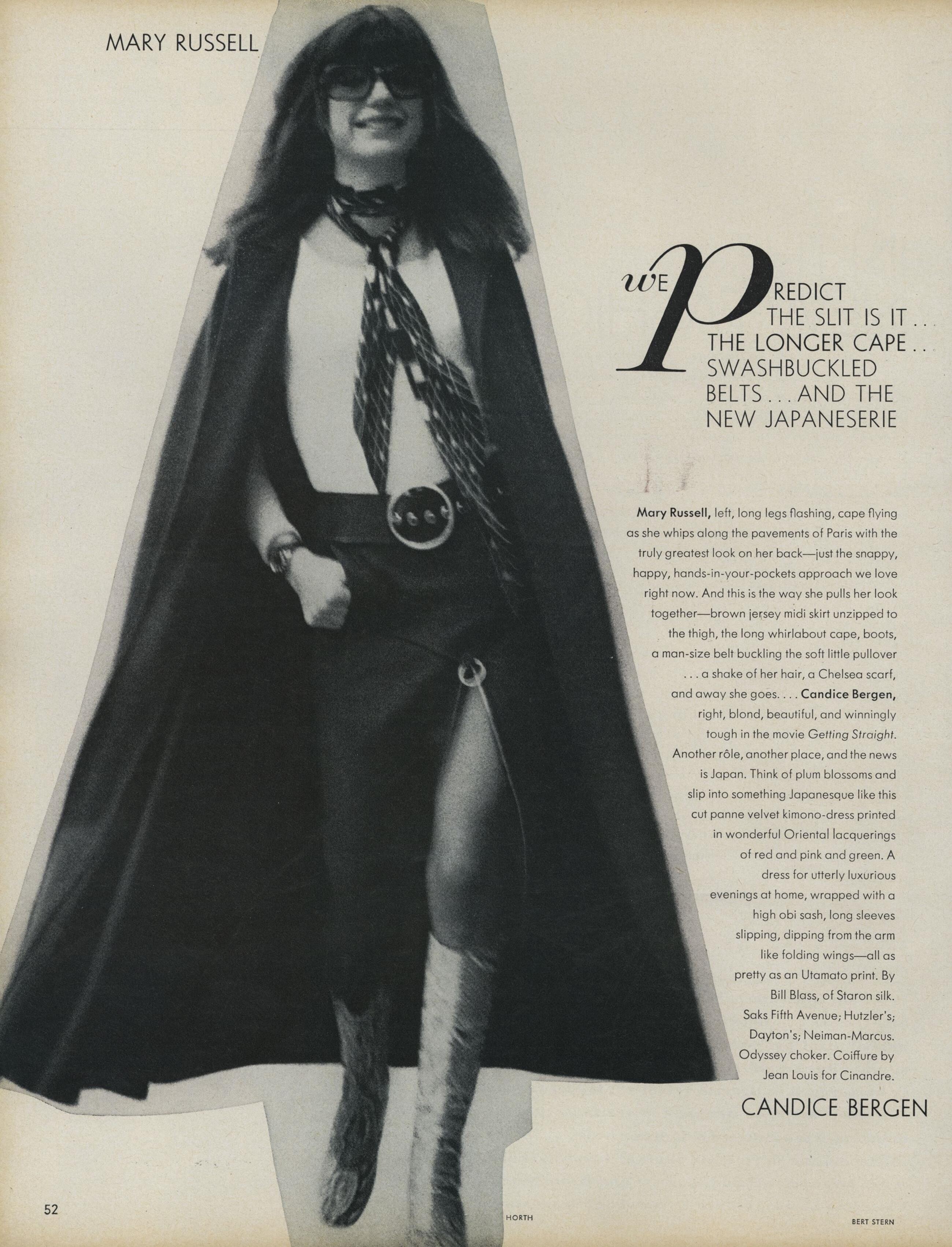 Models: Pilar Crespi, Marisa Berenson, Lynn Sutherland, Cynthia Korman, Ann Turkel, Marisa Berenson, Natalie Wood, Lesley Patterson, Elizabeth, Princess of Toro, Benedetta Barzini, Charly Stember, Agneta "Mouche" Bylander, Editha Dussler, Birgitta af Klercker, Françoise Rubartelli, Marsha Hunt, Jane Birkin, Sue Murray & Christiana Steidten