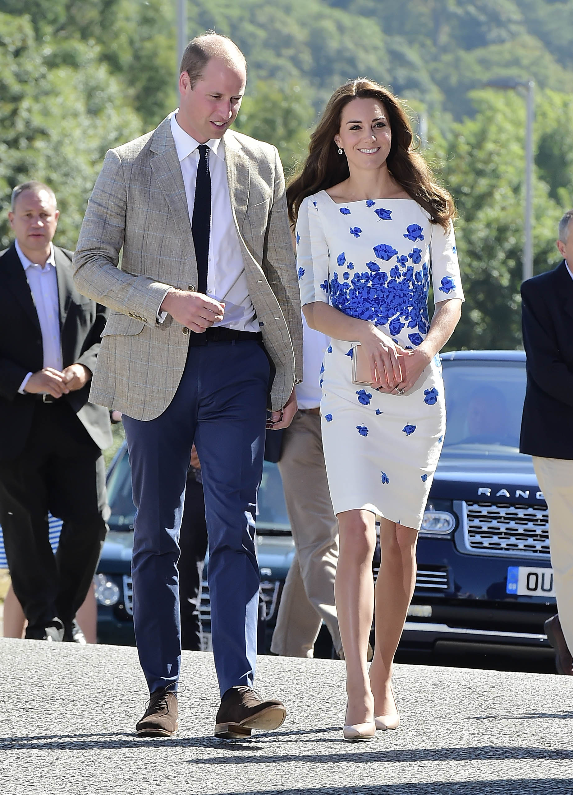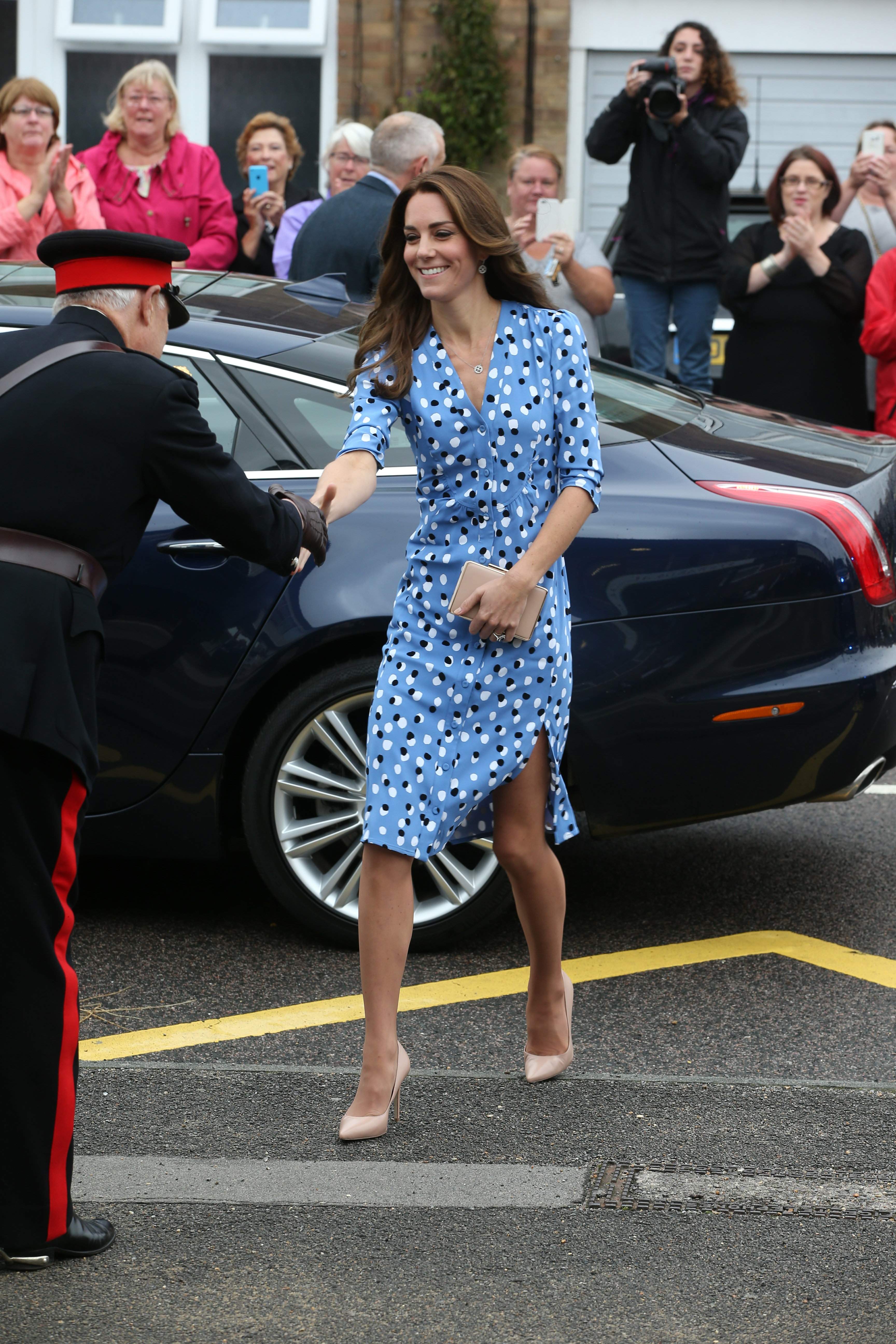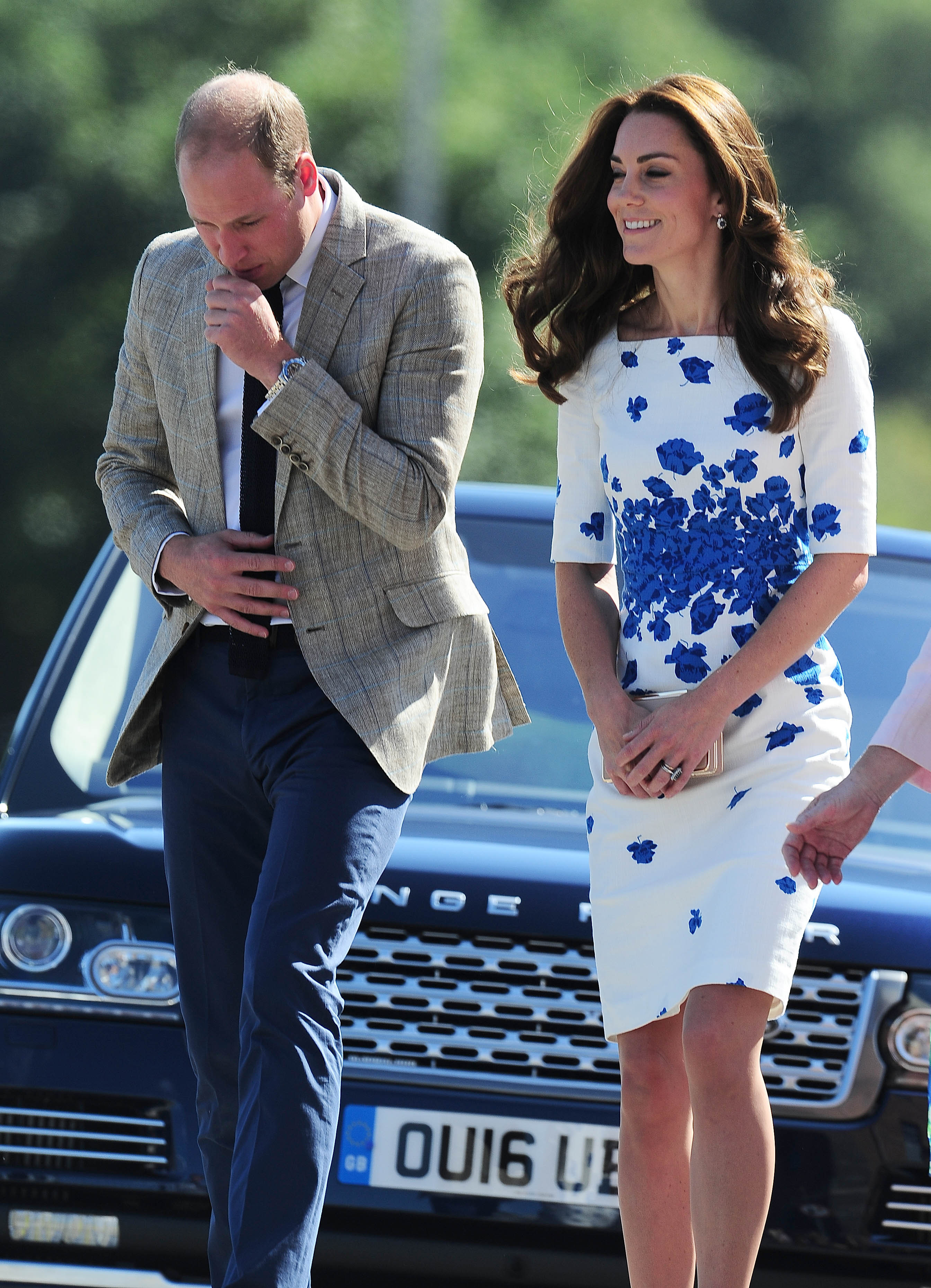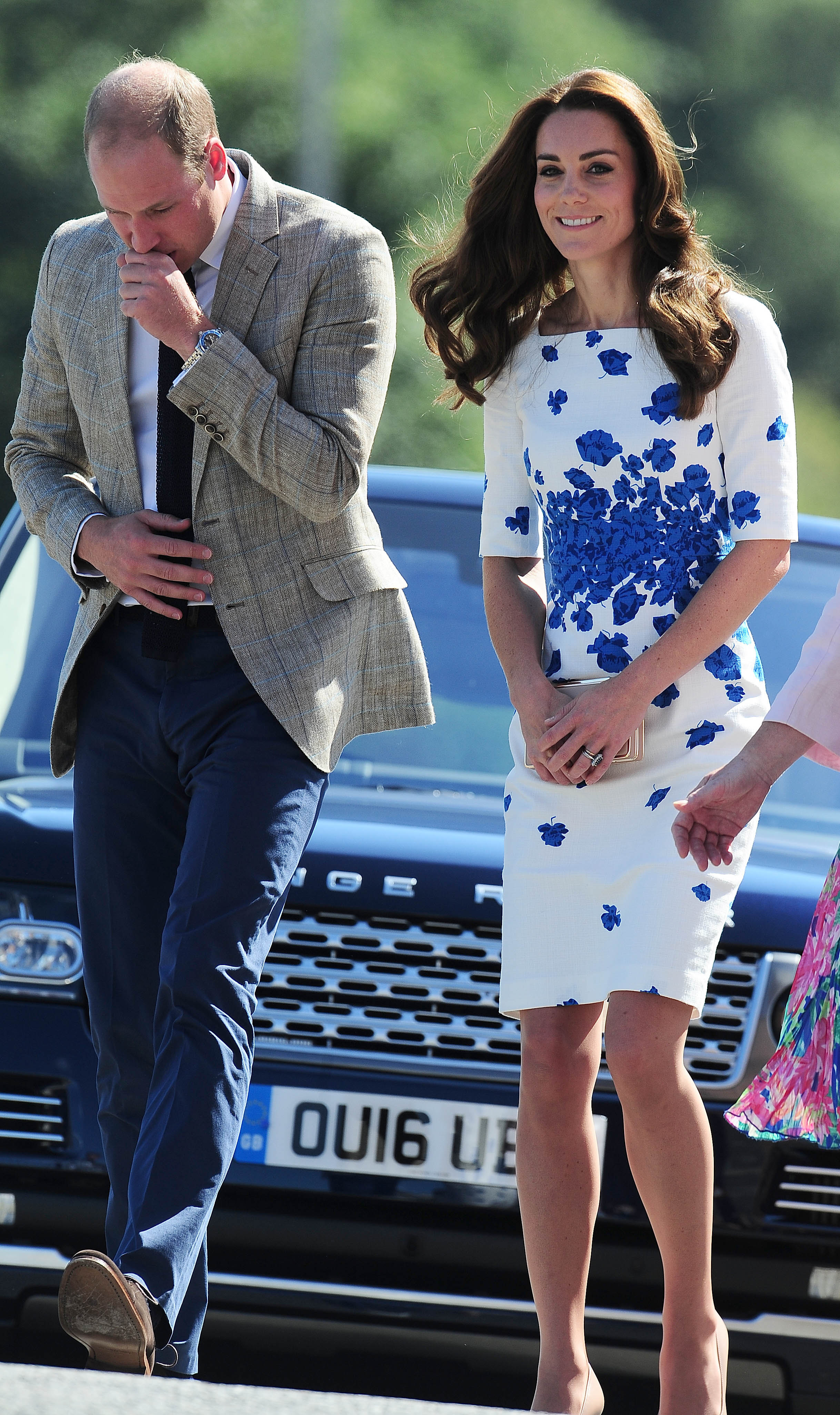 Prince William rushed to the aid of a local dignitary today after he toppled over while welcoming the Duke and Duchess to Essex. The royals were greeted in Harlow by Vice Lord Lieutenant of Essex Jonathan Douglas-Hughes, the Queen's representative in the county. But the 72-year-old, who was wearing full ceremonial uniform including a sword and boots with spurs, tumbled backwards over a concrete bollard shortly after the couple got out of their car. William rushed to help the stricken official, who got up looking somewhat embarrassed. Mr Douglas-Hughes turned to William and said 'Sorry about that' and the Duke replied 'No, it's all right'. William and Kate were arriving at a windswept Stewards Academy in Harlow, Essex, to discuss how young people cope with issues such as starting a new school.