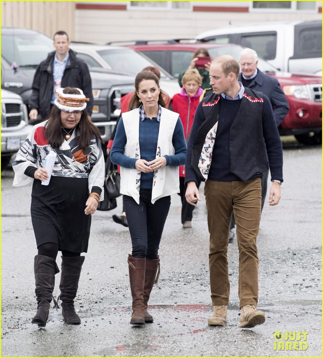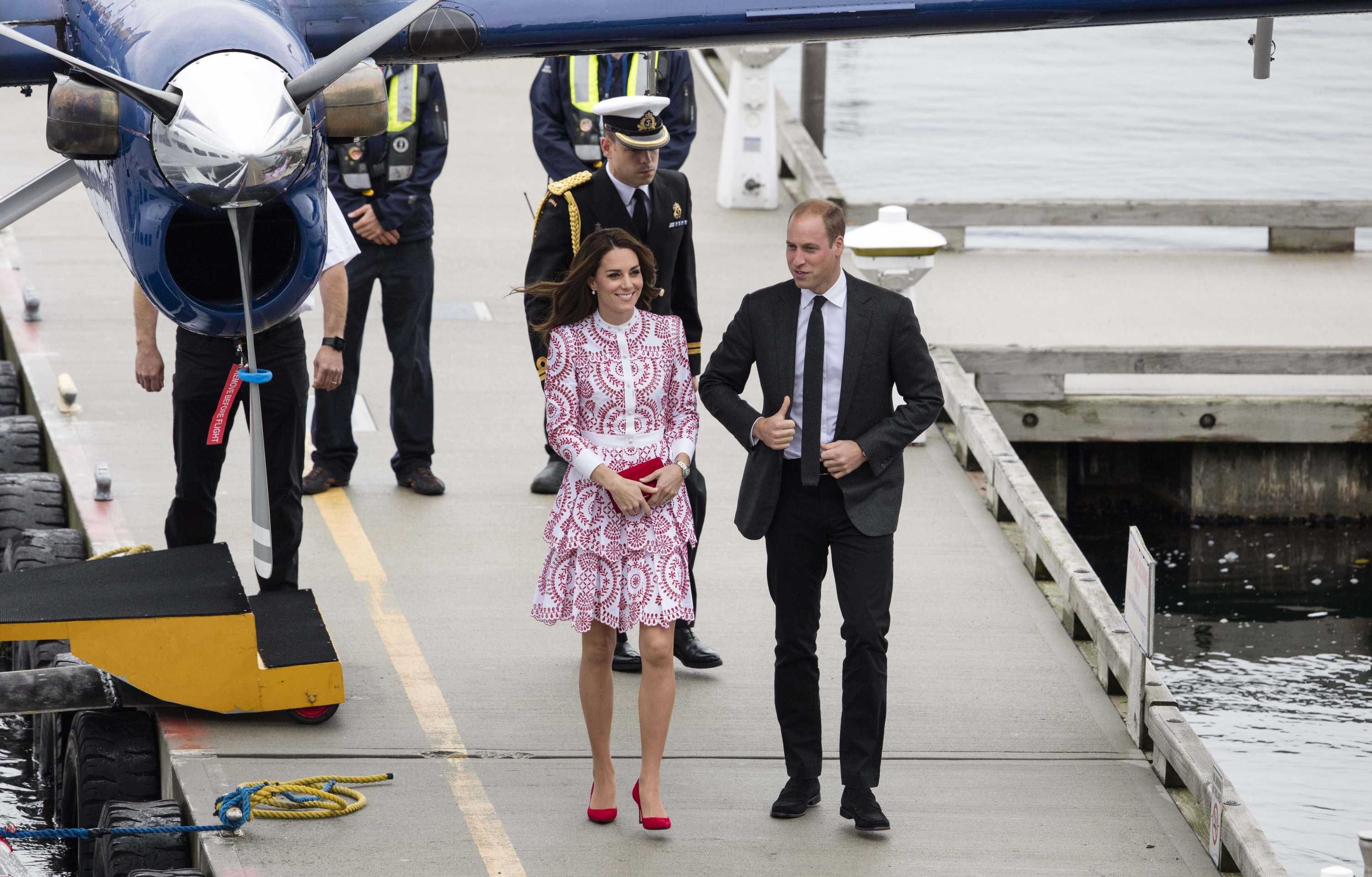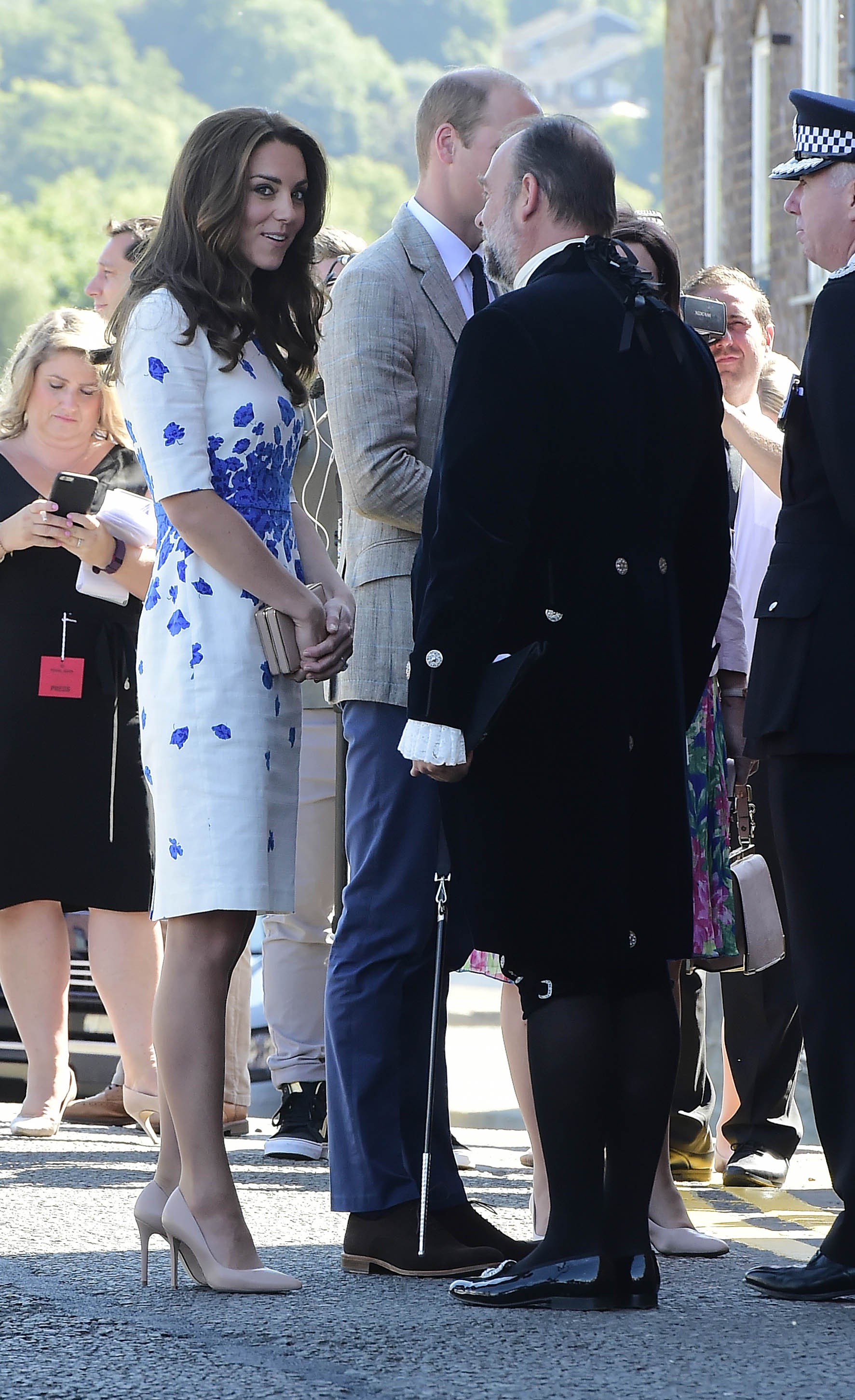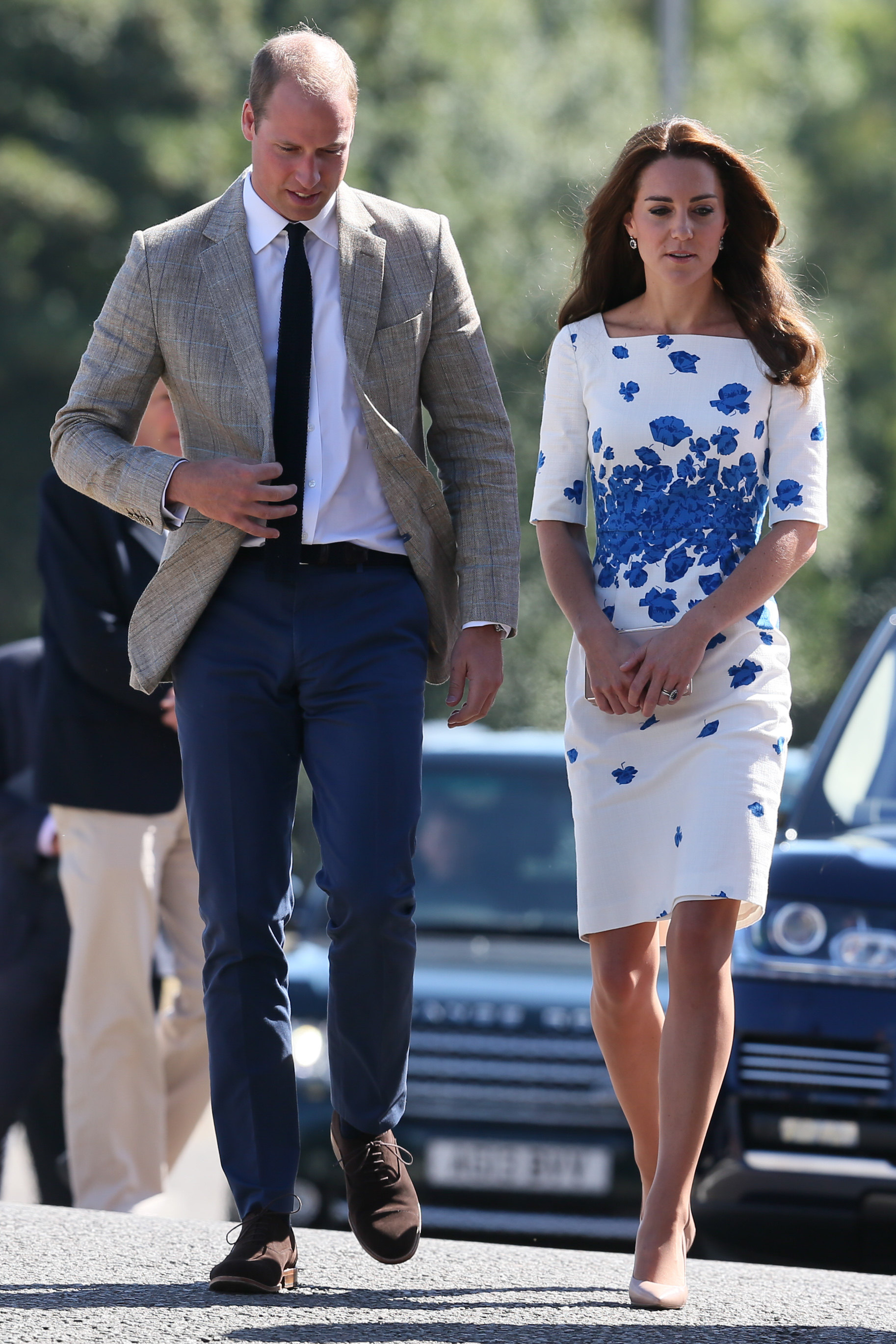 Prince William rushed to the aid of a local dignitary today after he toppled over while welcoming the Duke and Duchess to Essex. The royals were greeted in Harlow by Vice Lord Lieutenant of Essex Jonathan Douglas-Hughes, the Queen's representative in the county. But the 72-year-old, who was wearing full ceremonial uniform including a sword and boots with spurs, tumbled backwards over a concrete bollard shortly after the couple got out of their car. William rushed to help the stricken official, who got up looking somewhat embarrassed. Mr Douglas-Hughes turned to William and said 'Sorry about that' and the Duke replied 'No, it's all right'. William and Kate were arriving at a windswept Stewards Academy in Harlow, Essex, to discuss how young people cope with issues such as starting a new school.