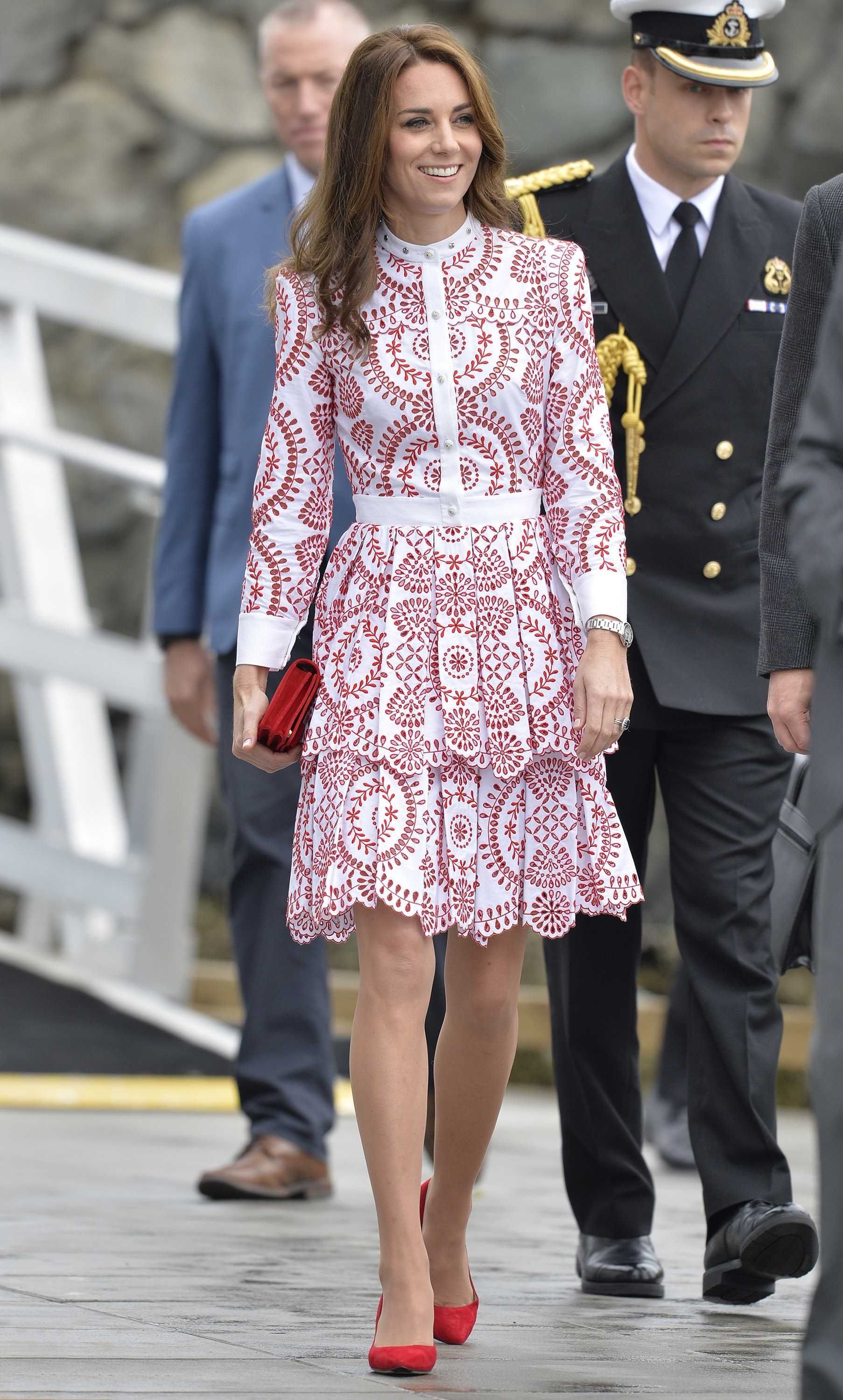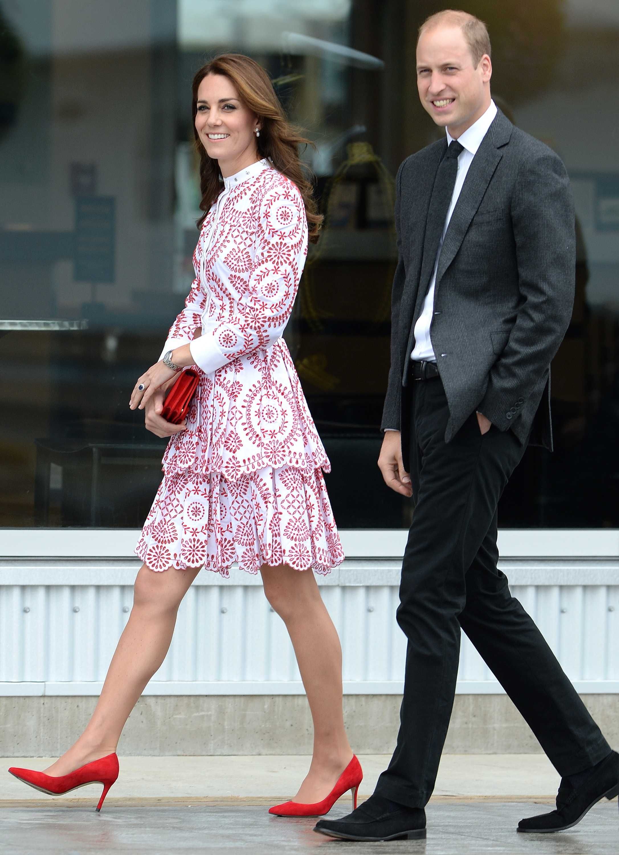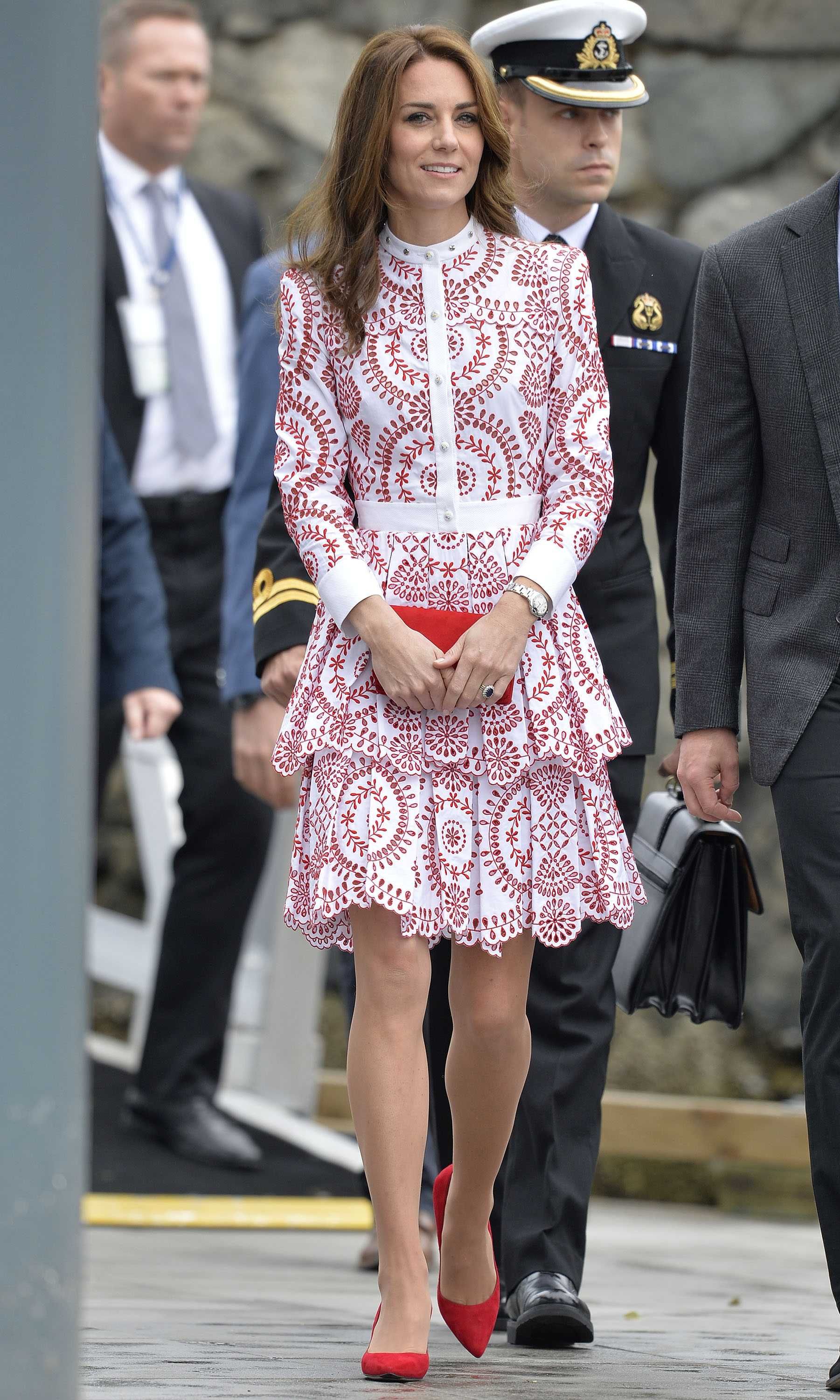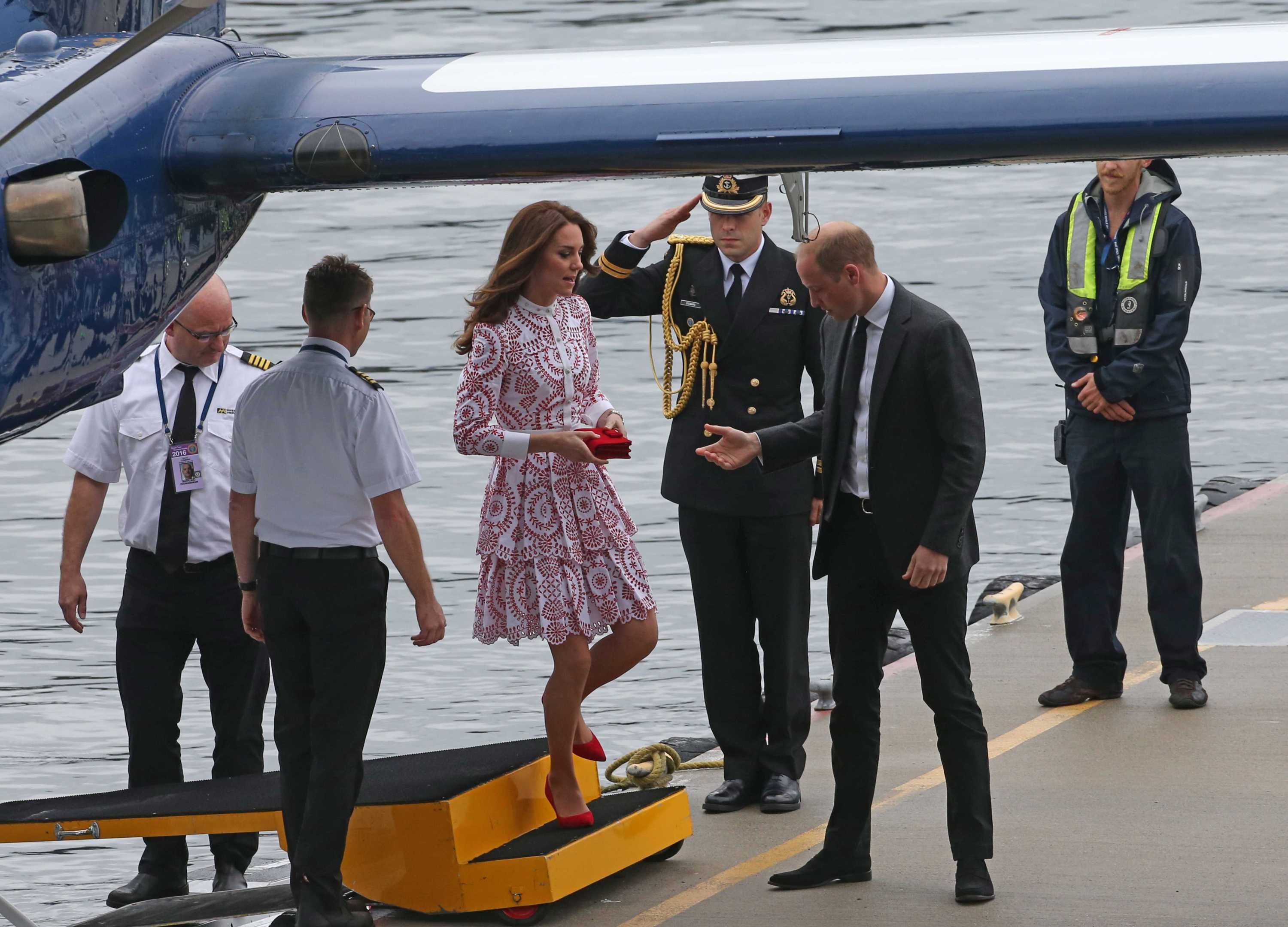 Prince William rushed to the aid of a local dignitary today after he toppled over while welcoming the Duke and Duchess to Essex. The royals were greeted in Harlow by Vice Lord Lieutenant of Essex Jonathan Douglas-Hughes, the Queen's representative in the county. But the 72-year-old, who was wearing full ceremonial uniform including a sword and boots with spurs, tumbled backwards over a concrete bollard shortly after the couple got out of their car. William rushed to help the stricken official, who got up looking somewhat embarrassed. Mr Douglas-Hughes turned to William and said 'Sorry about that' and the Duke replied 'No, it's all right'. William and Kate were arriving at a windswept Stewards Academy in Harlow, Essex, to discuss how young people cope with issues such as starting a new school.