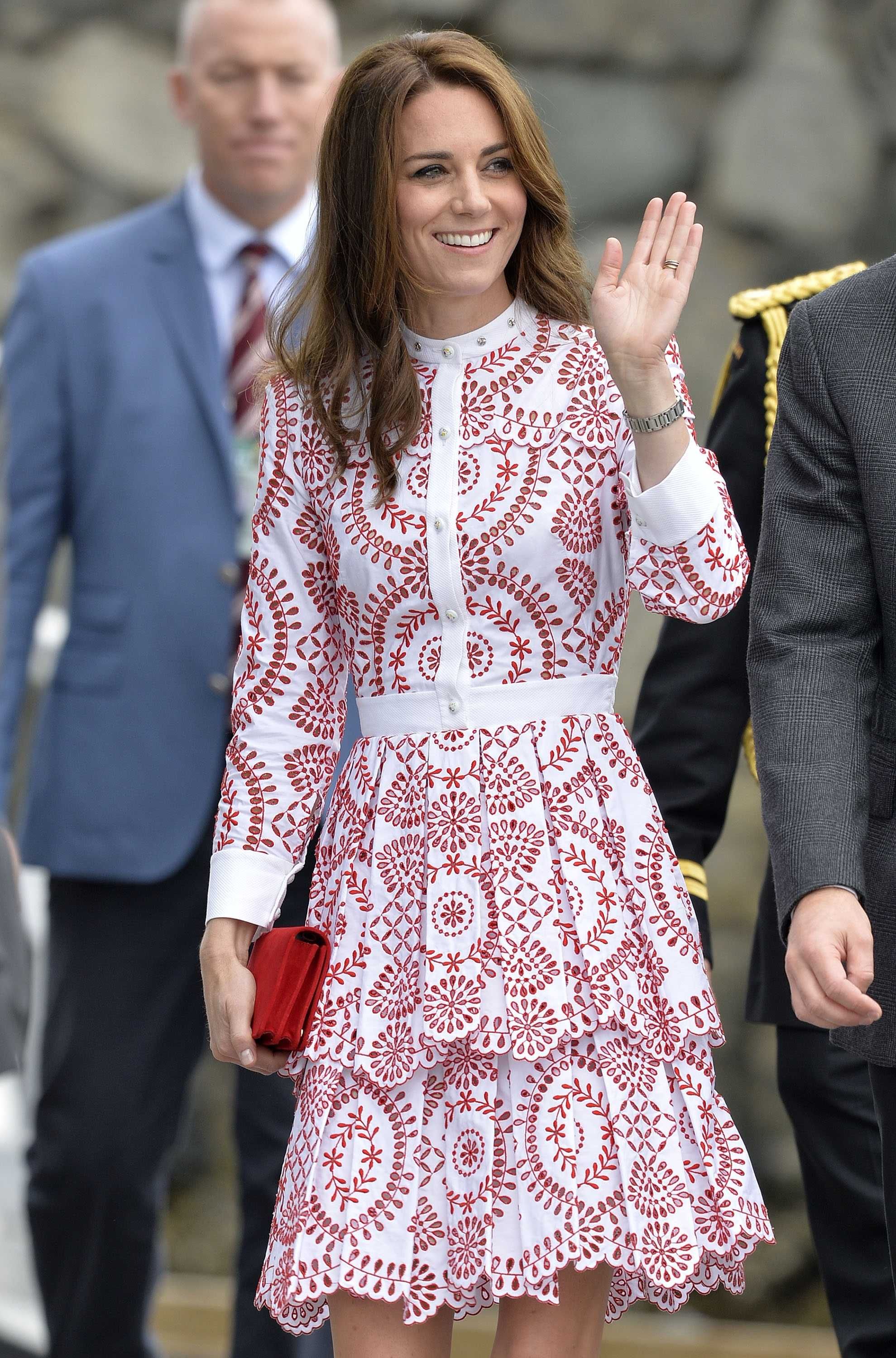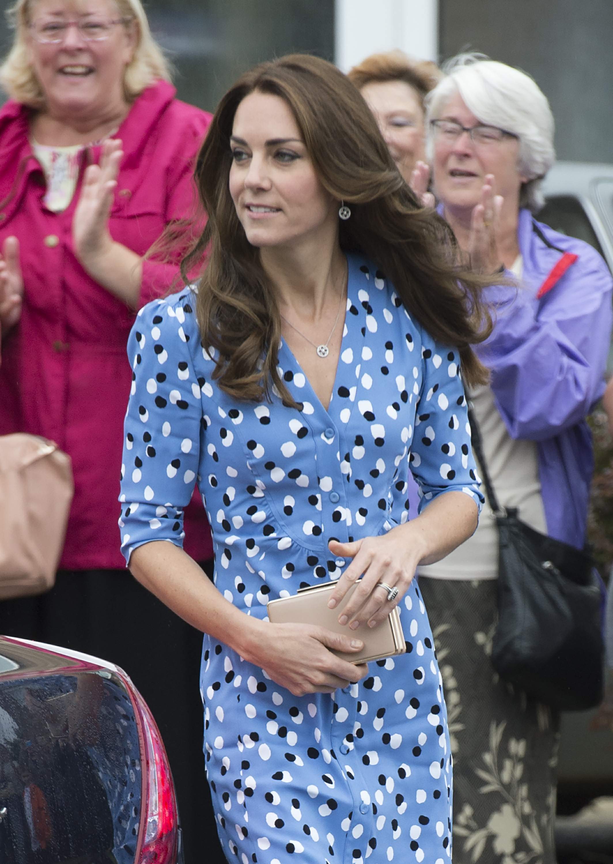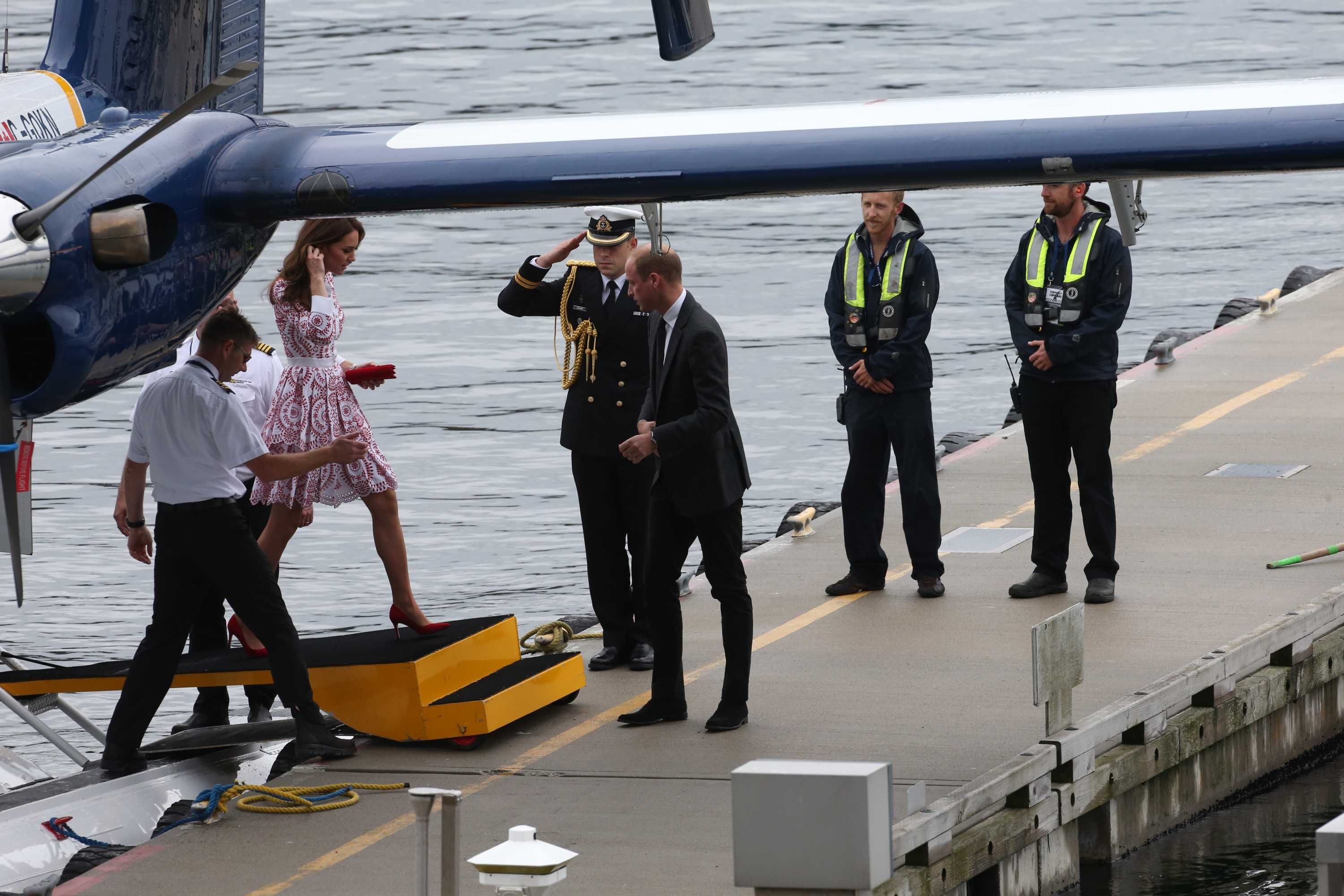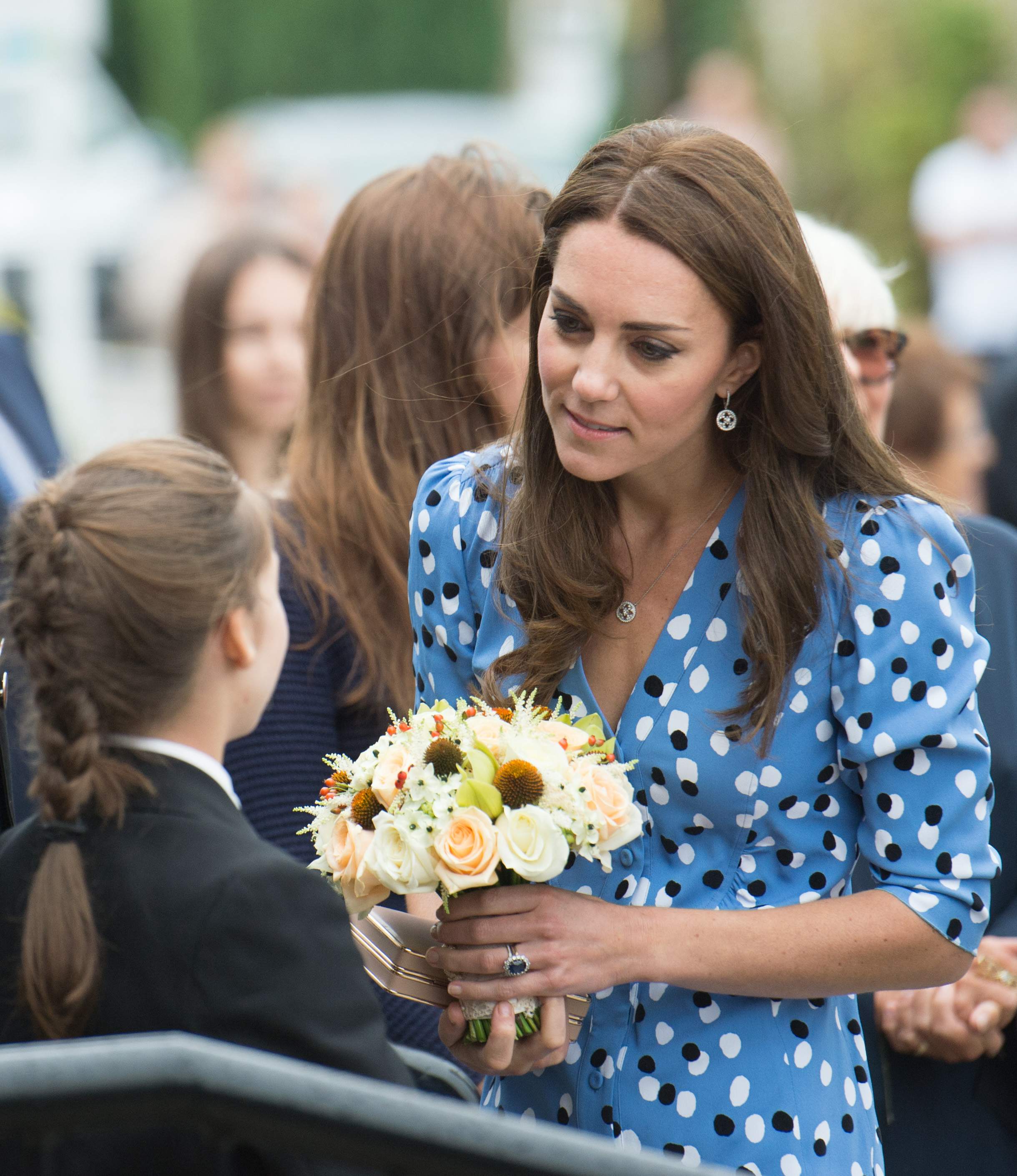 Prince William rushed to the aid of a local dignitary today after he toppled over while welcoming the Duke and Duchess to Essex. The royals were greeted in Harlow by Vice Lord Lieutenant of Essex Jonathan Douglas-Hughes, the Queen's representative in the county. But the 72-year-old, who was wearing full ceremonial uniform including a sword and boots with spurs, tumbled backwards over a concrete bollard shortly after the couple got out of their car. William rushed to help the stricken official, who got up looking somewhat embarrassed. Mr Douglas-Hughes turned to William and said 'Sorry about that' and the Duke replied 'No, it's all right'. William and Kate were arriving at a windswept Stewards Academy in Harlow, Essex, to discuss how young people cope with issues such as starting a new school.