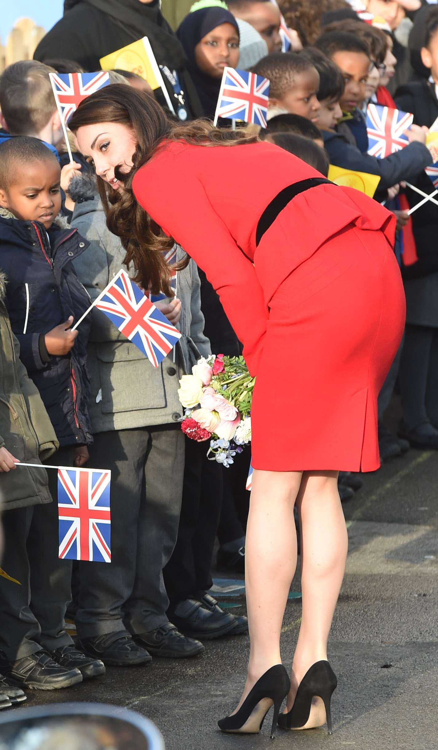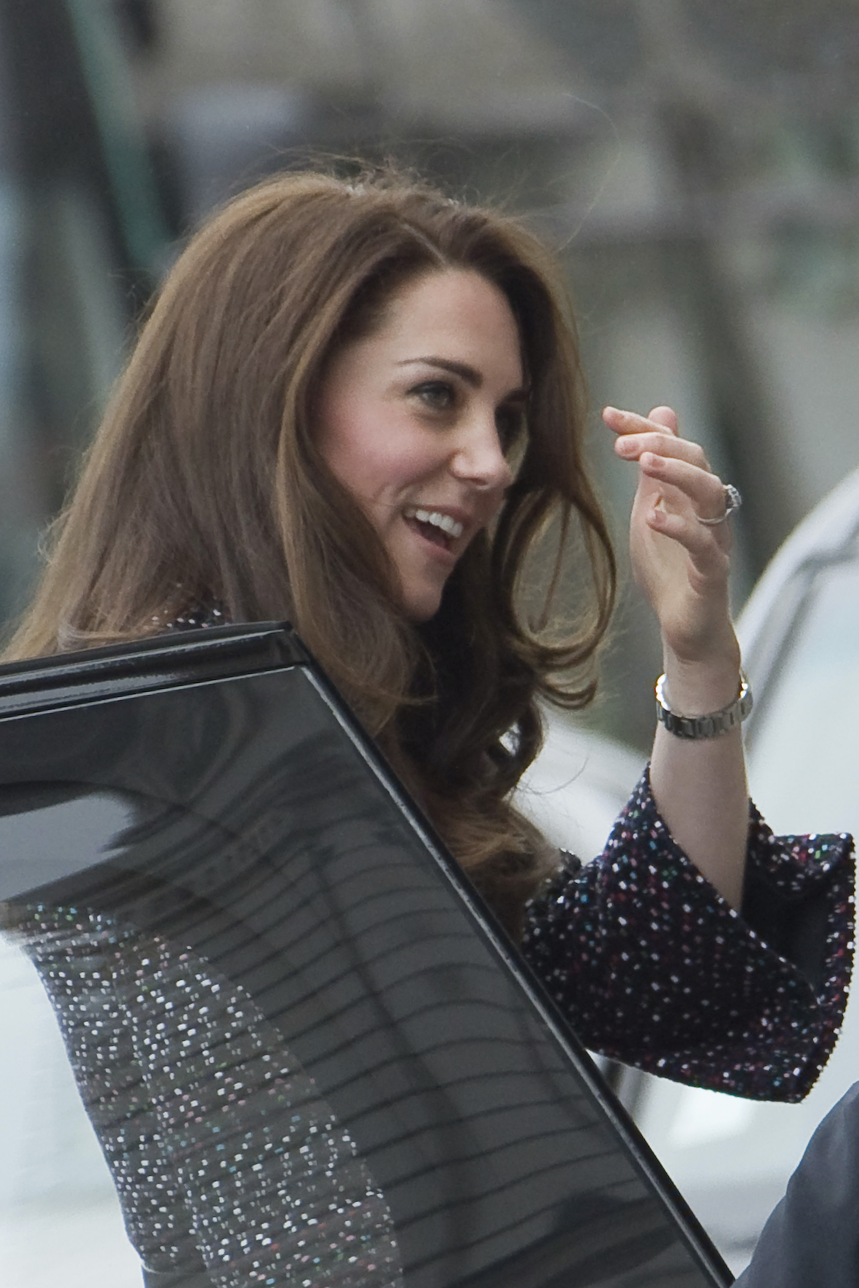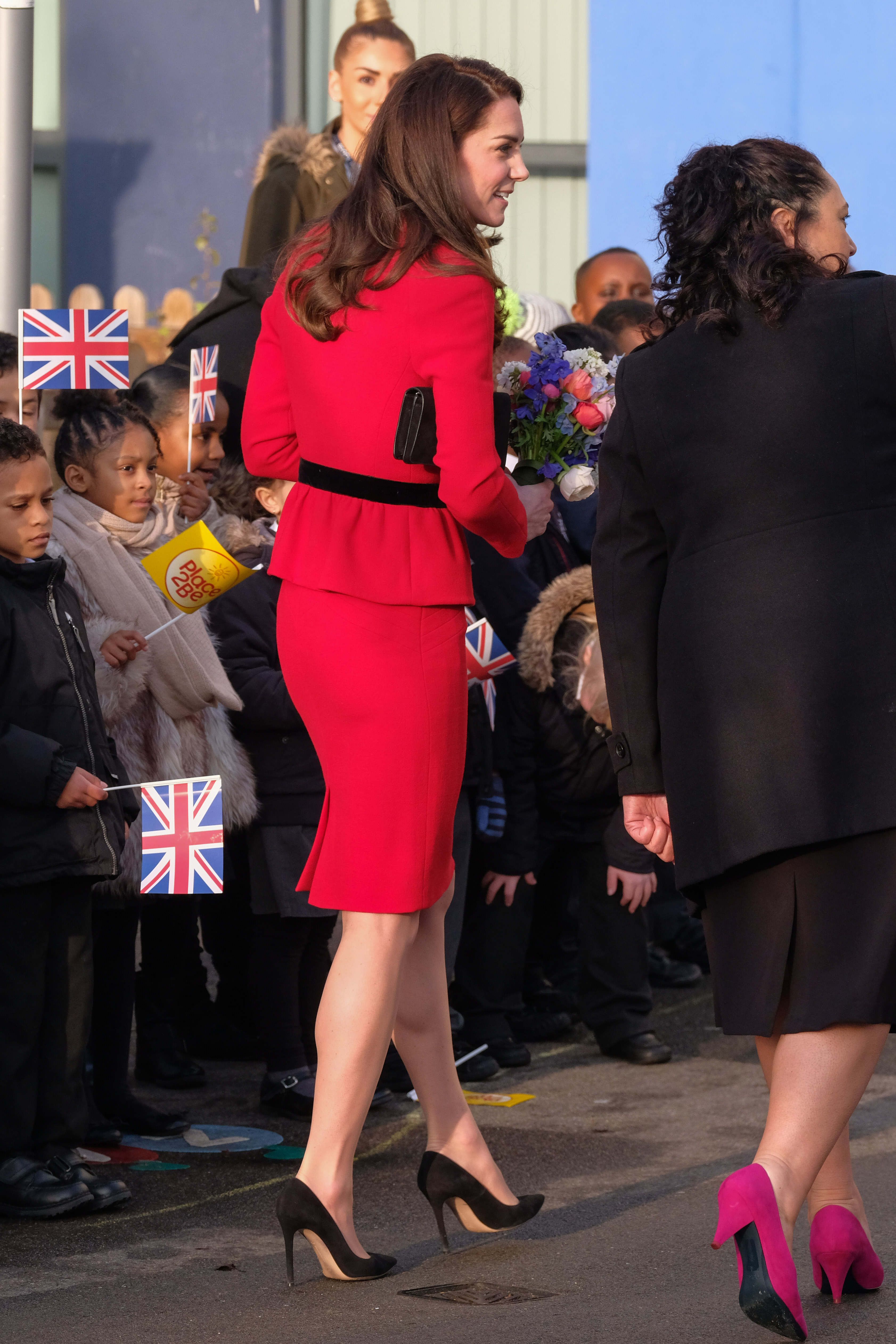 Kate Middleton is all smiles as she greets the crowds while stepping out on Wednesday afternoon (January 11) in London, England.