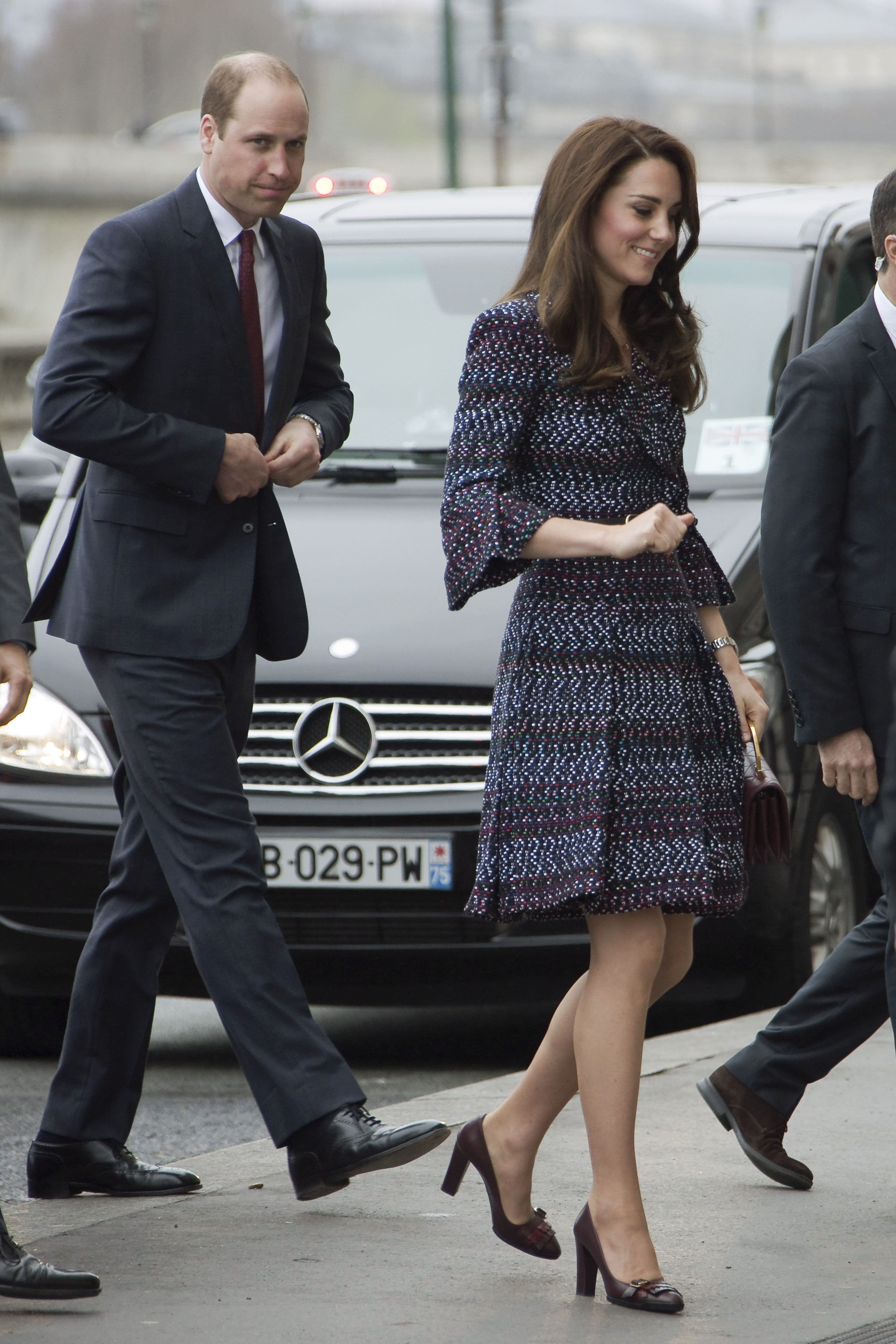 The newly 35-year-old Duchess of Cambridge looked pretty in a blue dress as she joined husband Prince William for a day of royal duties.