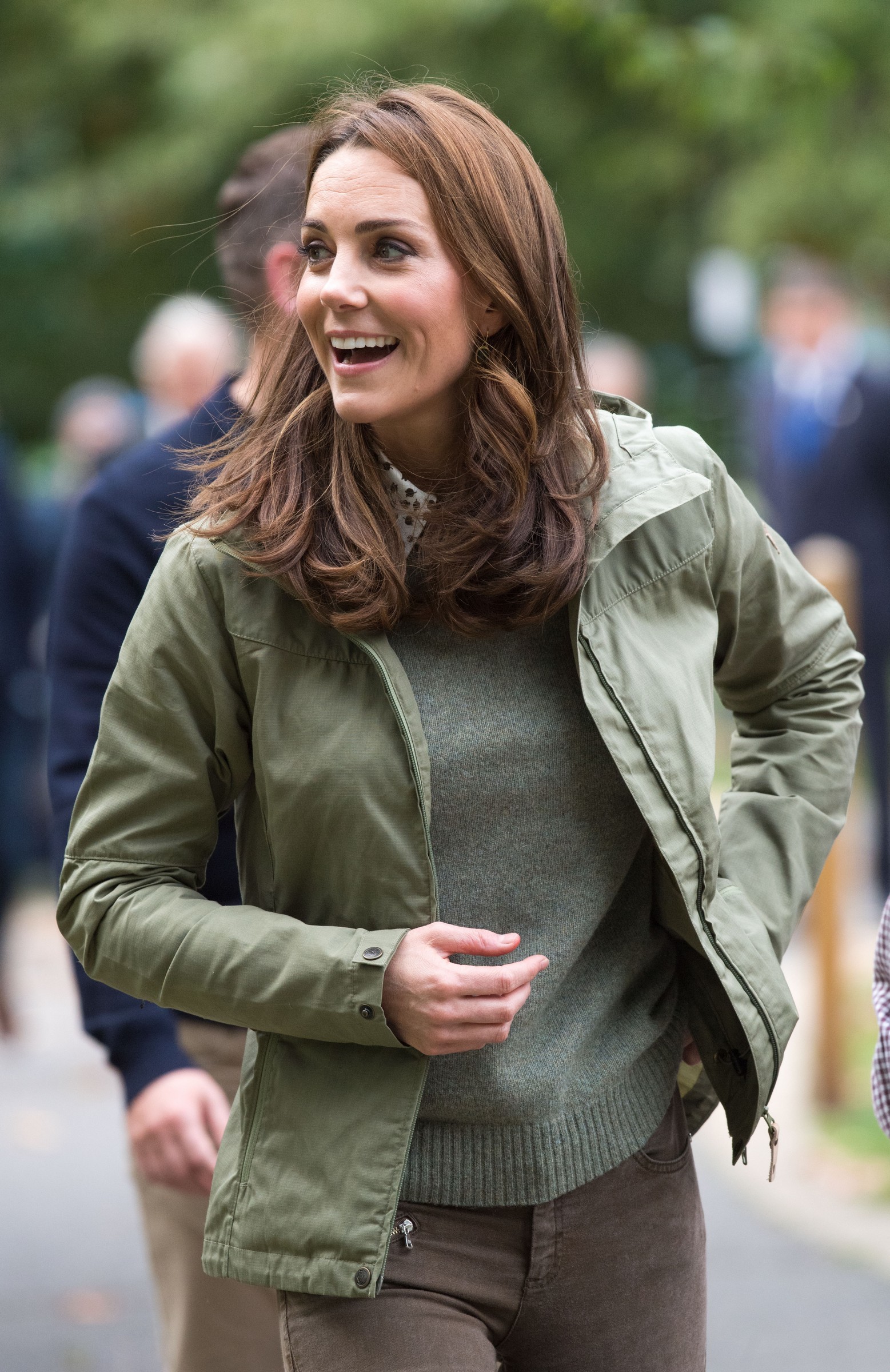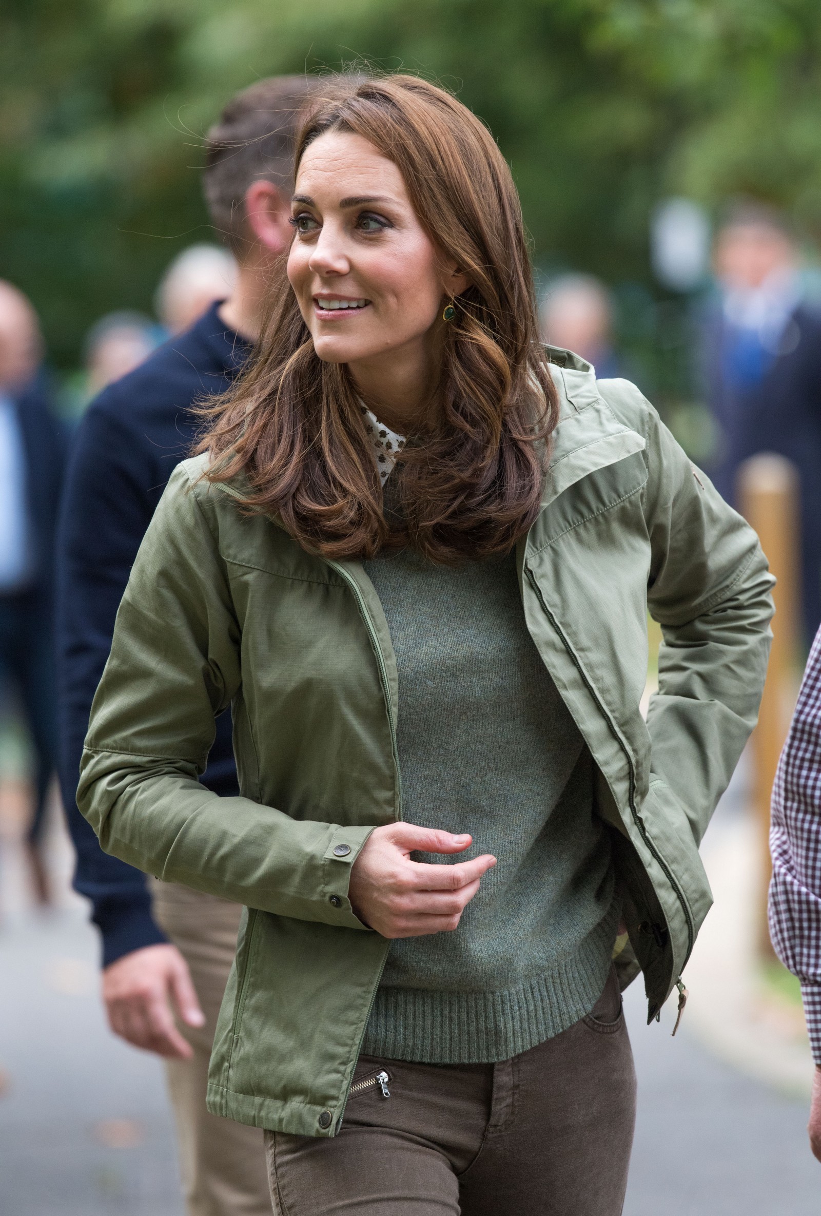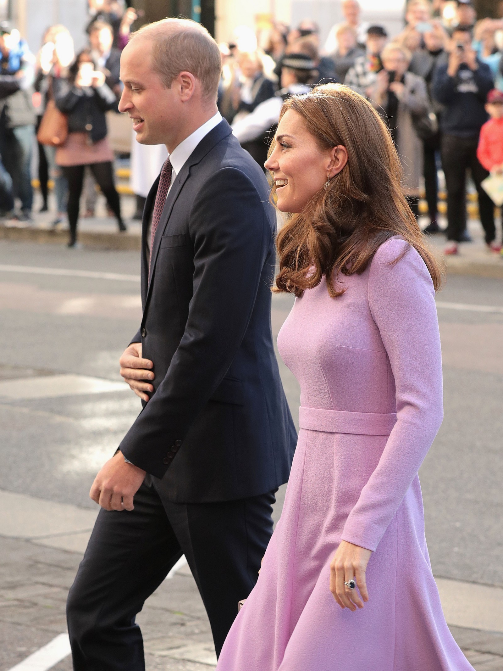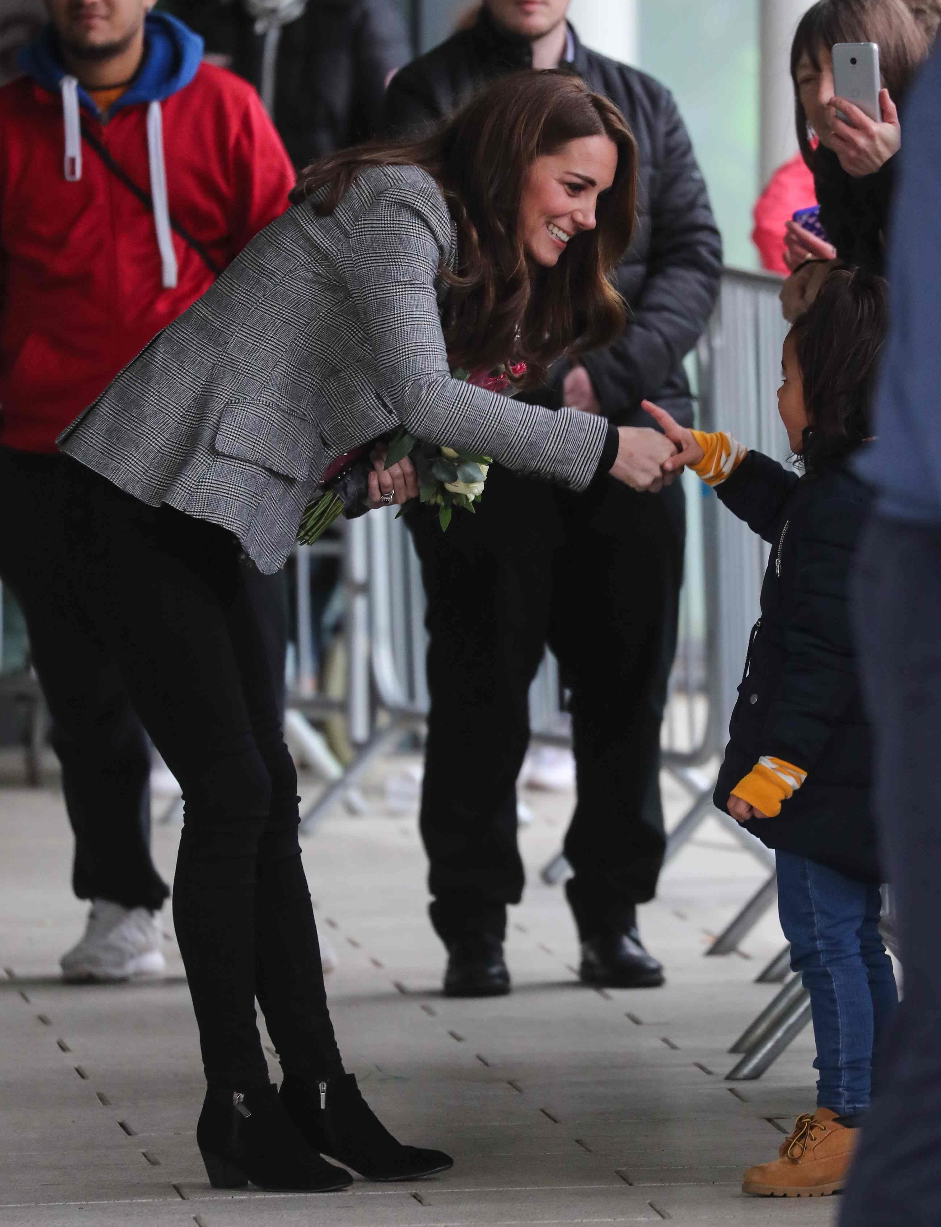 the Duchess is wearing a Jenny Packham dress, Gianvito Rossi pumps, and a Mulberry clutch.