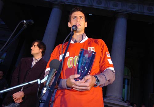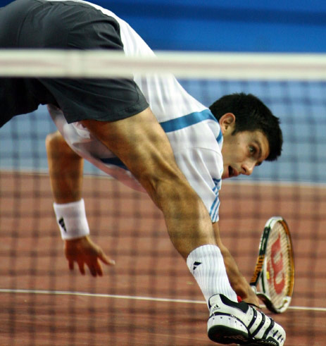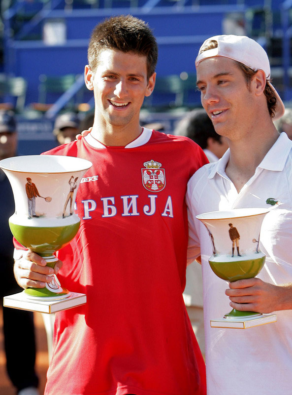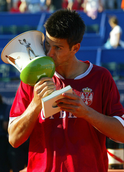 Novak Djokovic began playing at age four and made his pro debut at 16. Father, Srdjan and mother, Dijana own a pizzeria and pancake restaurant on a mountain in Serbia for last 15 years. Father, uncle and aunt were all professional skiers and his father was also an excellent soccer player. His father wanted him to be a soccer player or skier but excelled in tennis at an early age. Credits his family as inspiration for giving him so much support and says he wouldn't be able to be where he is without their help. Younger brothers Marko and Djordje are both in school and play tennis. Idol growing up was Pete Sampras. At age 12, attended Niki Pilic Academy in Munich and practiced there before returning to Belgrade. Nole speaks Serbian, German and English. Favorite surface is hard courts but considers himself an all around player. Best shot is backhand down the line. As a junior, advanced to Australian Open junior singles and doubles SF (with Jenkins) in 2004. Coached by Marian Vajda and fitness trainer Salvador Sosa.