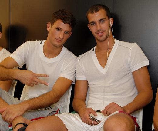 Armani Exchange Fall 2007 campaign, which features the boys in a club scene alongside Alessandra Ambrosio, male models Adam Senn and Clint Mauro are back, but this time with the holidays spirit in mind.