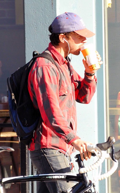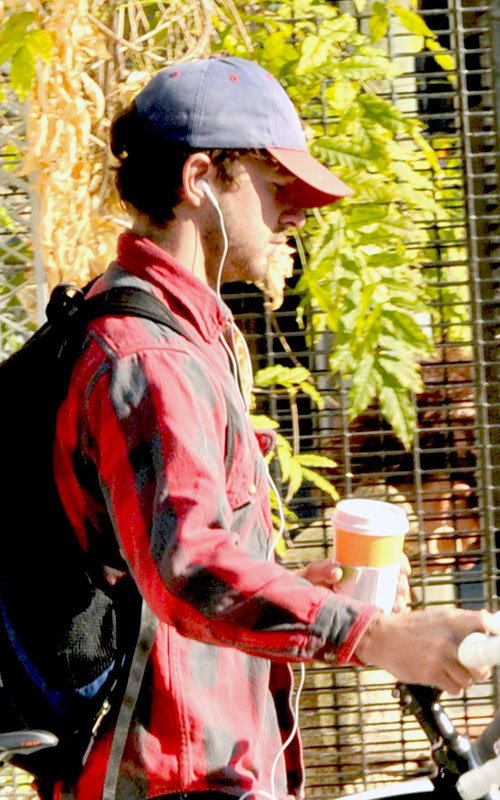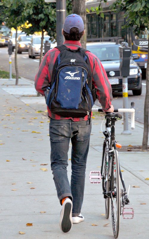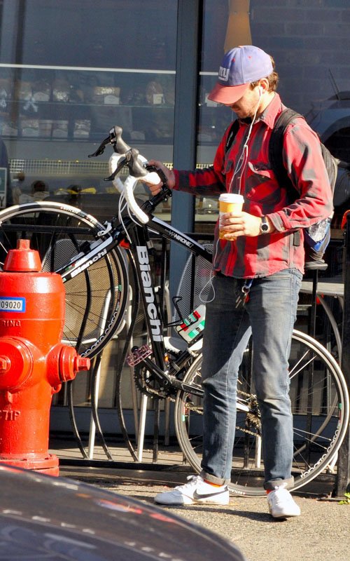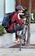Takes a break after riding his bike in Vancouver - October 18
