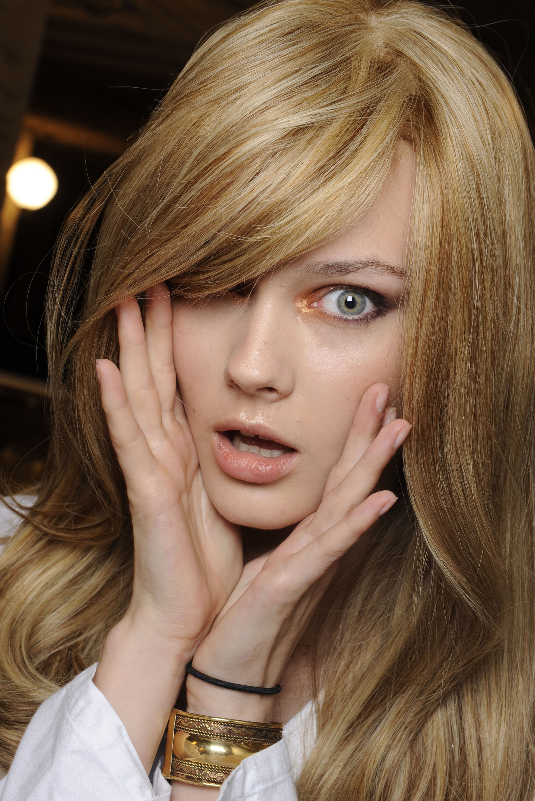 She was gorgeus at Dior. I love the hair and make up and the dress but I hate the plastic they put over her face.