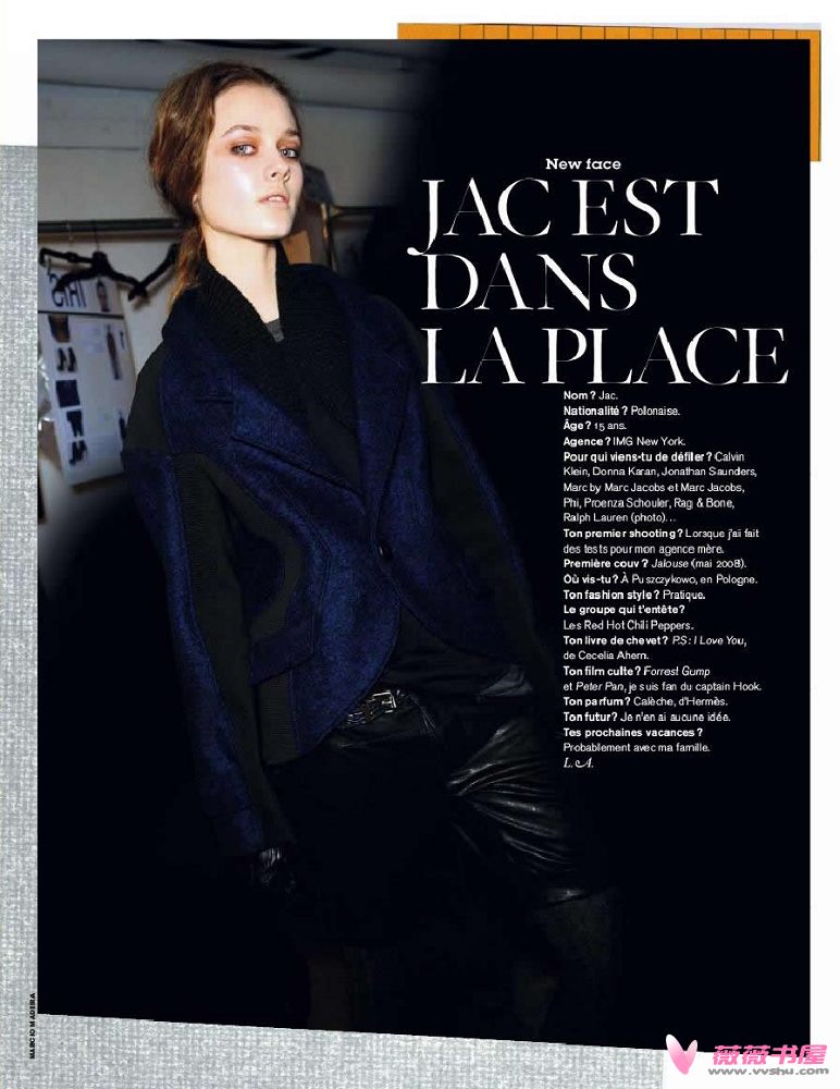 5. jac (img)This Poland native caused quite a stir when she landed a succession of covers and an Hermès campaign at just 13. Two years later, she still had to sit out Paris due to age restrictions, but she closed Marni and was first and last out at Calvin Klein, the Fall campaign of which she scored last week.