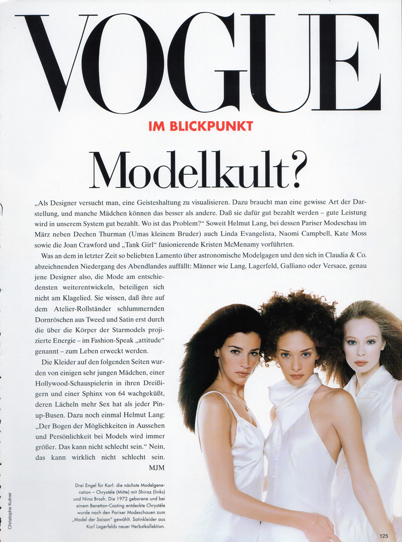 "Modelkult?" - VOGUE Germany June 1995 by Christophe Kutner - also showing Chrystele Saint Louis Augustin, Nina Brosh