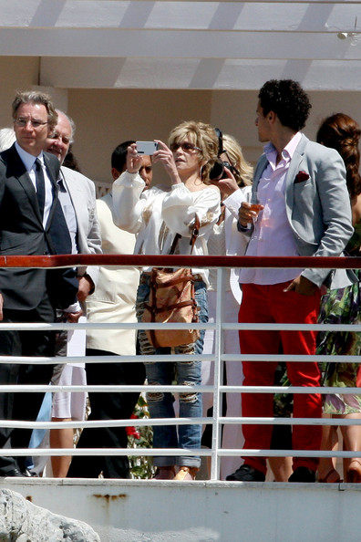 The legendary actress Jane Fonda, wearing Chopard jewelry, looked fit and stunning at 74 when she arrived for the Moonrise Kingdom gala in a form-fitting coral metallic gown. Fonda is one of several L'Oreal Paris brand ambassadors appearing at the festival.