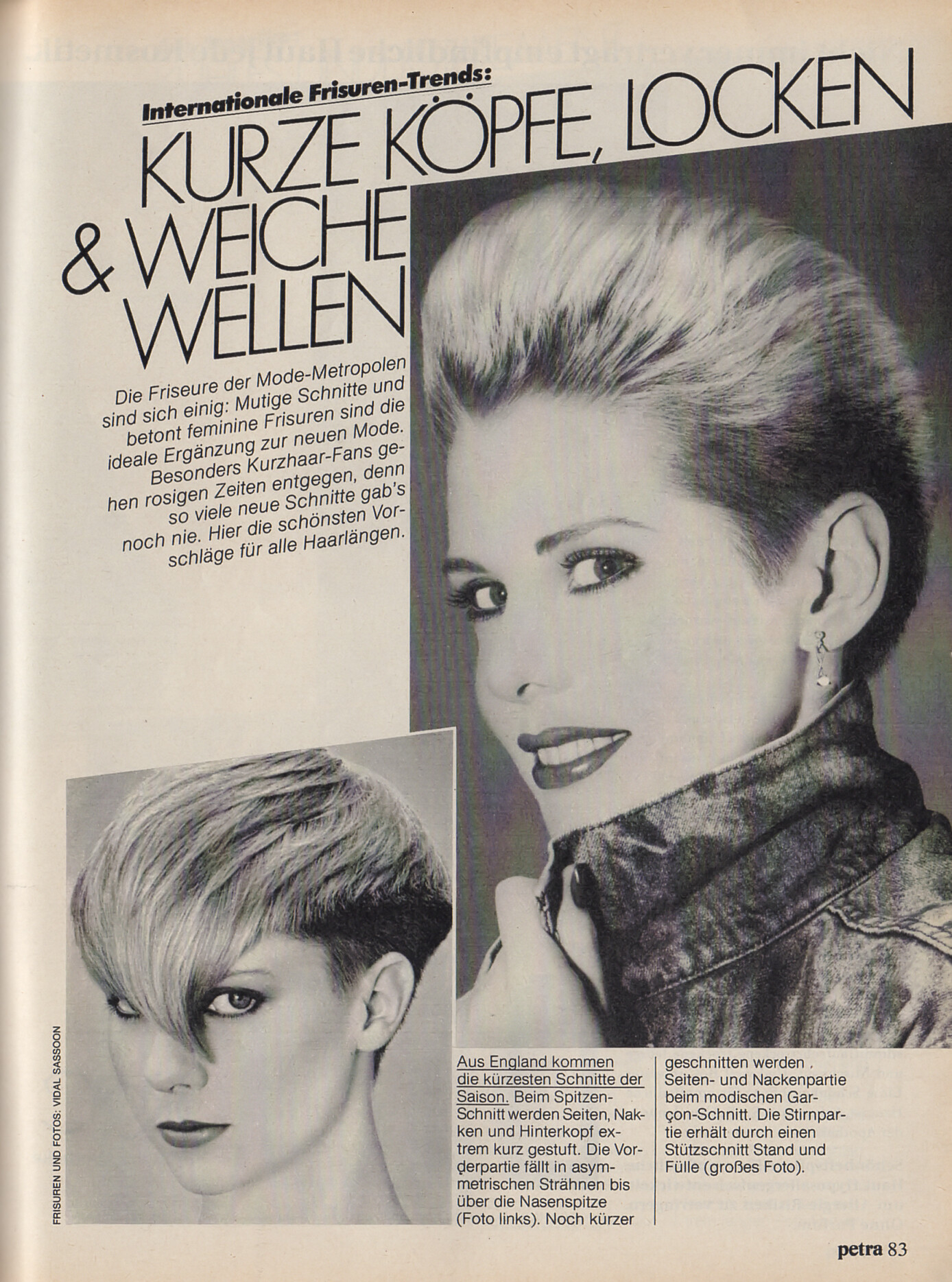 "KURZE KÖPFE, LOCKEN & WEICHE WELLEN" - petra Germany February 1983 (26. January 1983) by Vidal Sasson - also showing Beth Rupert, unknown