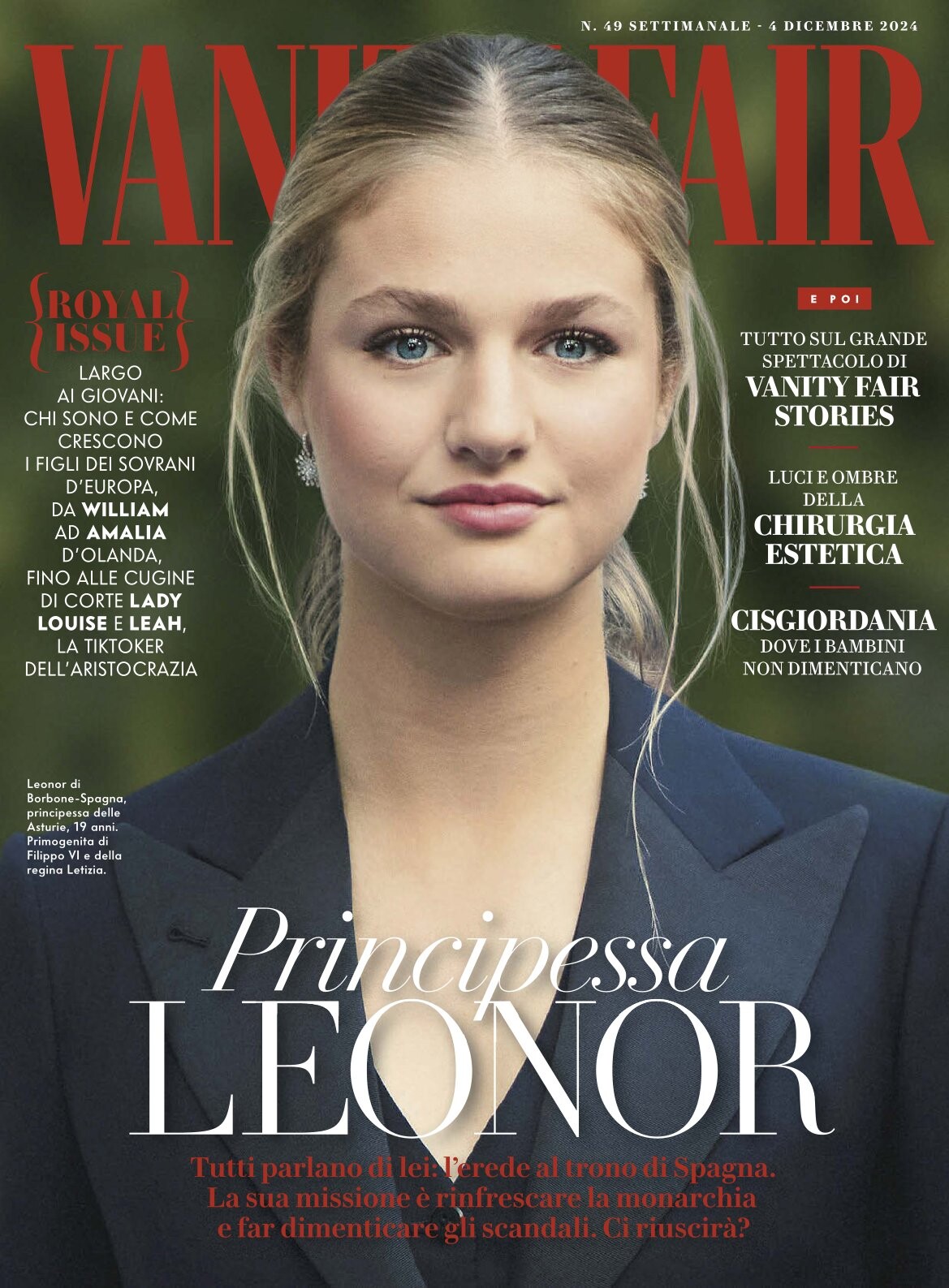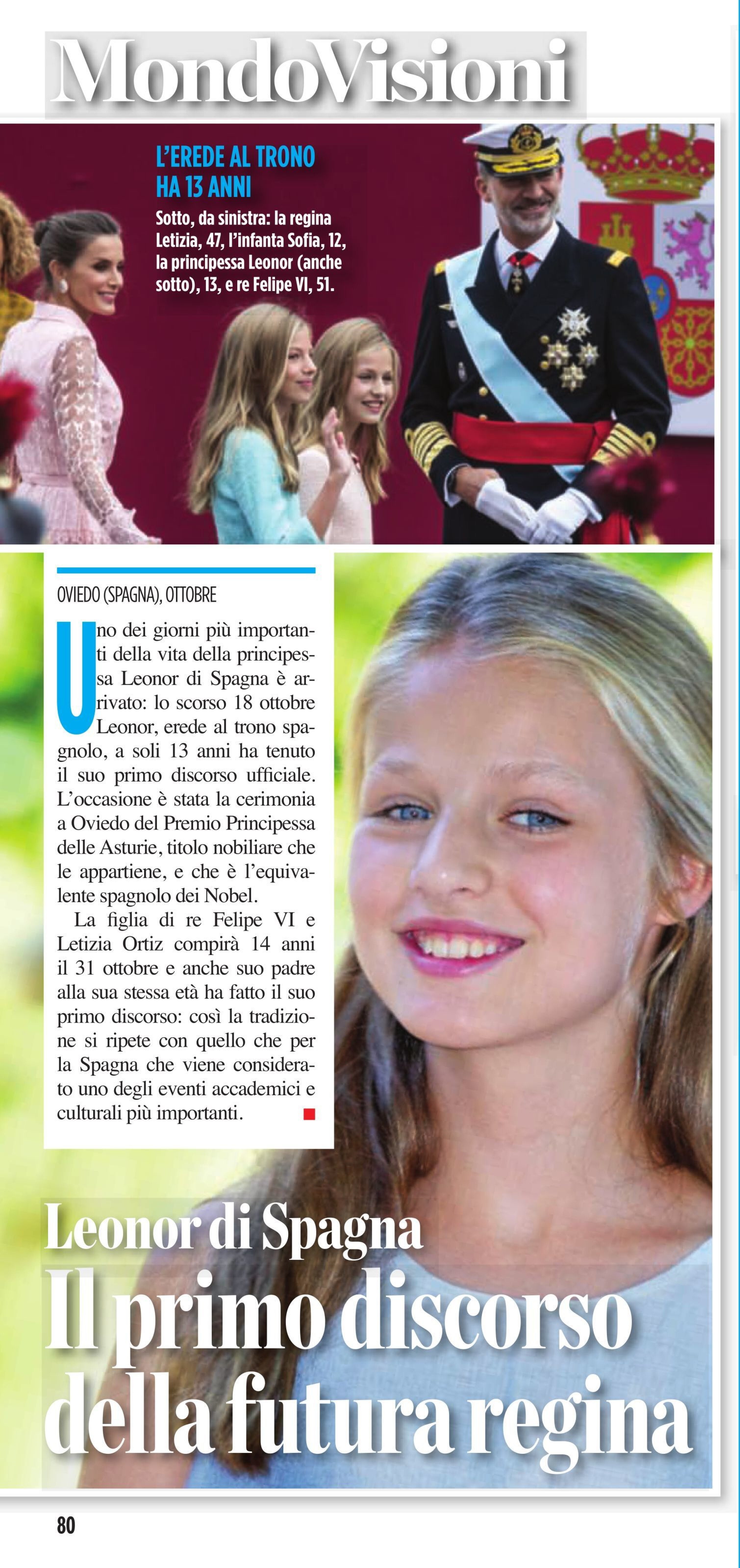 Leonor, Princess of Asturias (Leonor de Todos los Santos de Borbón y Ortiz; born 31 October 2005) is the heir presumptive to the Spanish throne. She is the elder daughter of King Felipe VI and Queen Letizia.