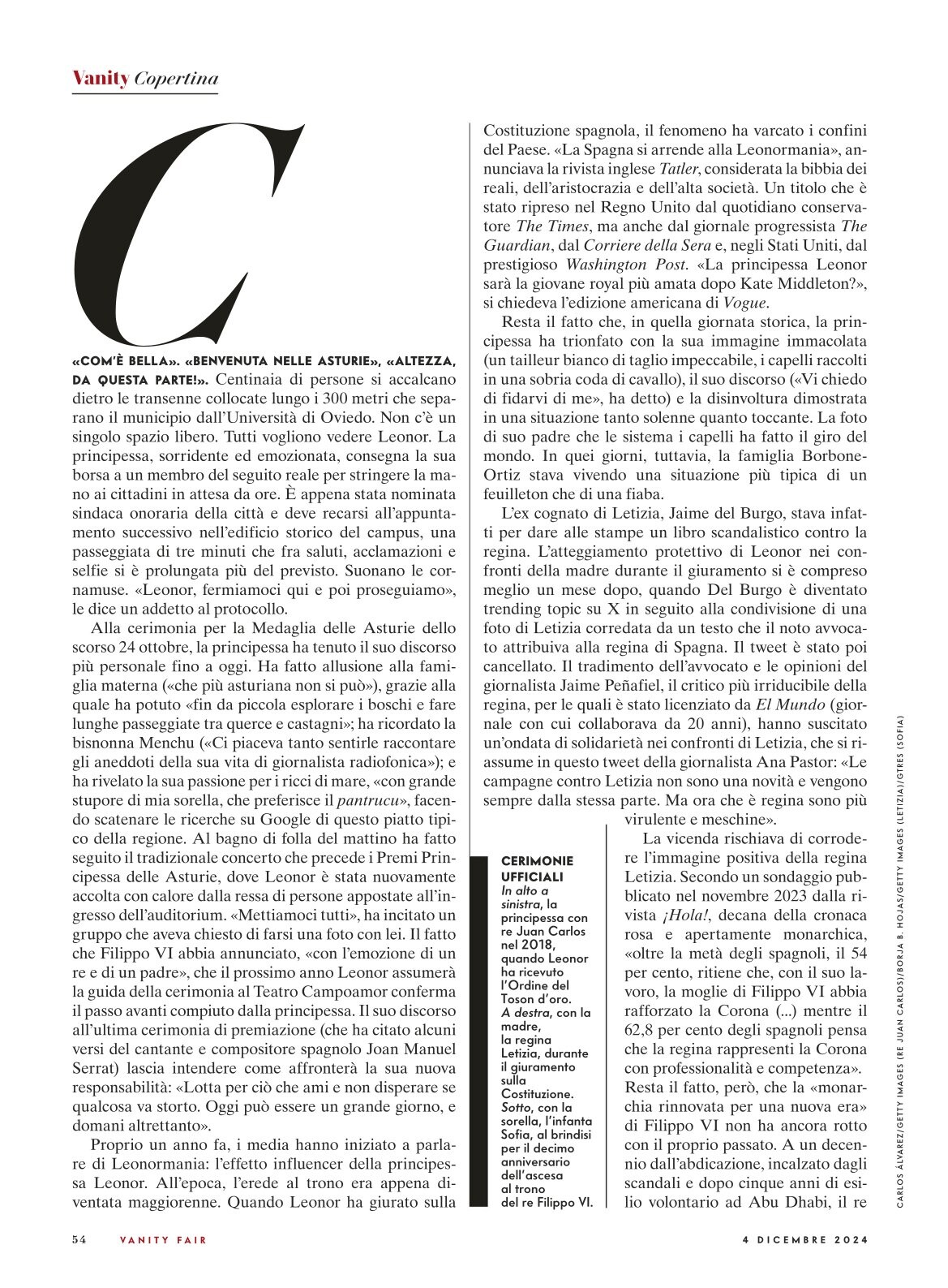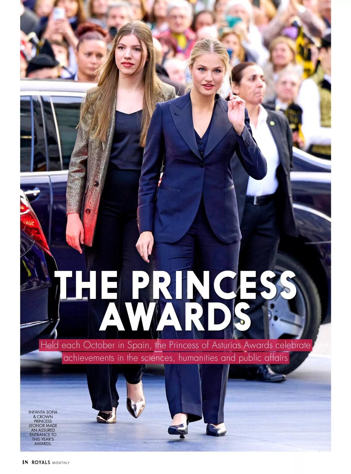 In 2014, following her father's ascension to the throne after the abdication of her grandfather, Leonor was granted all the traditional titles of the heir to the Spanish crown, these are Princess of Asturias, Princess of Girona, Princess of Viana, Duchess of Montblanc, Countess of Cervera, and Lady of Balaguer. Leonor was formally proclaimed heir before the Cortes on 31 October 2023, her 18th birthday.