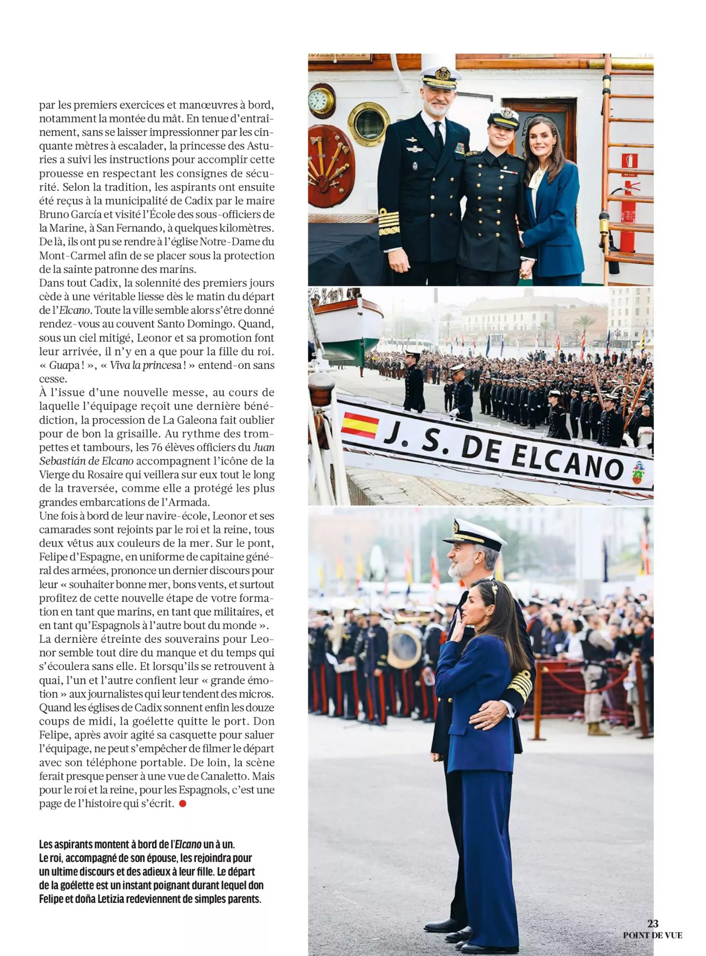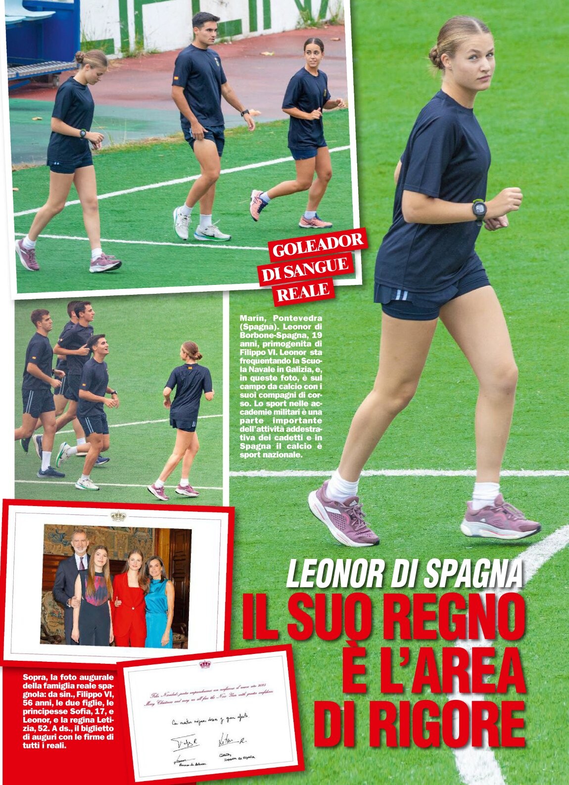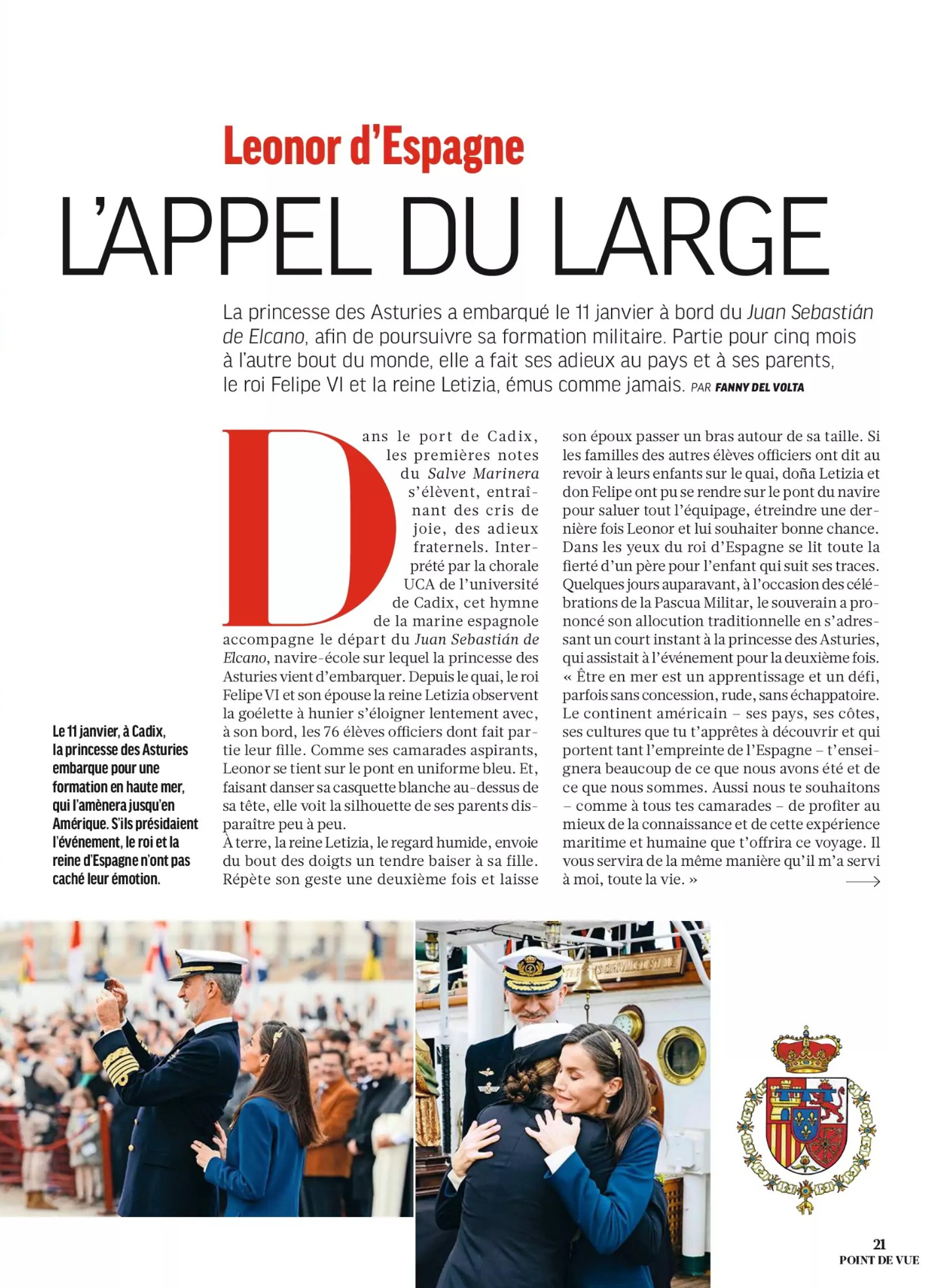 Leonor was born during the reign of her paternal grandfather, King Juan Carlos I. She was educated at Santa María de los Rosales School, like her father; after finishing her secondary studies, she studied for an International Baccalaureate at the UWC Atlantic College in the Vale of Glamorgan in Wales, United Kingdom. On 17 August 2023, Leonor joined the General Military Academy to start her 3-year military education.