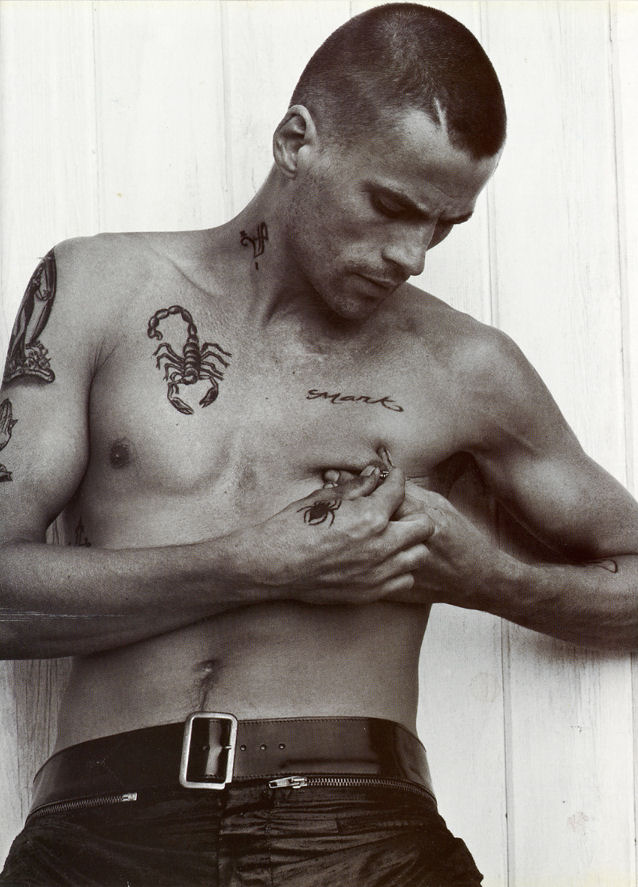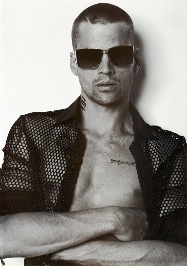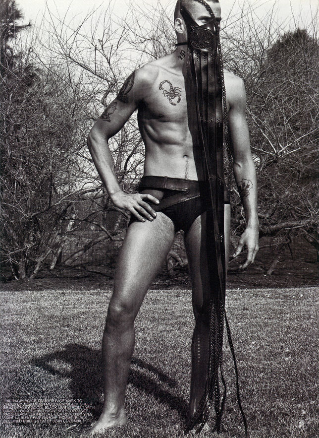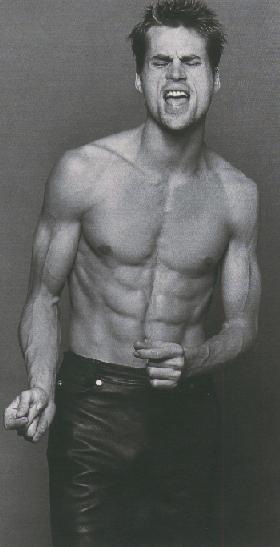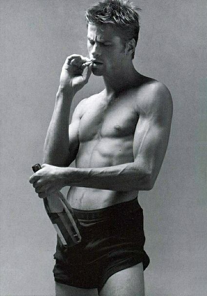 The photo top right, is it my imagination or does that look like his "maleness" leaning on his wrist? But yet, one can see the obvious bulge in his underwear.