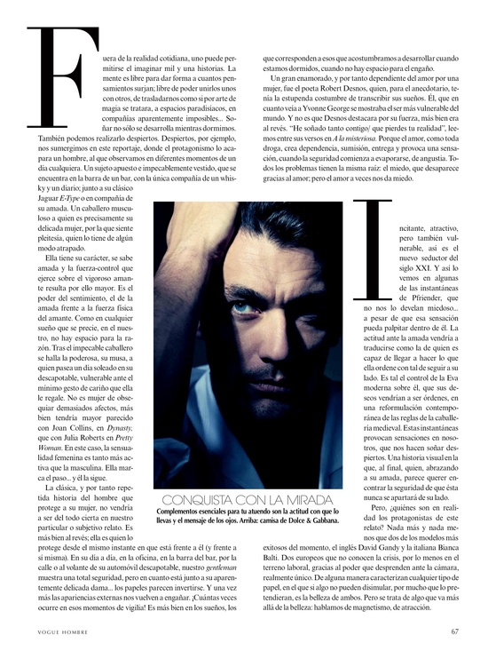 this editorial is beautiful but seems Bianca's massively into him more then he is with her if only he could be more commited to trying to have chemistry like he did in Light blue add in 2010 he did with Anna j then it would seem better but either way the editorial is spectacularDavid Gandy & Bianca Balti - Vogue Hombre 2013