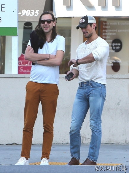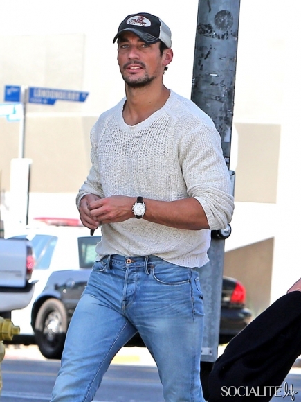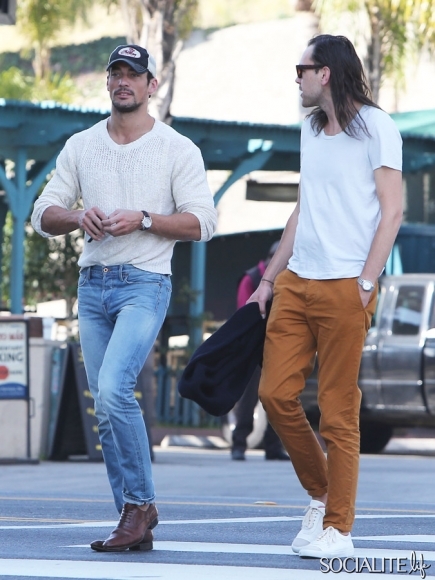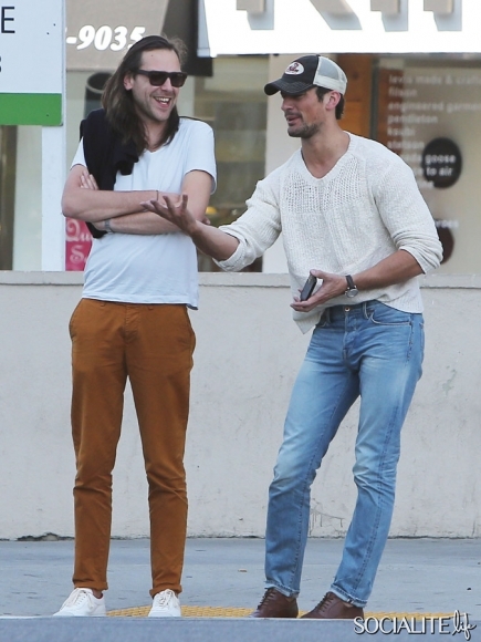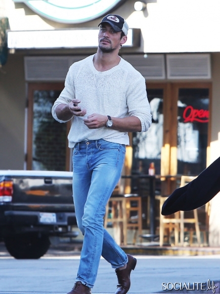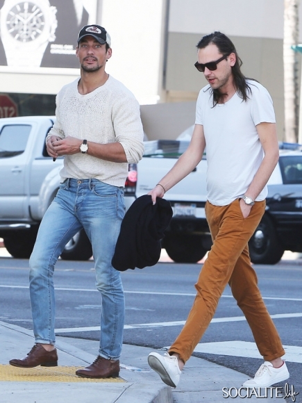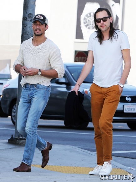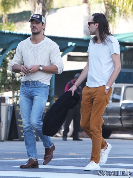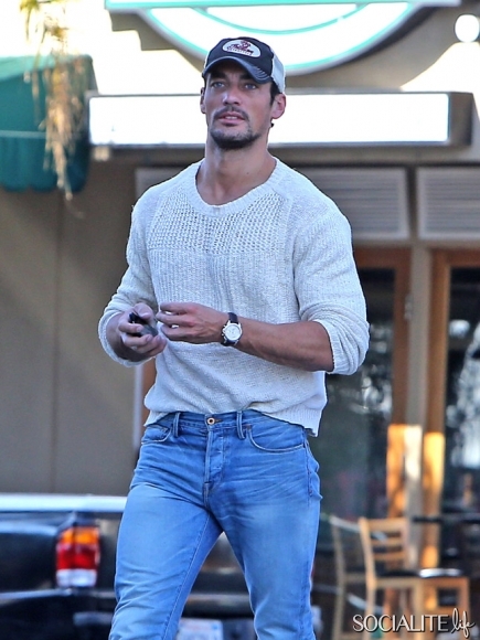 British model David Gandy lunches at Paquito Mas in West Hollywood, California with a friend on February 21, 2014.