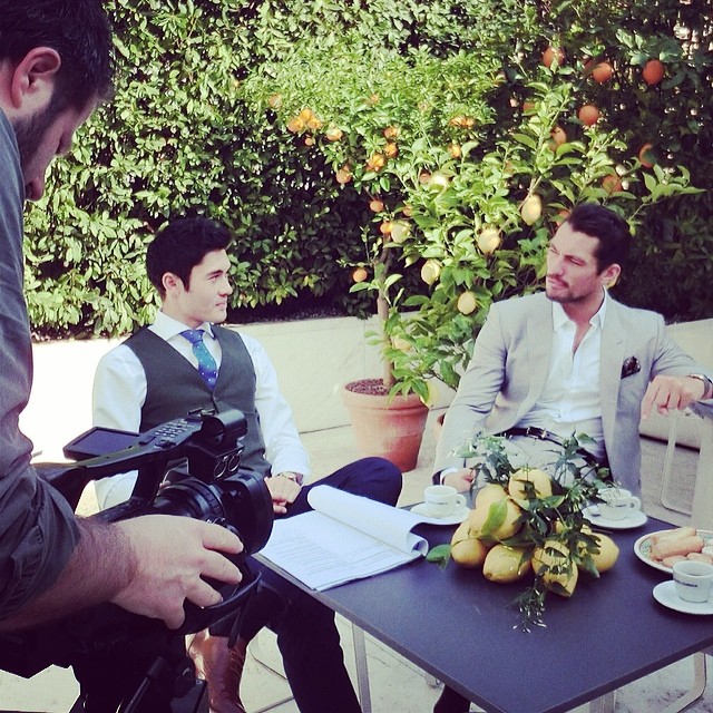 " David Gandy & Missy Ryder BTS of @LuckyBrand SS 2014 shoot. "