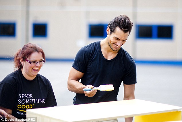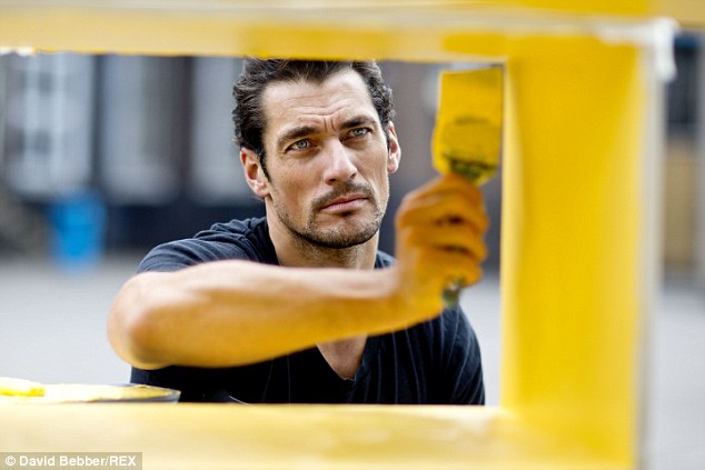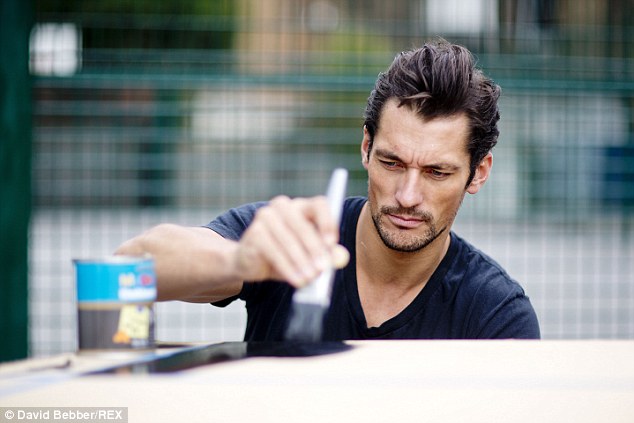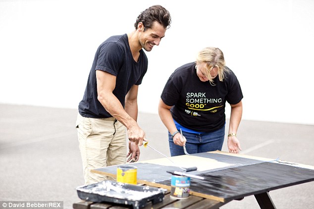 With his chiseled jawline and penetrating blue eyes, there's little surprise that David Gandy is the world's highest-earning male model. He may be best known for his rippling abs and blue steel pose but David, 35, is keen to give back, too. Proving that he's more than just a pretty face, the tall, dark and devilishly handsome male supermodel has used his name for the better - by lending his free time to a charity campaign. David, who has long been the posterboy for M&S, joined forces with Joanna Lumley to help Marks & Spencer complete 24 community projects in just 24 hours to mark the launch of its new Spark Something Good campaign.