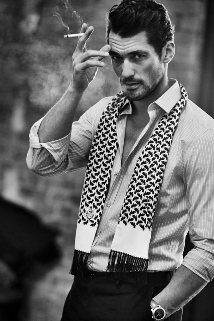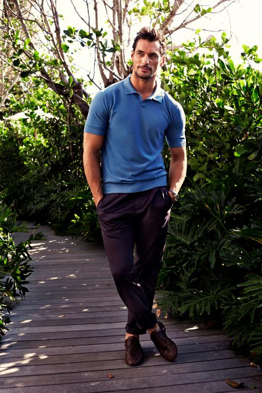 David: Oh, the early days. I was at university and a housemate of mine, without my knowing, sent in some pictures to a television program. It wasn’t like an “X-Factor” or anything — it was a very small competition on morning television. So, I went on and won, and carried on from there. I didn’t start out doing much at all, because I was the freak in the modeling industry. Everything was very androgynous — the tall, skinny Dior guys were in at the time and I was quite a big guy. But fashion goes around in circles, so I knew the masculine guy would come back in style. I started working with Dolce. In 2005 I got the apparel line, and then Light Blue in 2006. Eight years later here we are.