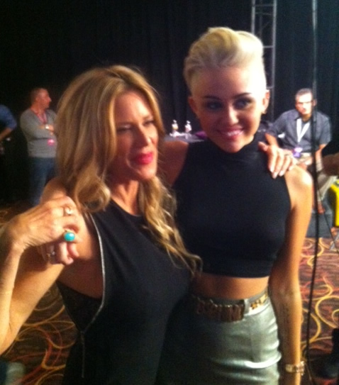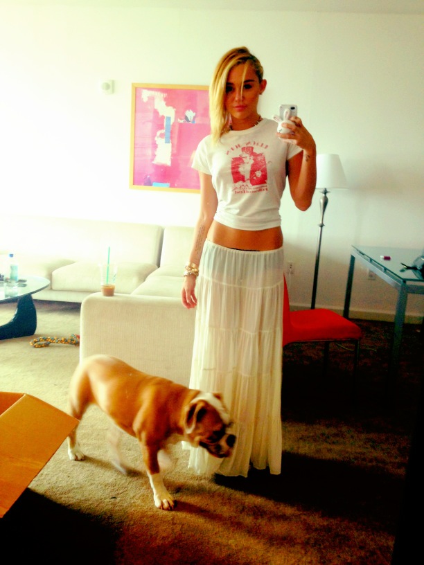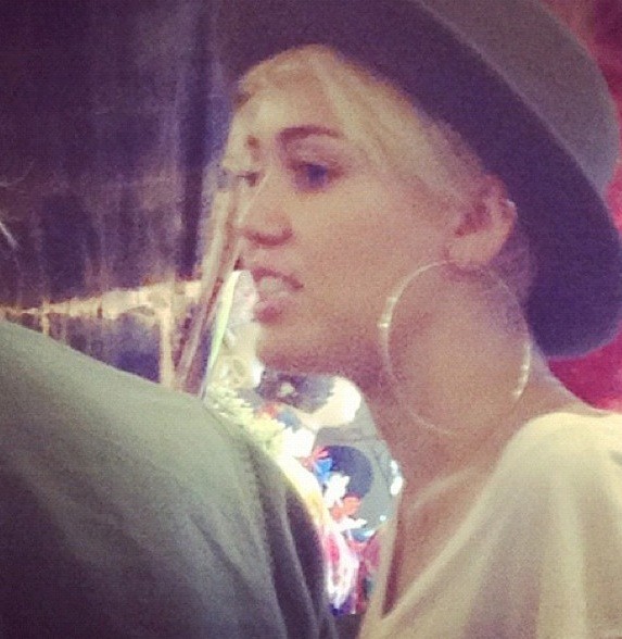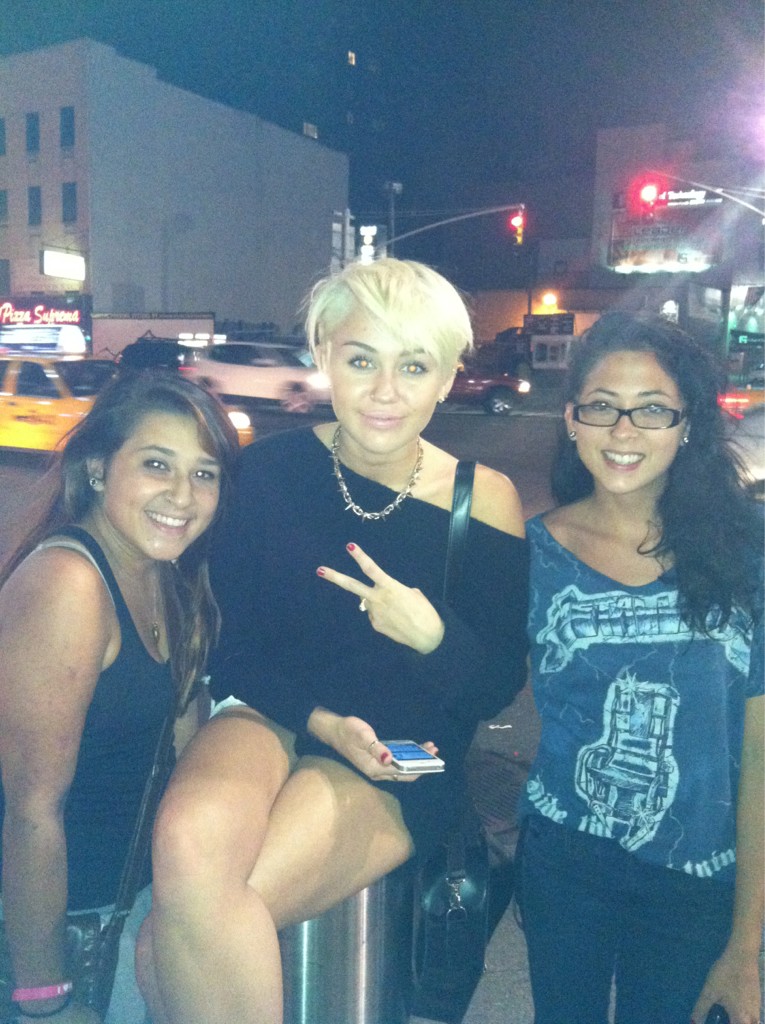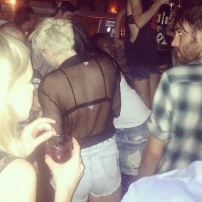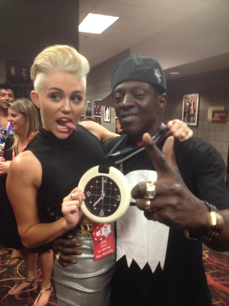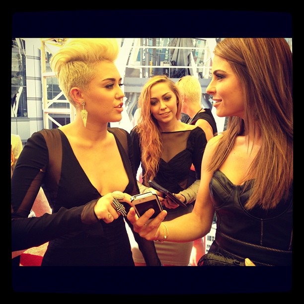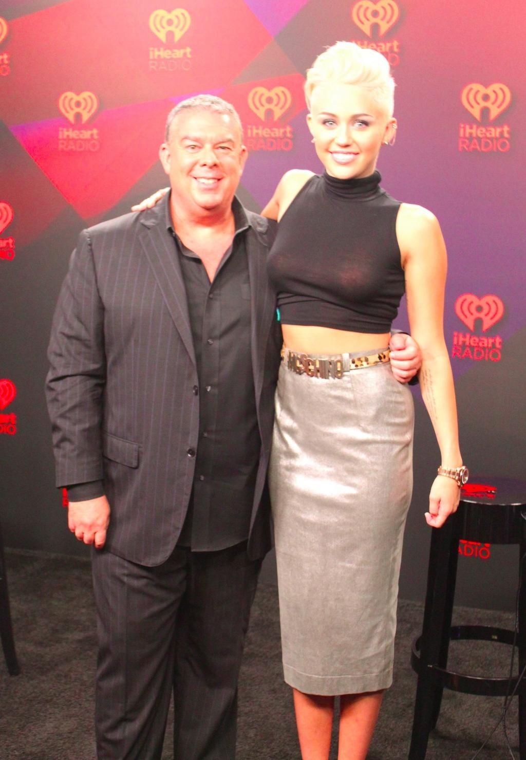Miley wore a really nice see-through black shirt to the 2012 iHeart Music Festival the other day. Unfortunately someone pulled her aside and told her that they could see her nipples through her shirt and then she tucked her shirt up to try and cover them.