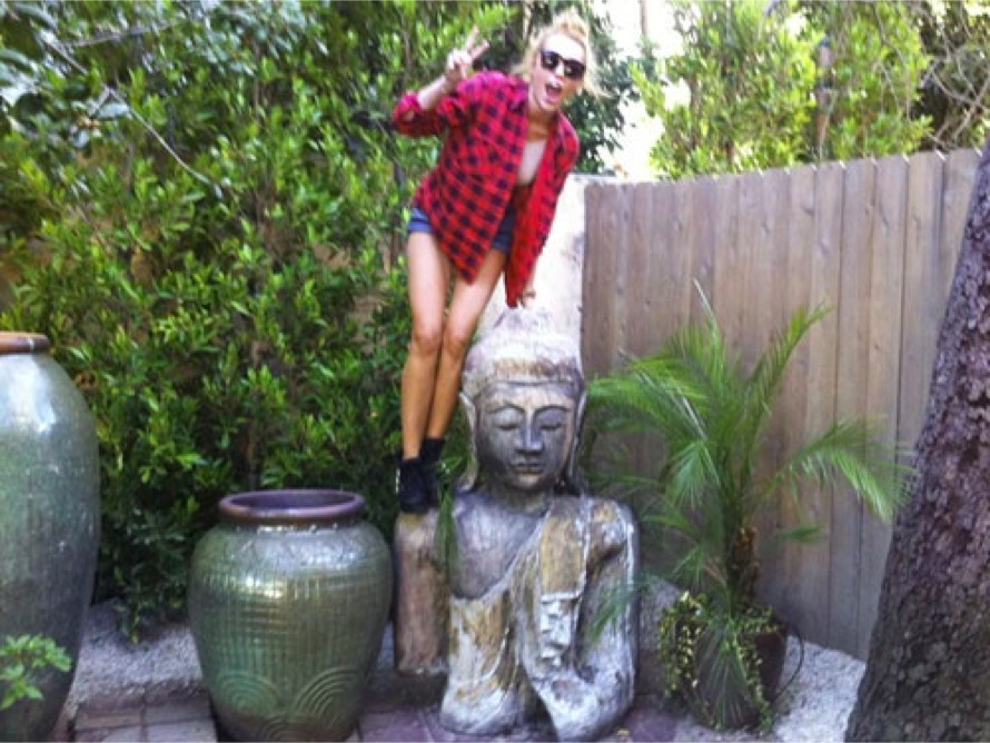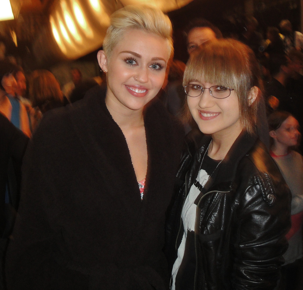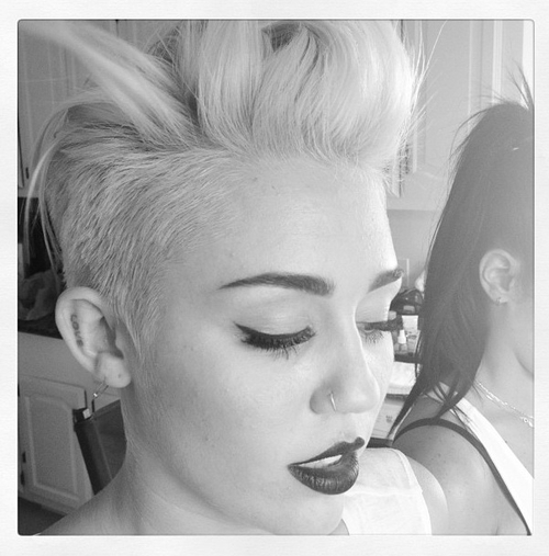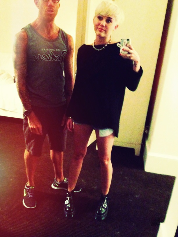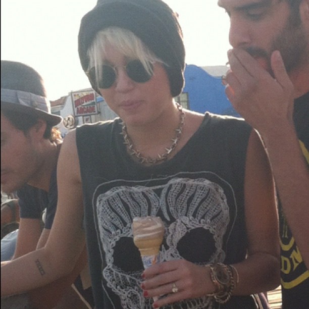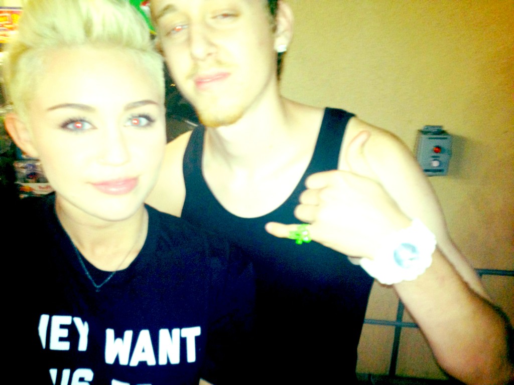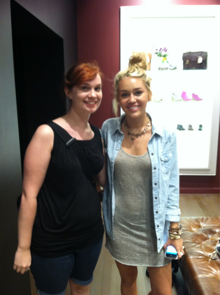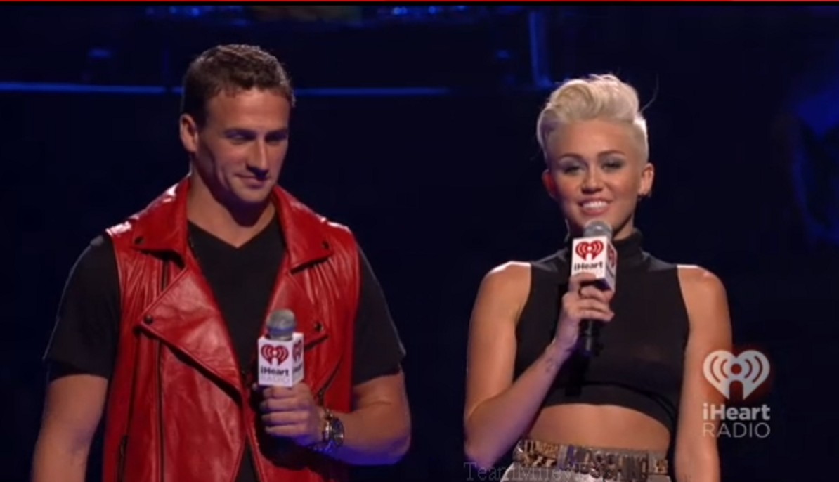 Miley wore a really nice see-through black shirt to the 2012 iHeart Music Festival the other day. Unfortunately someone pulled her aside and told her that they could see her nipples through her shirt and then she tucked her shirt up to try and cover them.