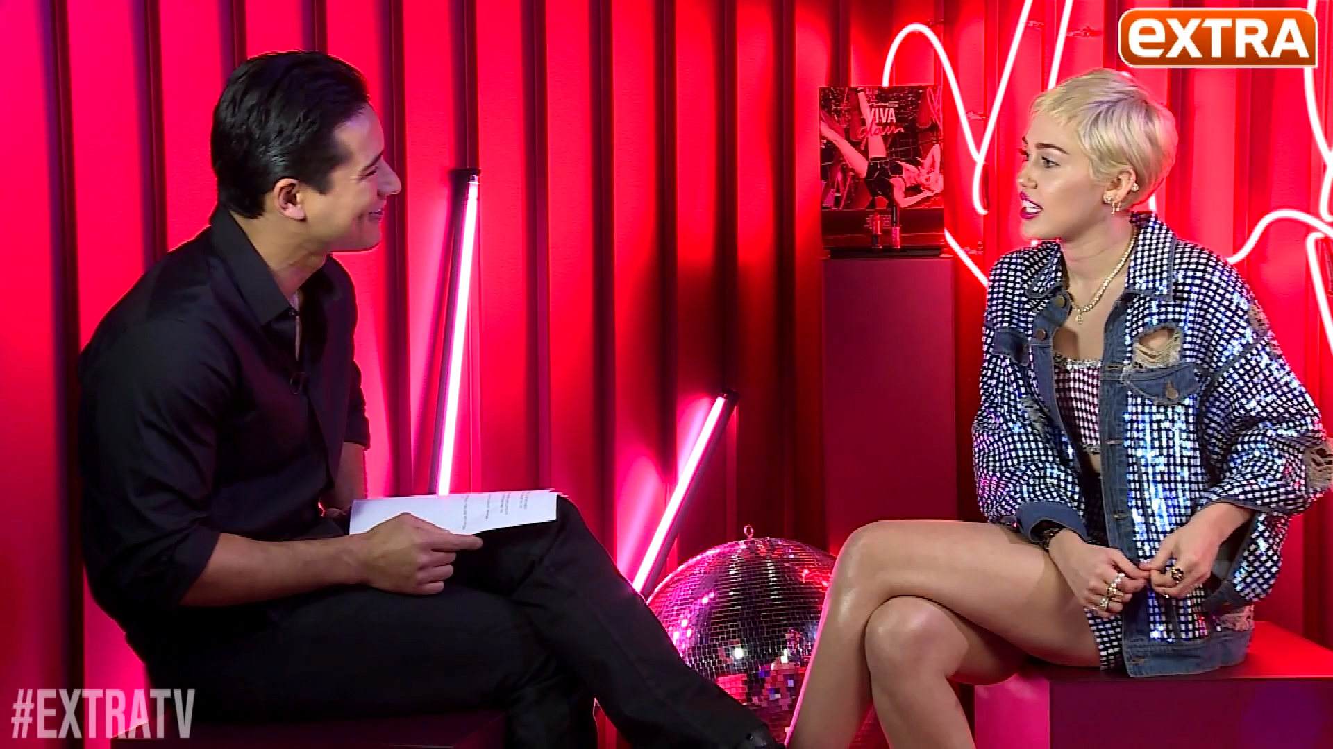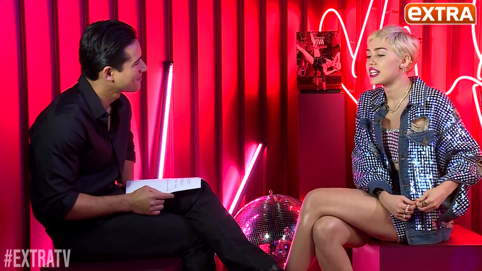 Miley Cyrus leggy interview with Mario Lopez, January 23, 2015