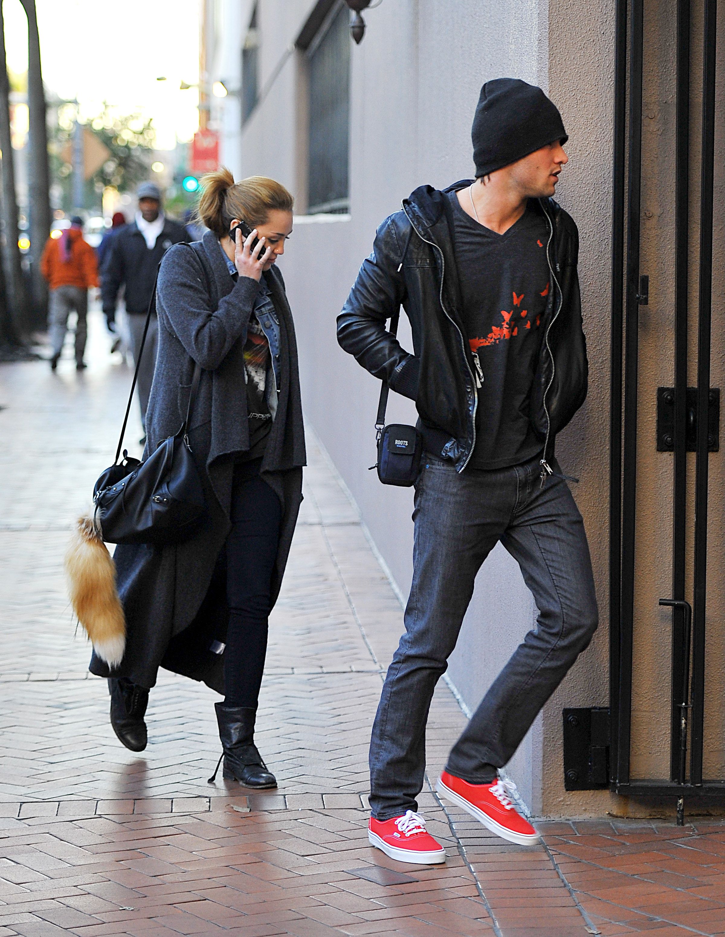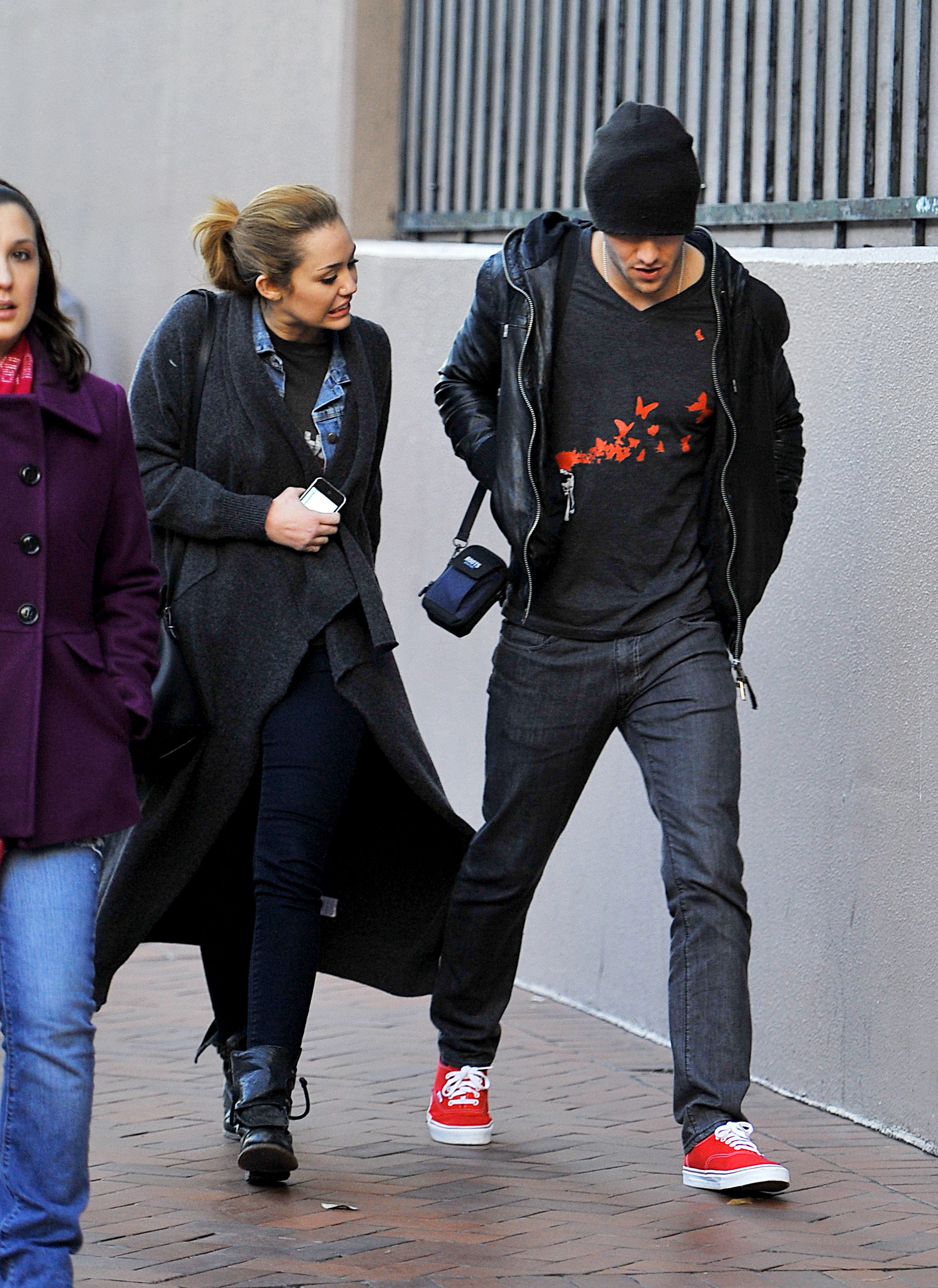 Miley and Justin leaving a restaurant (March 08, 2009)