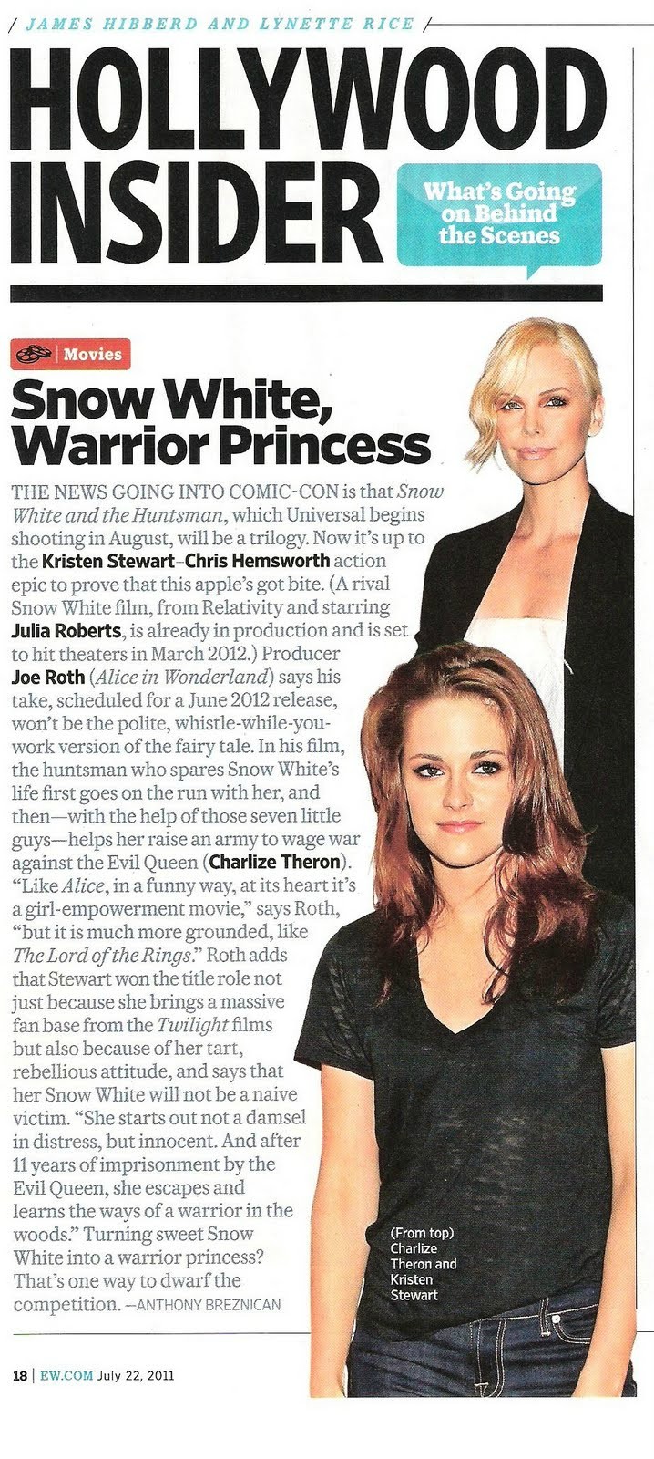 In Snow White and the Huntsman, the 21-year-old actress plays the title character — the only person in the land fairer than the evil queen (Charlize Theron) who is out to destroy her.