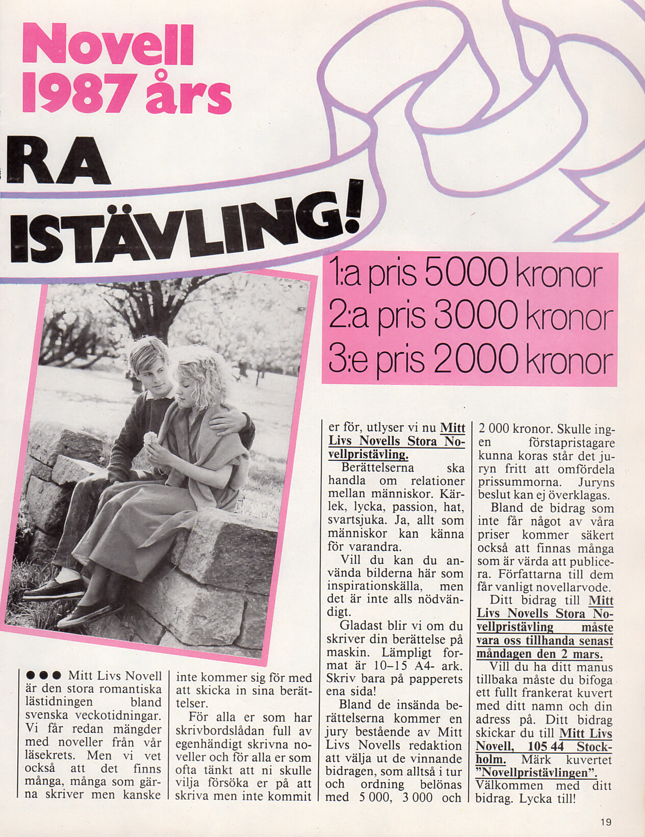 "Mitt Livs Novell utlyser 1987 ars STORA NOVELLPRISTÄVLING!" - Mitt Livs Novell Sweden 13. January 1987 #3