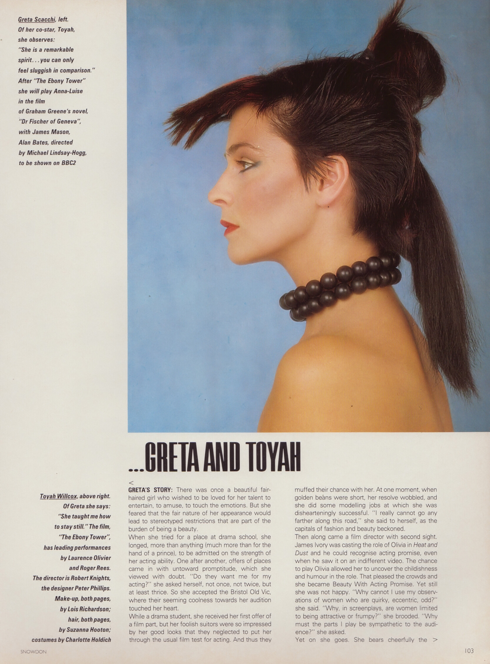 "QUATTRO TRUCCHI PER QUATTRO ATTRICI" - COSMOPOLITAN Italy March 1984 by Perry Ogden - also showing Mandy Perrymen, Lysette Anthony, Amanda Pays