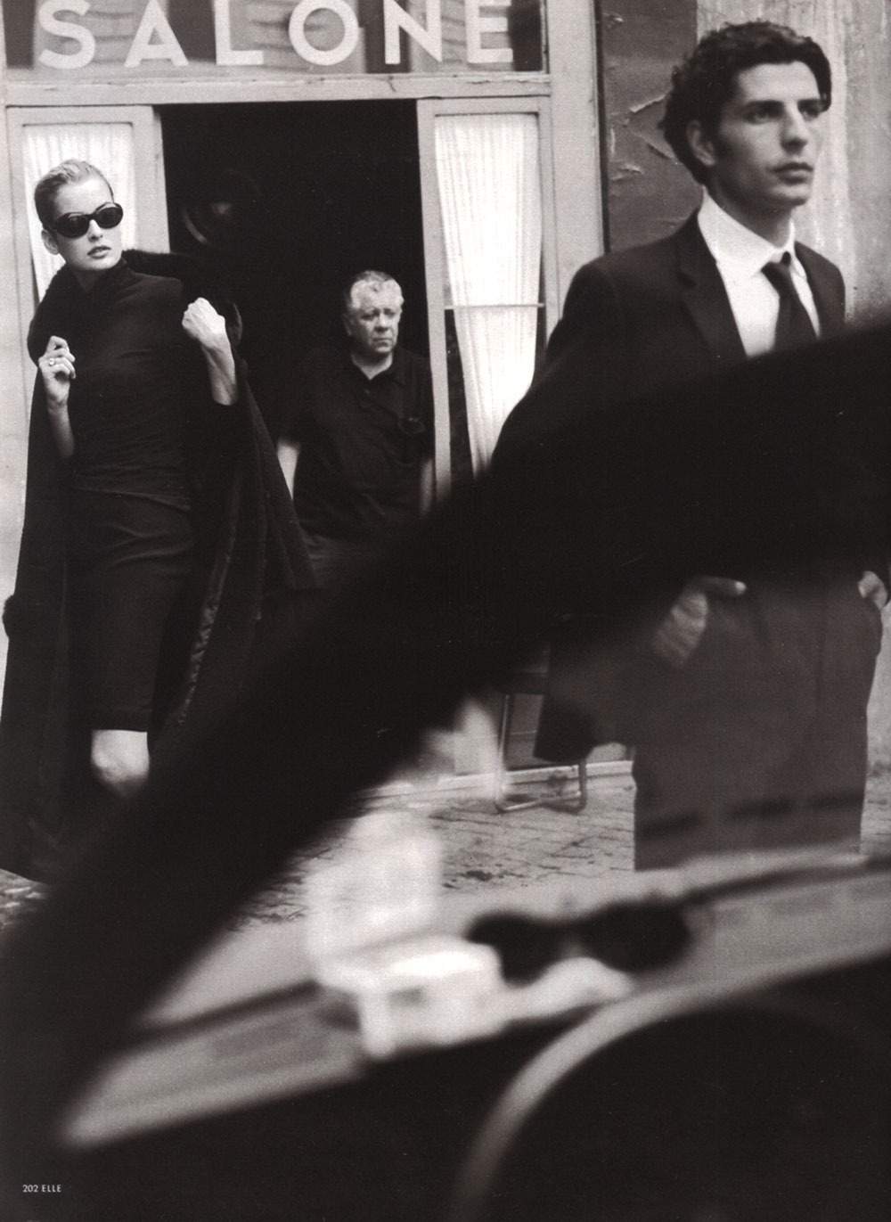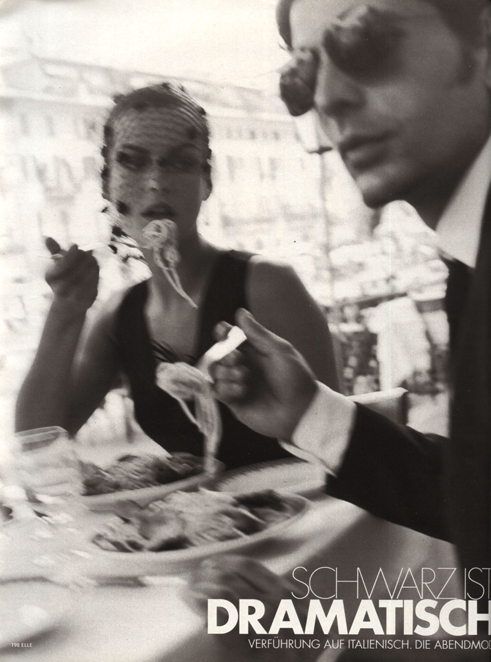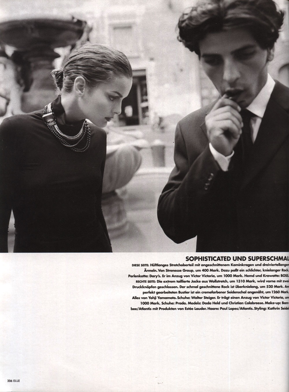 "schwarz ist dramatisch" ELLE GERMANY, DECEMBER 1997 Photographer: Neil Kirk Models: Dada Held and Christian Calabreese