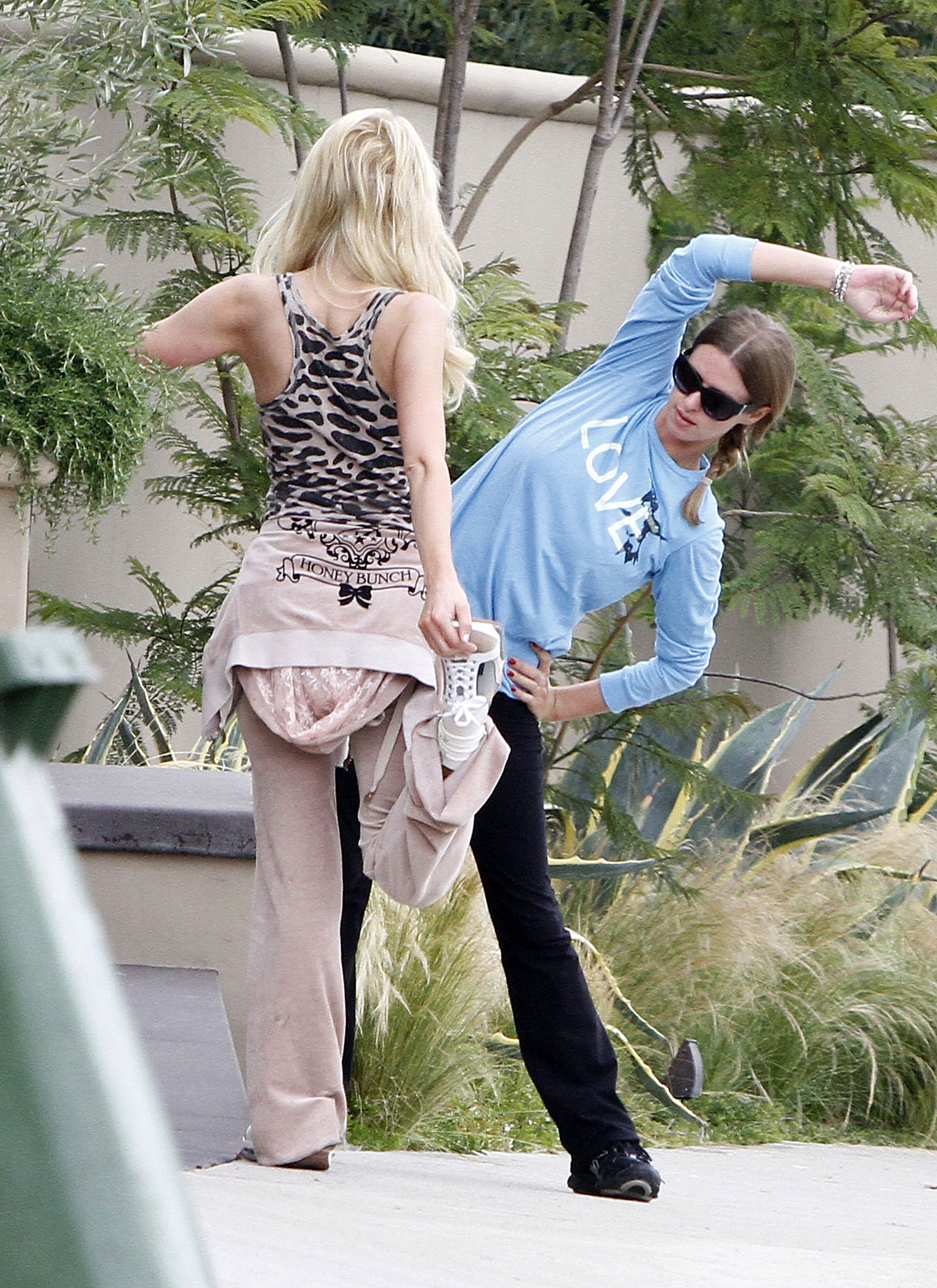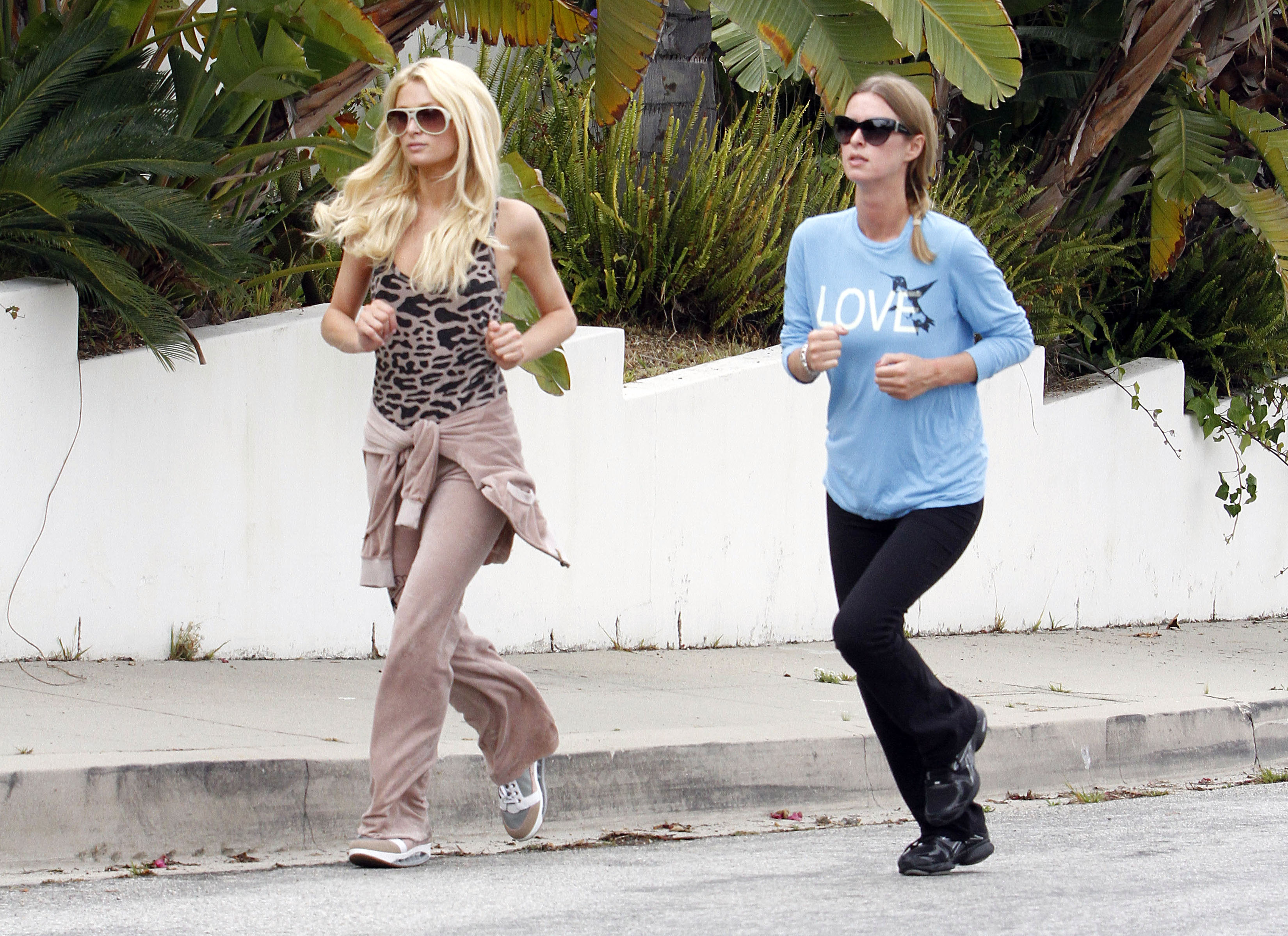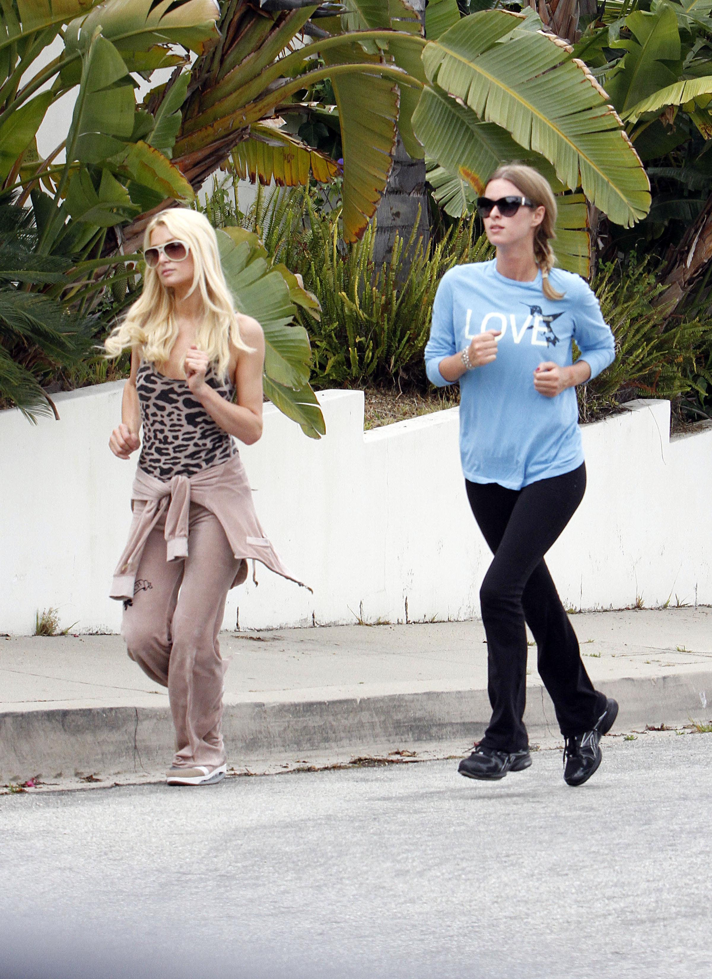 running with her sister Nicky in Beverly Hills June 17 2011