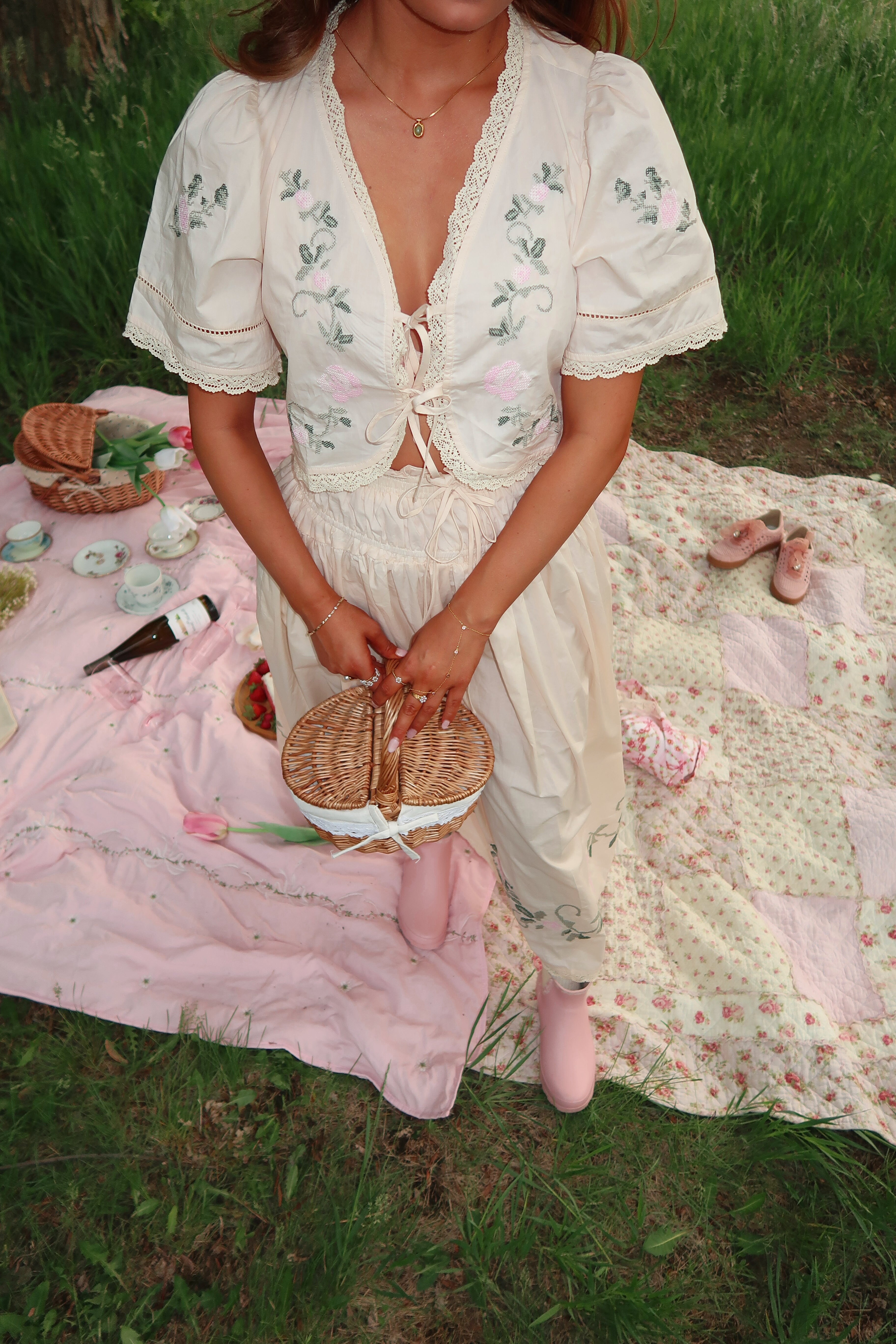 Our pieces are inspired by delicate vintage styles and French toile prints, thoughtfully chosen to elevate your wardrobe with a touch of romantic femininity. From versatile basics to statement pieces, each item is handpicked to bring a sense of timeless elegance and effortless charm to your everyday life.
