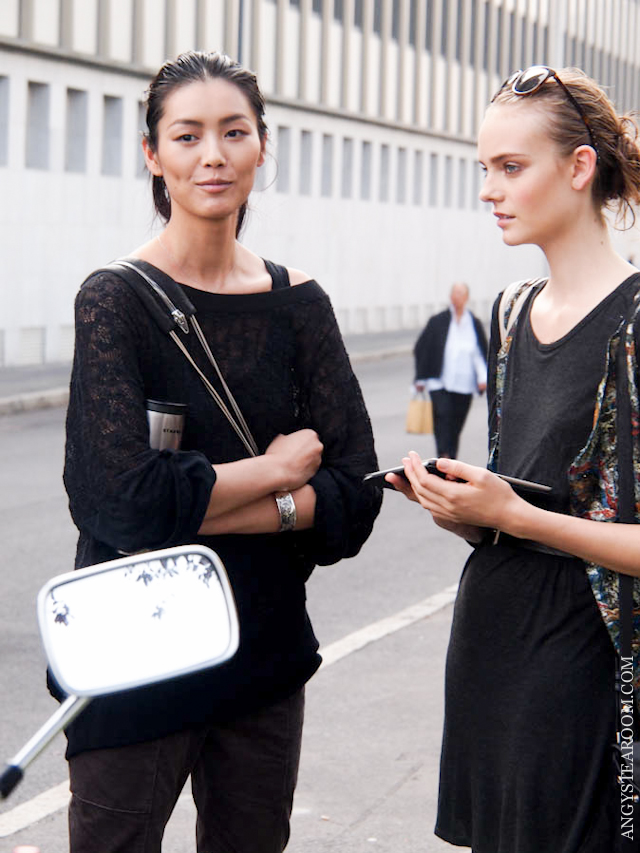 I think Bar is 5'9'', which is just about right. Frida was, last I heard, Sweden's highest paid supermodel.She uses her modeling time as her library, have you noticed that? It's evident from the many backstage photos of her that she seems to be constantly studying something. There are many pictures of her reading a book while they're doing makeup and hair on her.