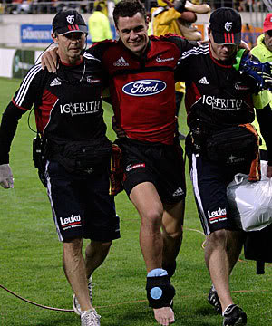 Crusaders may have paid a high price for their B grade victory against the Hurricanes with Dan Carter struck down by injury, after injuring his leg making a tackle. Hope he comes right later, I wanna see Evans come up against Carter & rub his face in it.