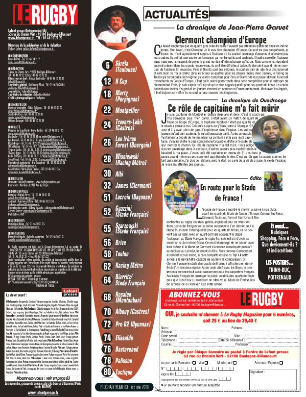 8 Julien Bonnaire, 7 Wenceslas Lauret, 6 Thierry Dusautoir ©, 5 Romain Millo- Chluski, 4 Lionel Nallet, 3 Nicolas Mas, 2 Dimitri Szarzewski, 1 Thomas Domingo