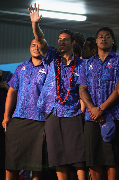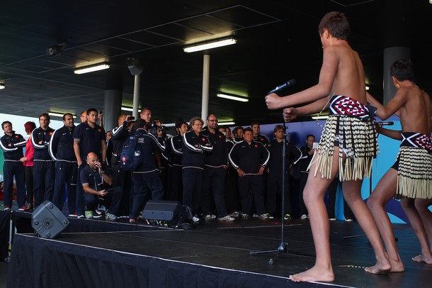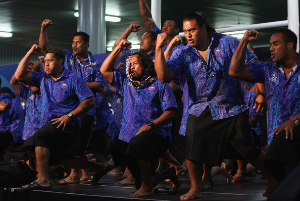 Samoa arrive and perform the Haka at Auckland International Airport