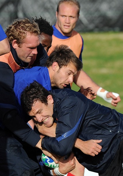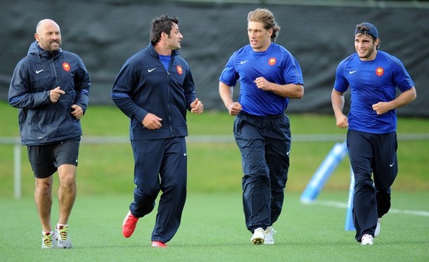 15 Damien Traille, 14 Vincent Clerc, 13 David Marty, 12 Maxime Mermoz, 11 Aurélien Rougerie ©, 10 Francois Trinh-Duc, 9 Morgan Parra, 8 Louis Picamoles, 7 Julien Bonnaire, 6 Fulgence Ouedraogo, 5 Romain, Millo-Chluski, 4 Pascale Papé, 3 Luc Ducalcon, 2 William Servat, 1 Jean-Baptiste Poux Poux.