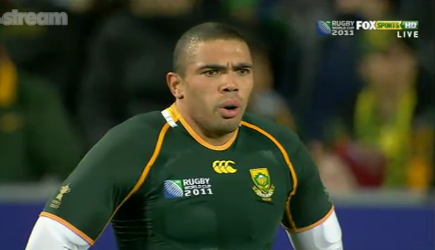 Replacements: 16 Chiliboy Ralepelle, 17 Tendai Mtawarira, 18 François Louw, 19 Heinrich Brüssow, 20 Fourie du Preez, 21 Ruan Pienaar, 22 Juan de Jongh.