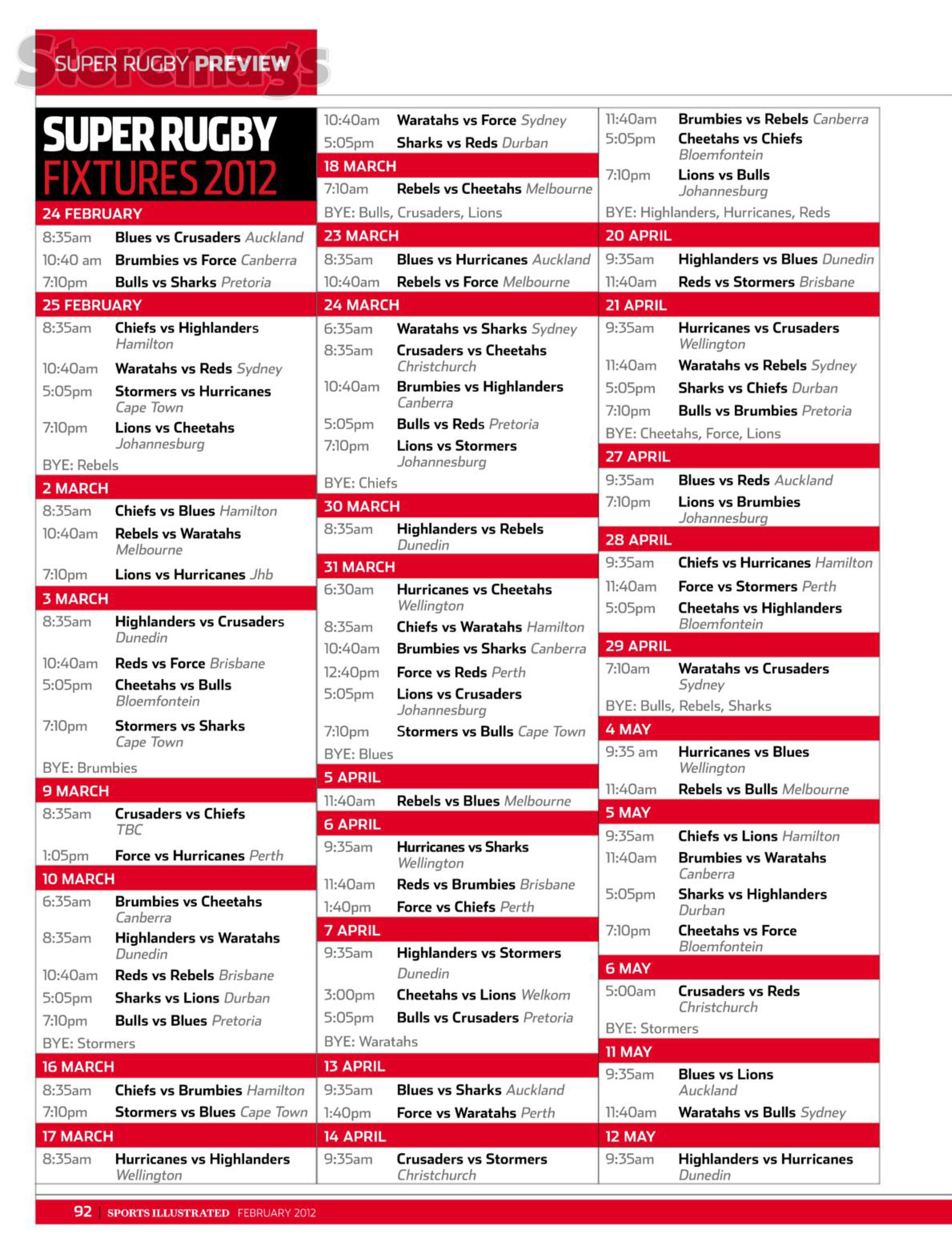 RBS 6 NATIONS 2012 Fixtures