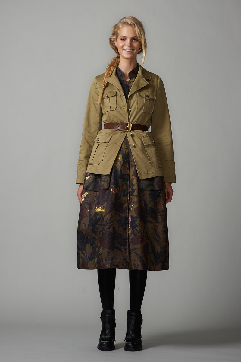 Haha, yeah, that's a WW2 German Army style tunic she's wearing. That outfit could possibly been inspired by the many women soldiers of the Polish resistance that fought in Warsaw Uprising 1944. The Resistance captured many German Army uniforms from local stocks and wore them during the battle.