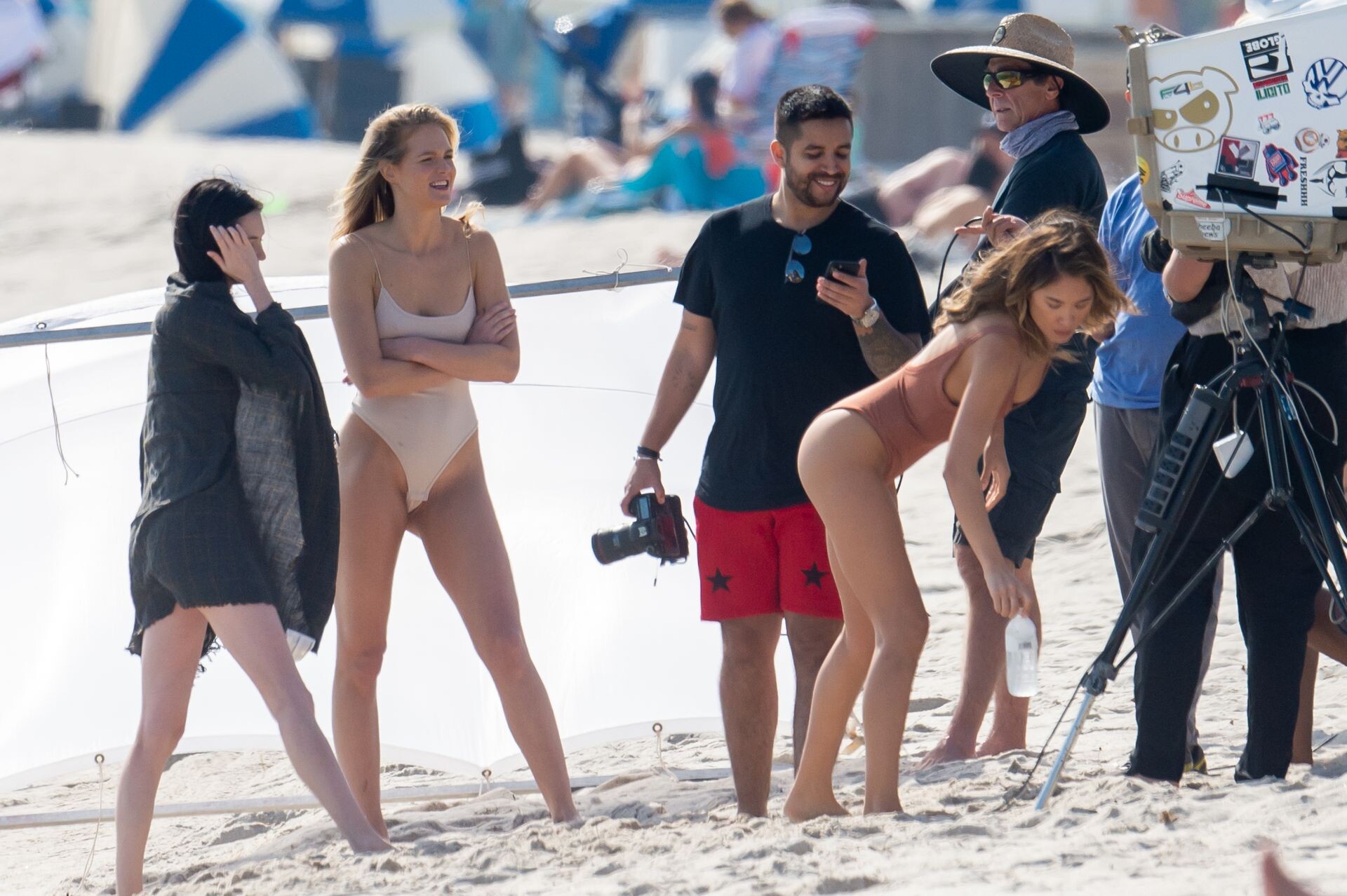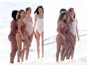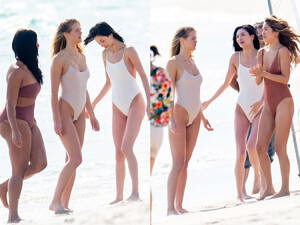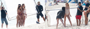 They were not there alone, that video is from a Victoria's Secret swim photoshoot with a bunch of people and IIRC, his airline used to be the flying partner to VS so I guess that is why he was there doing videos.