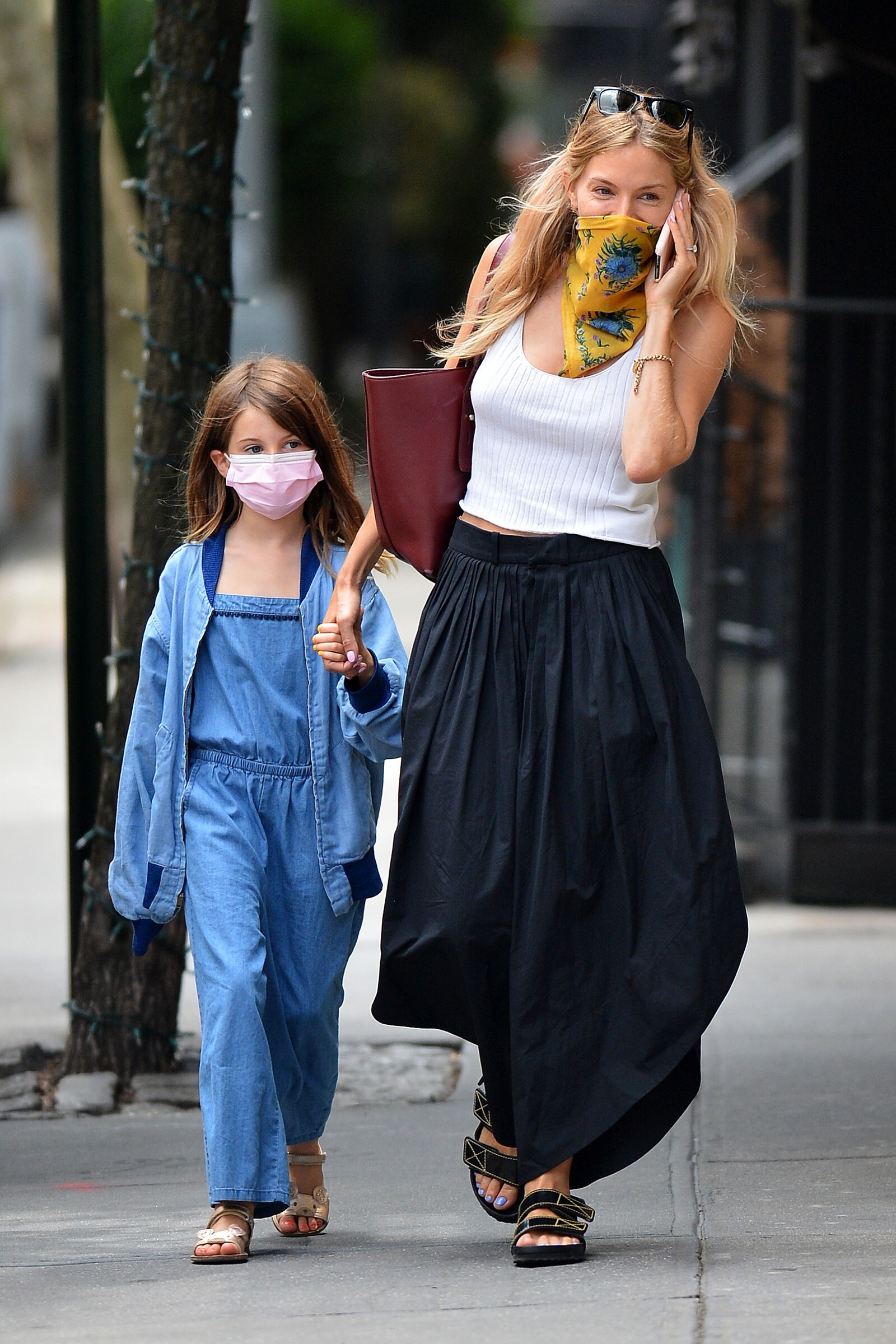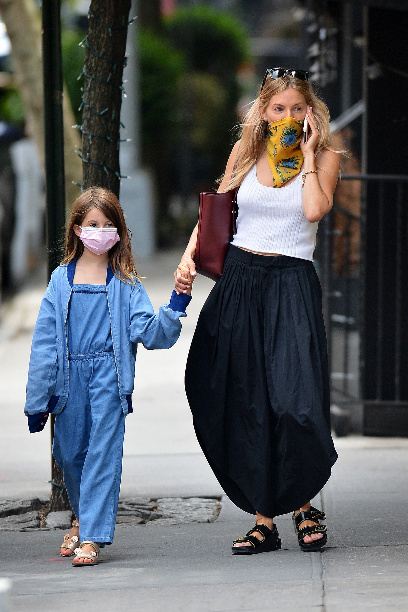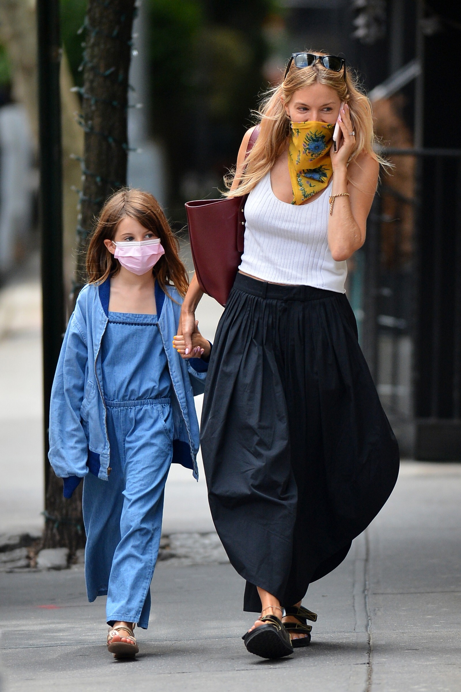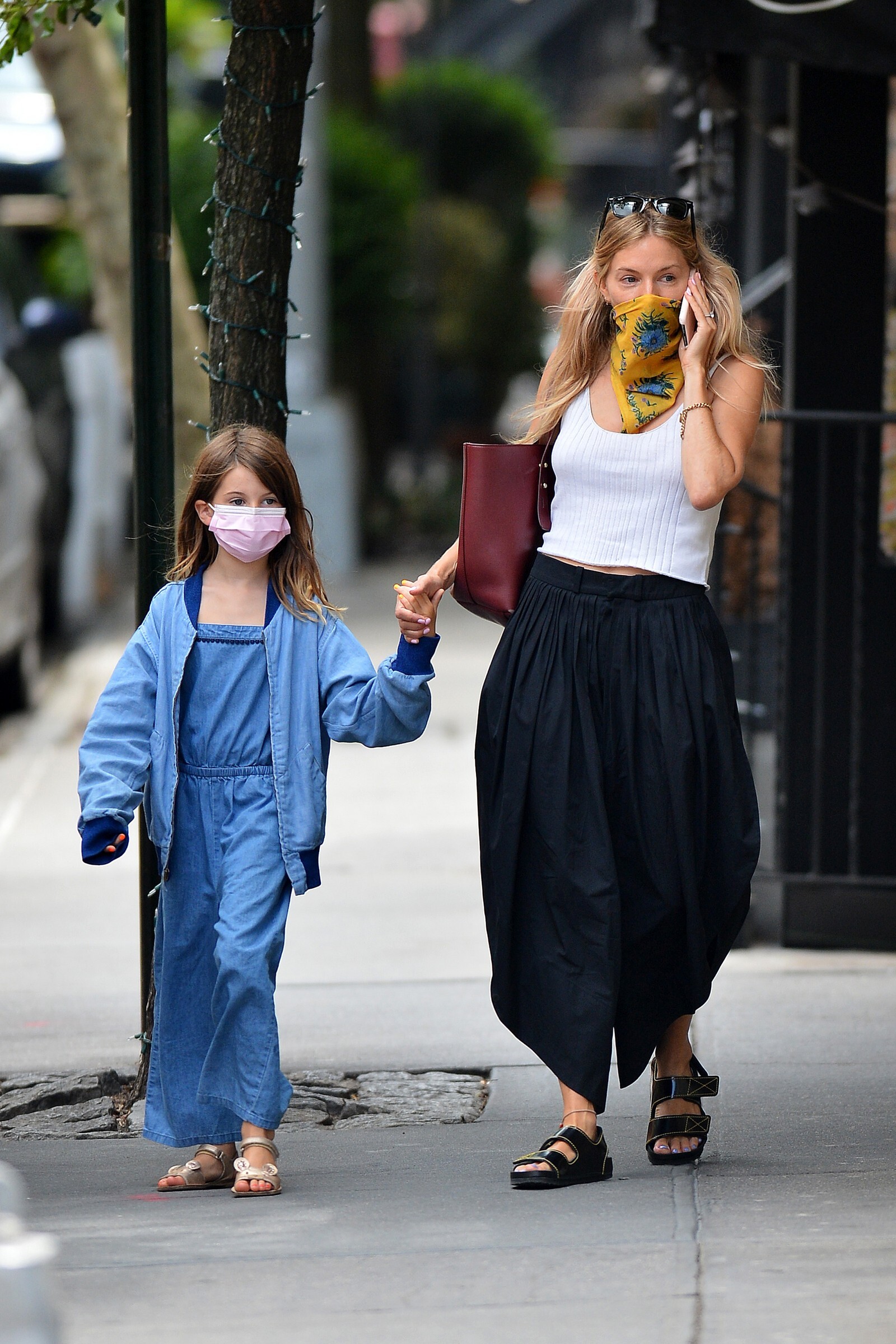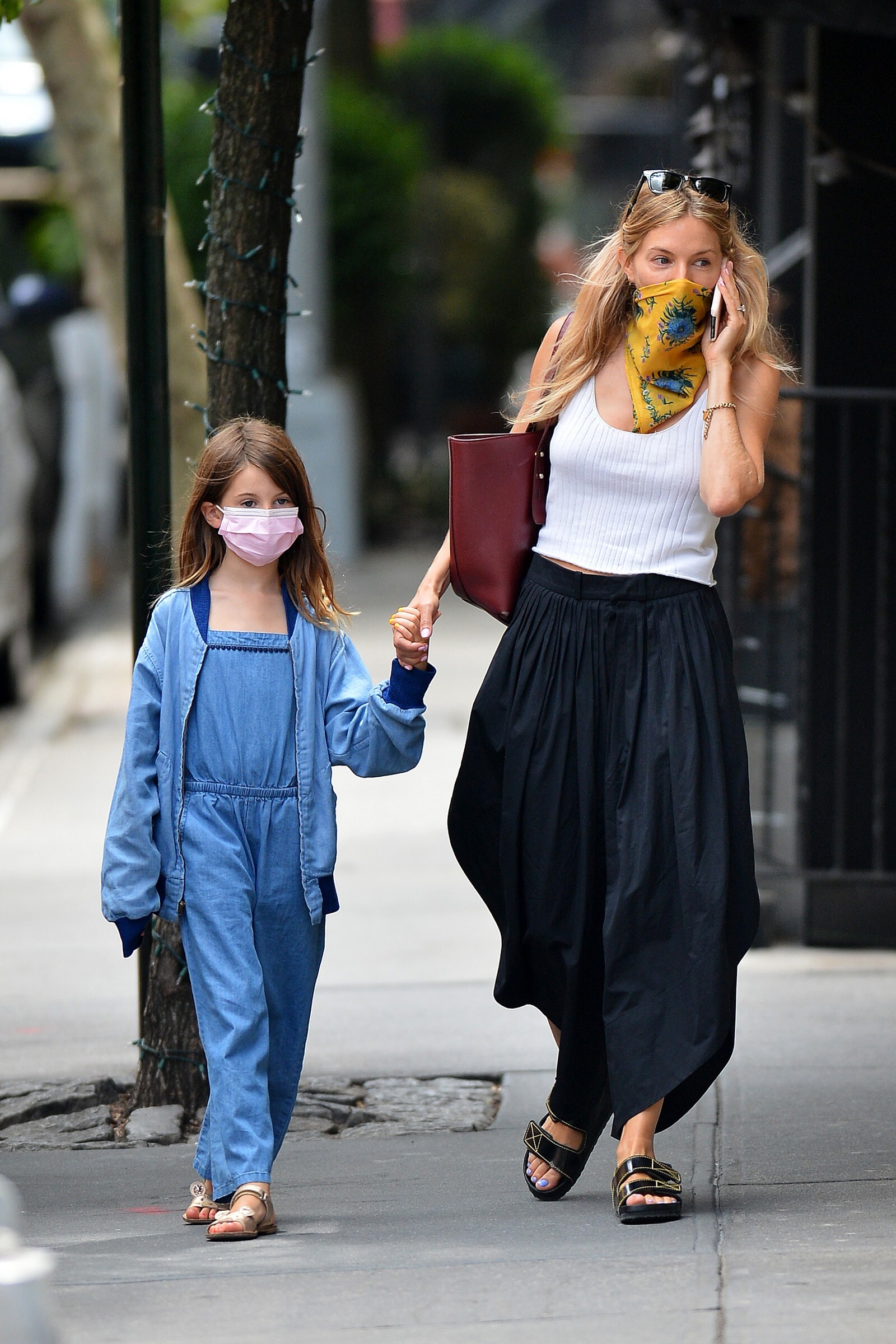 enjoyed a stroll out in the New York sunshine on Monday with her daughter Marlowe