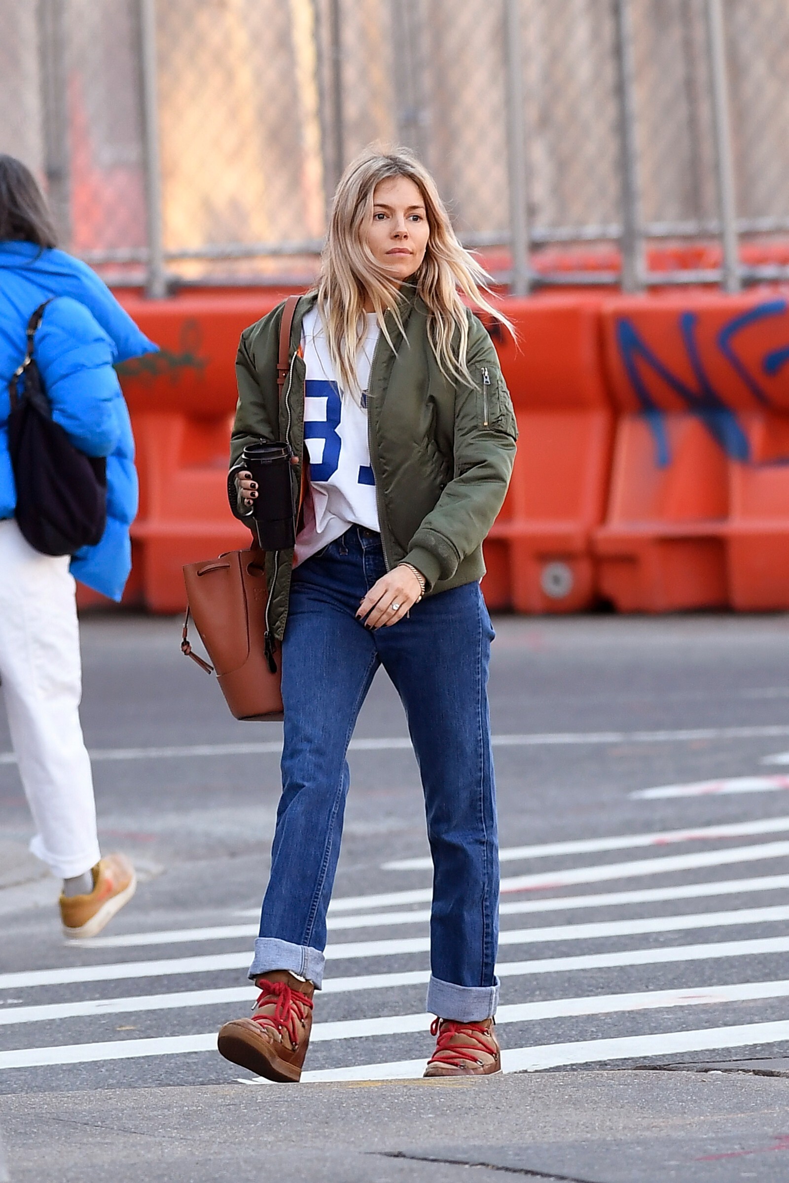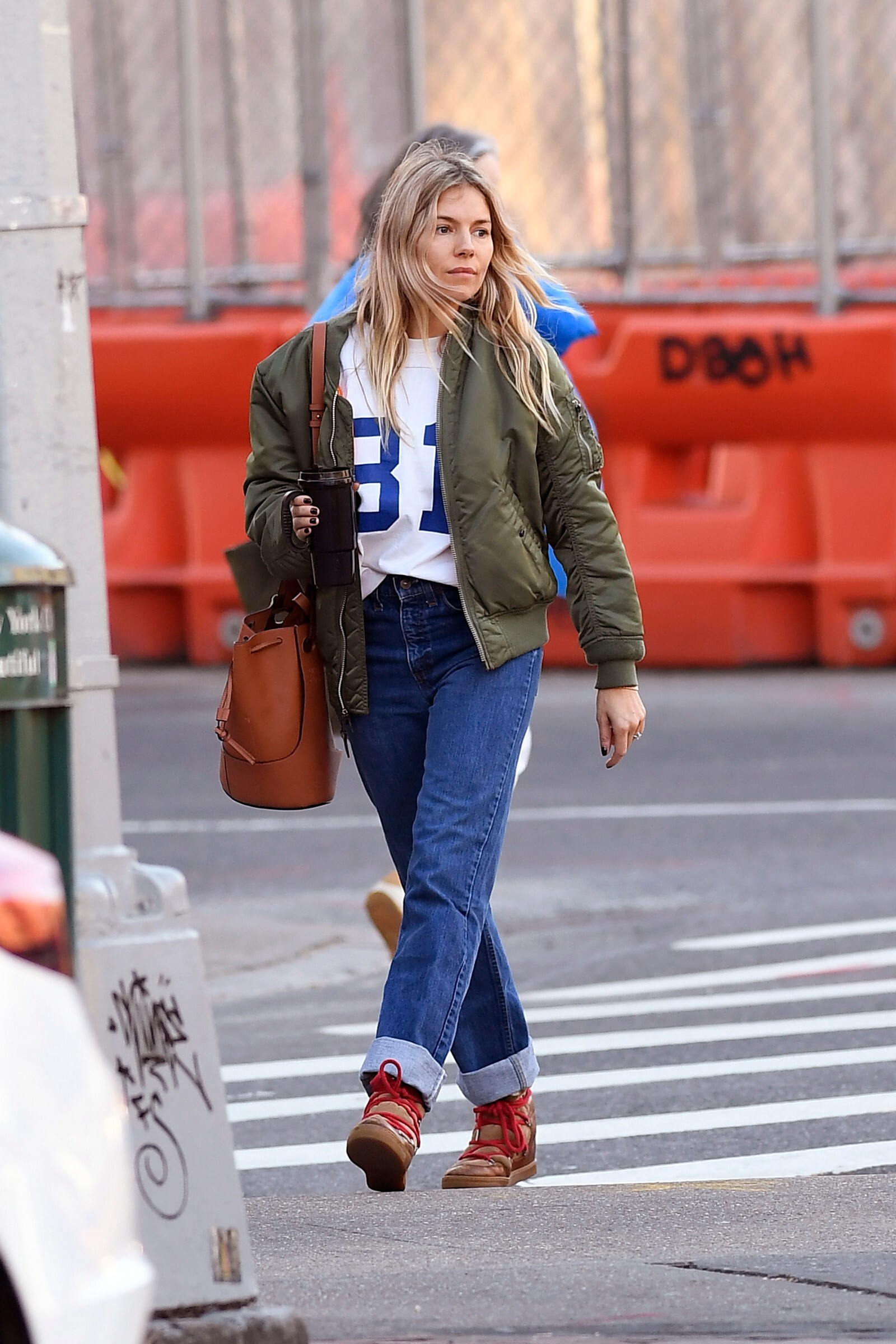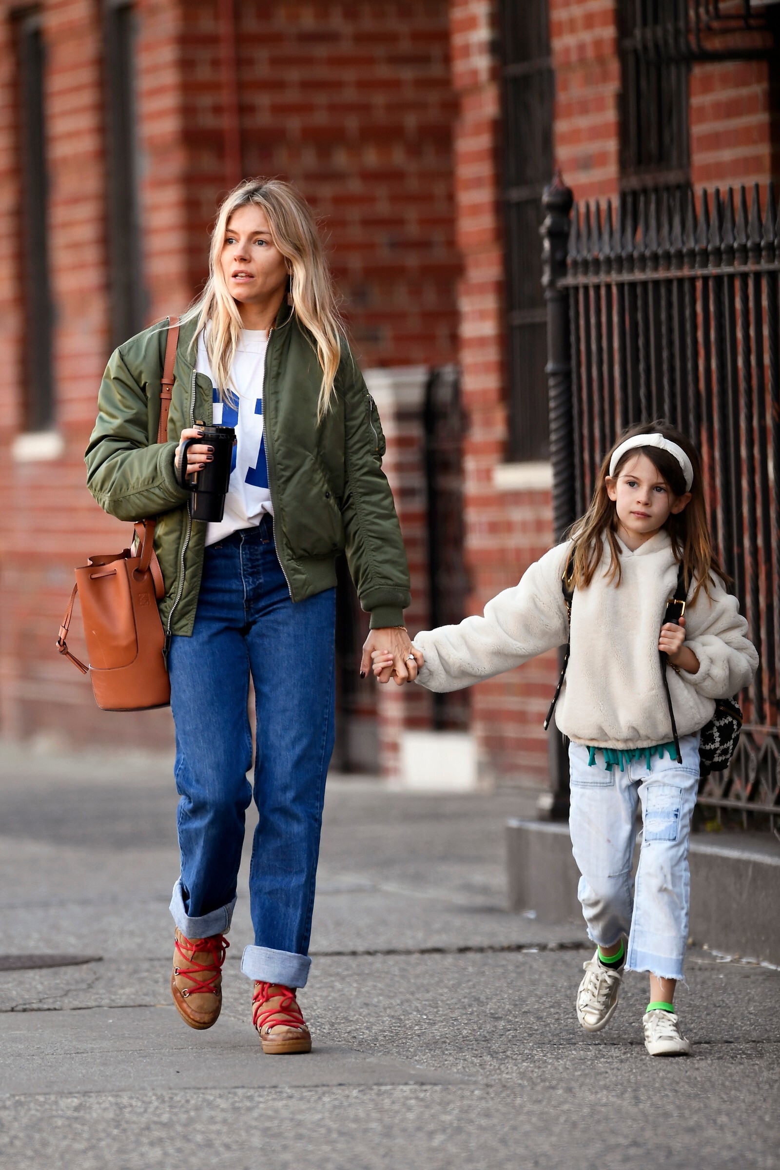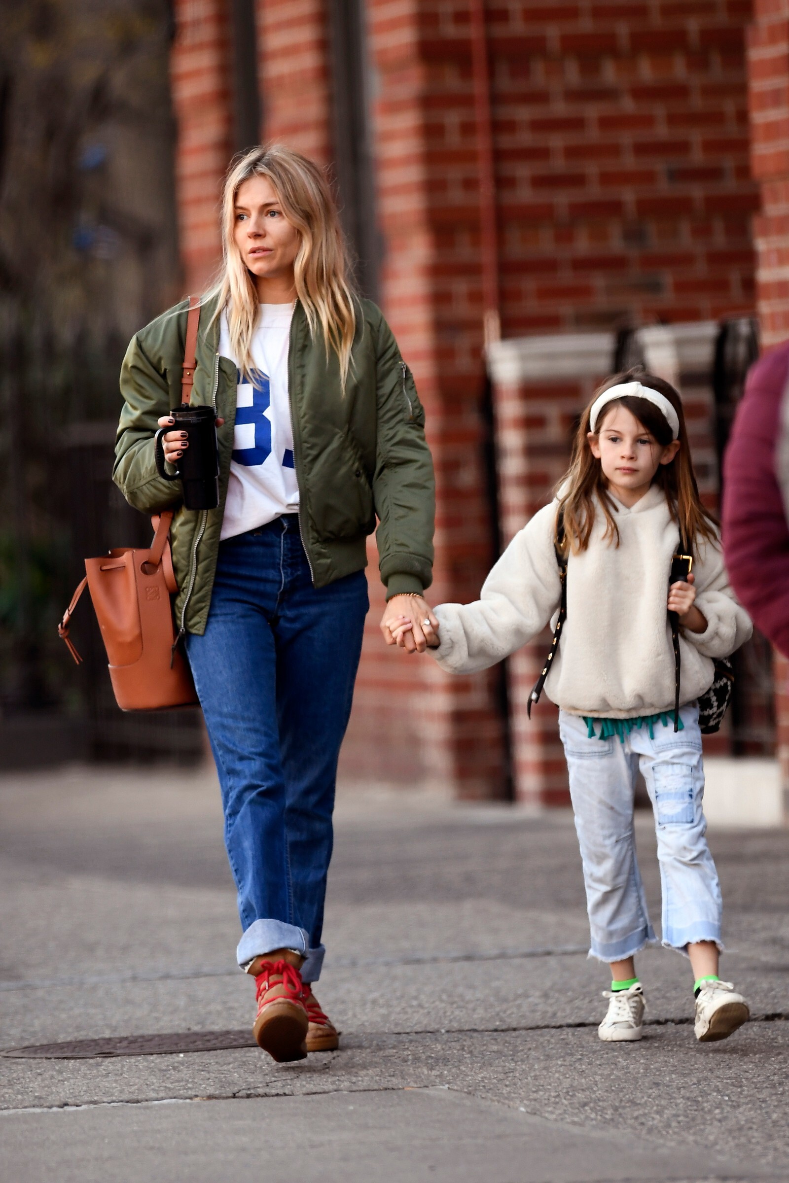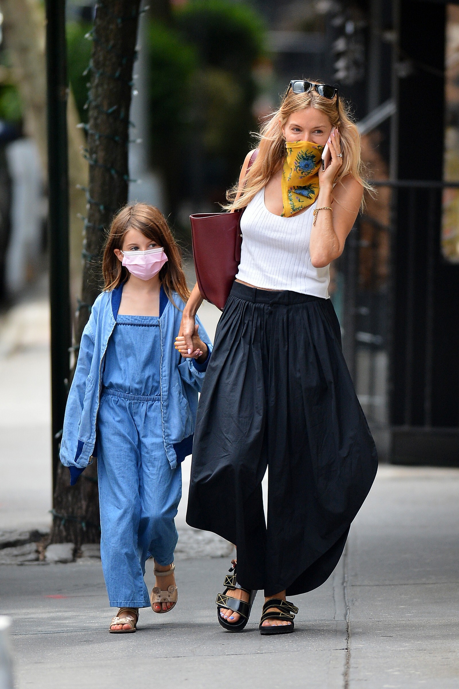 enjoyed a stroll out in the New York sunshine on Monday with her daughter Marlowe