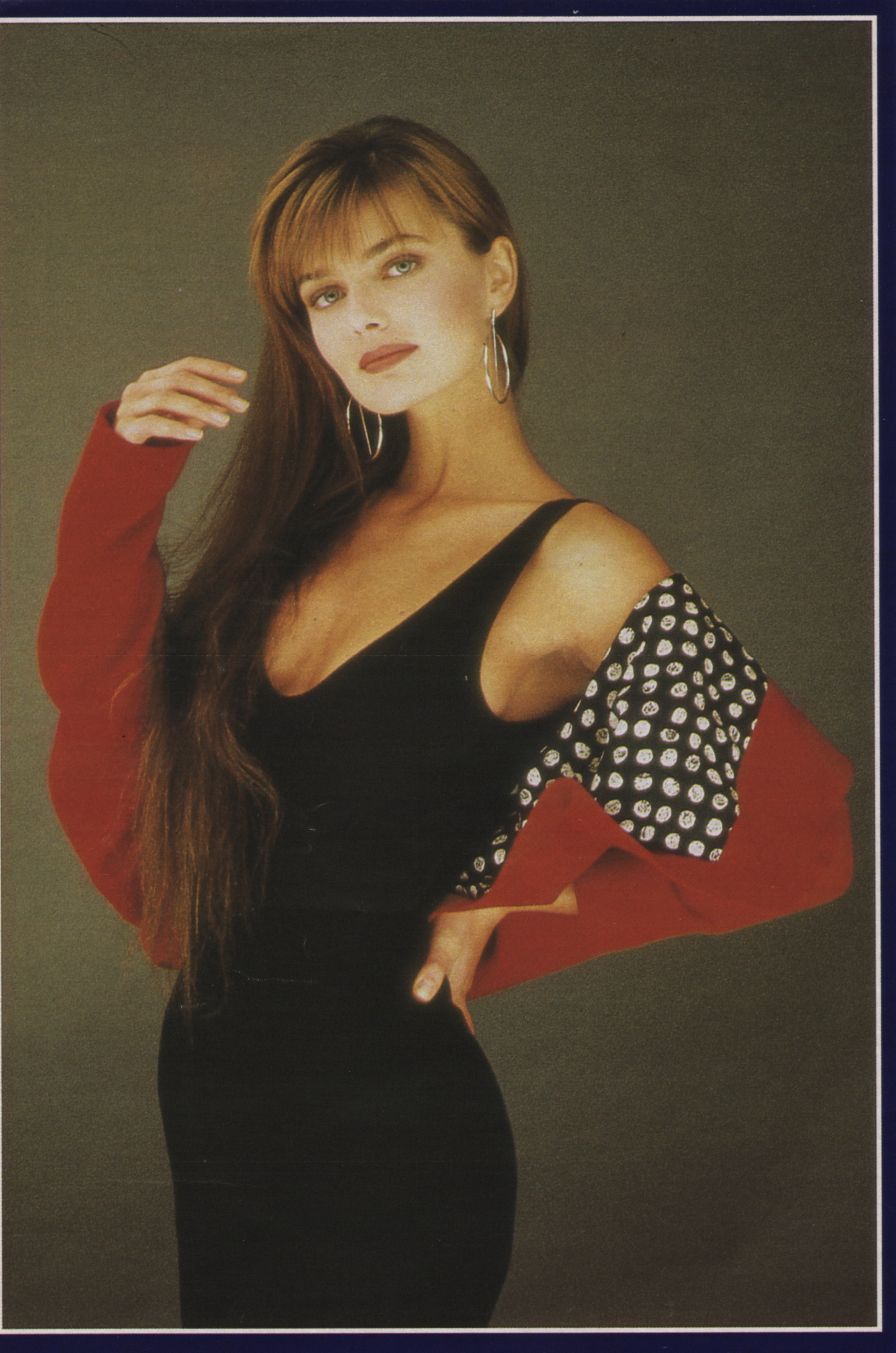 Excellent detective work, Red! Definitely the same photo shoot. She toured sometime in the latter half of '91 promoting the makeup video, I've got an autographed copy. Now that I think about it, her Cosmo cover in the green dress was out, that was the November issue so sometime around there. I wish I had that issue autographed rather than the video, but I didn't know what to expect, I didn't even take a camera. I do remember though that she looked exactly like her pictures, and that we had to write our names on an index card in big letters for her to read because she was near-sighted.
