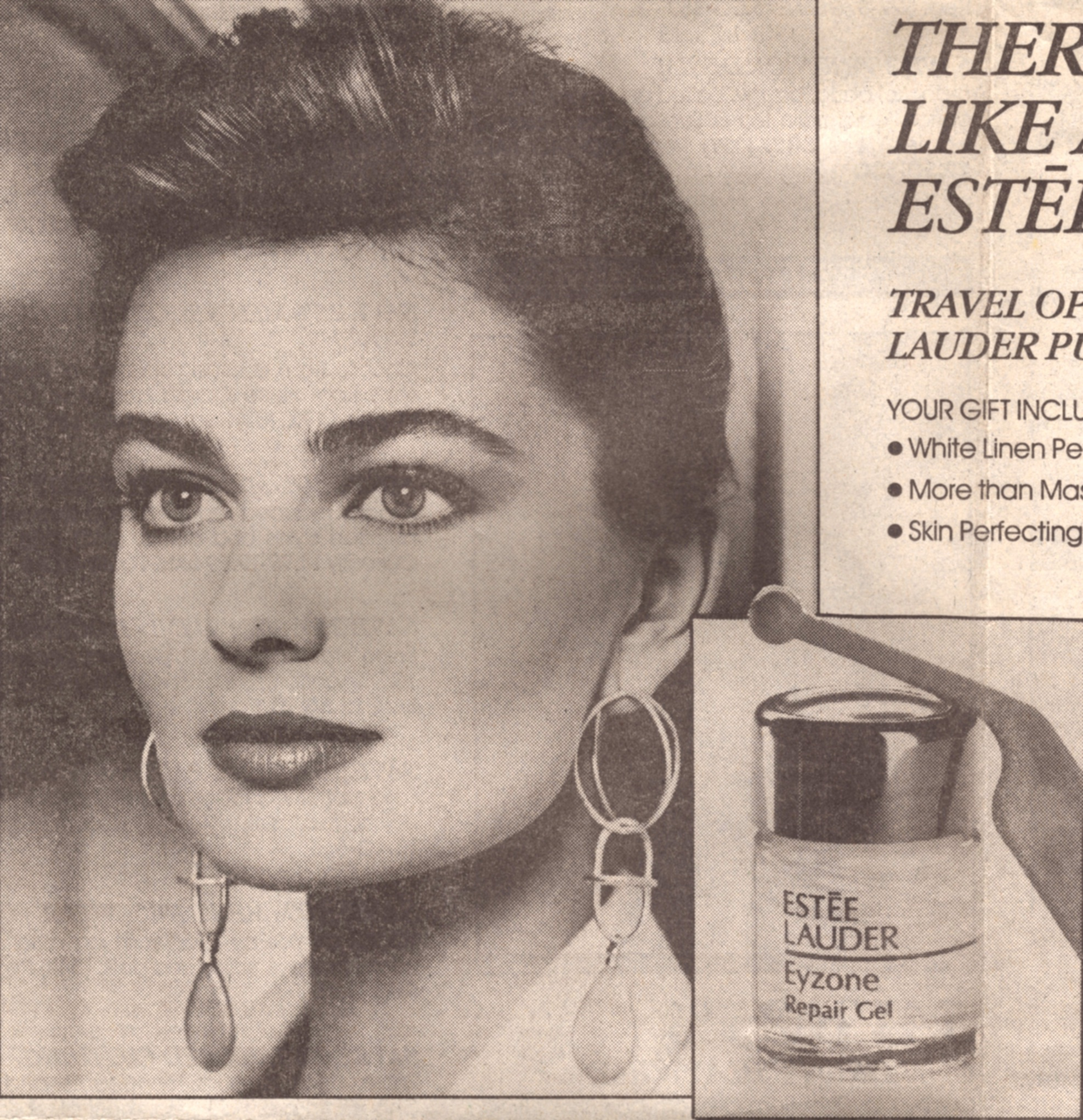 a two-page newspaper or large-format magazine ad for Estee Lauder Gift With Purchase (GWP)